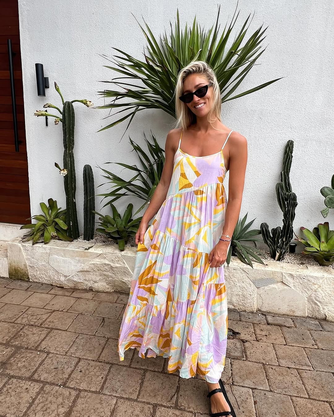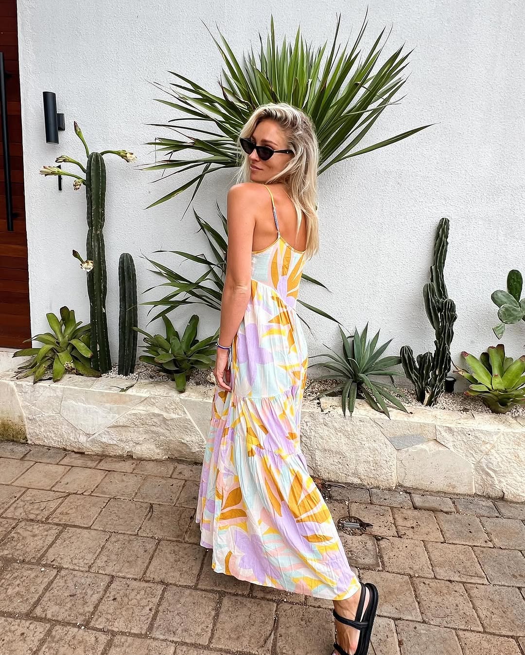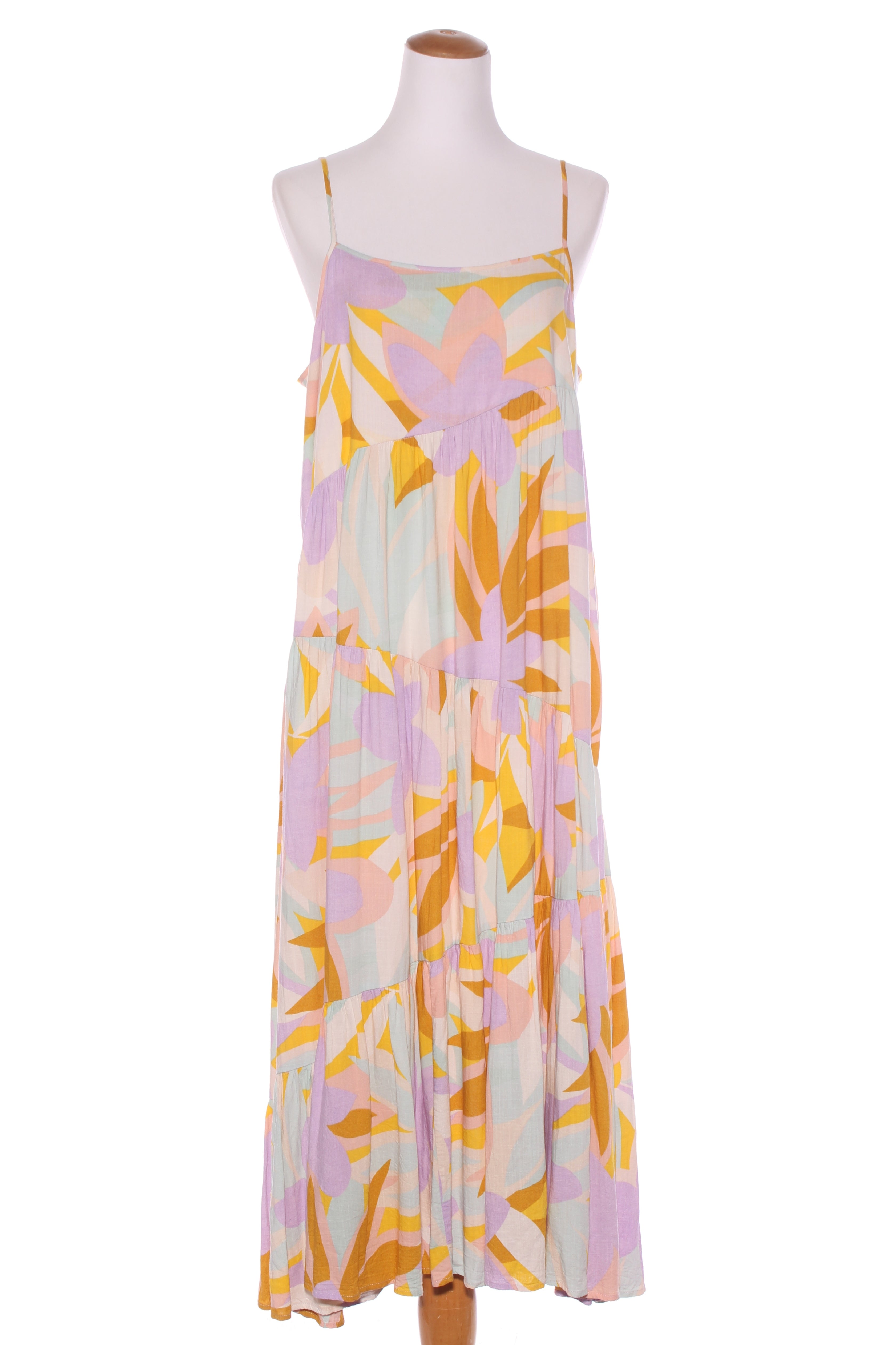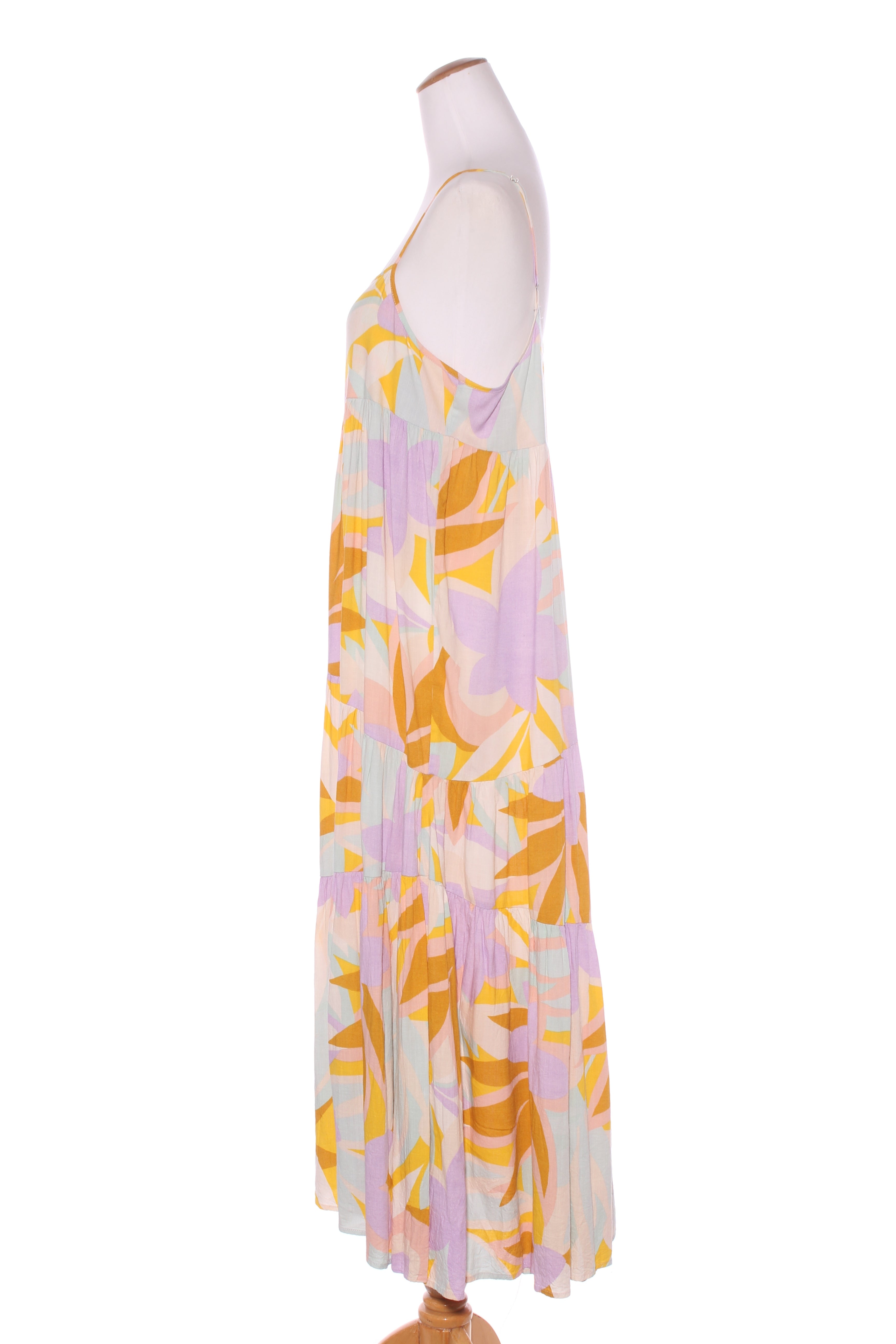 SIZE ON TAG: 1FITS LIKE: 12COLOUR: MultiFABRIC: Viscose, rayon, linenCONDITION: Excellent prelovedMEASUREMENTS:BUST: 55cms WAIST: 56cms LENGTH: 130cmsNOTES: Pull over style. Adjustable shoulder straps.
