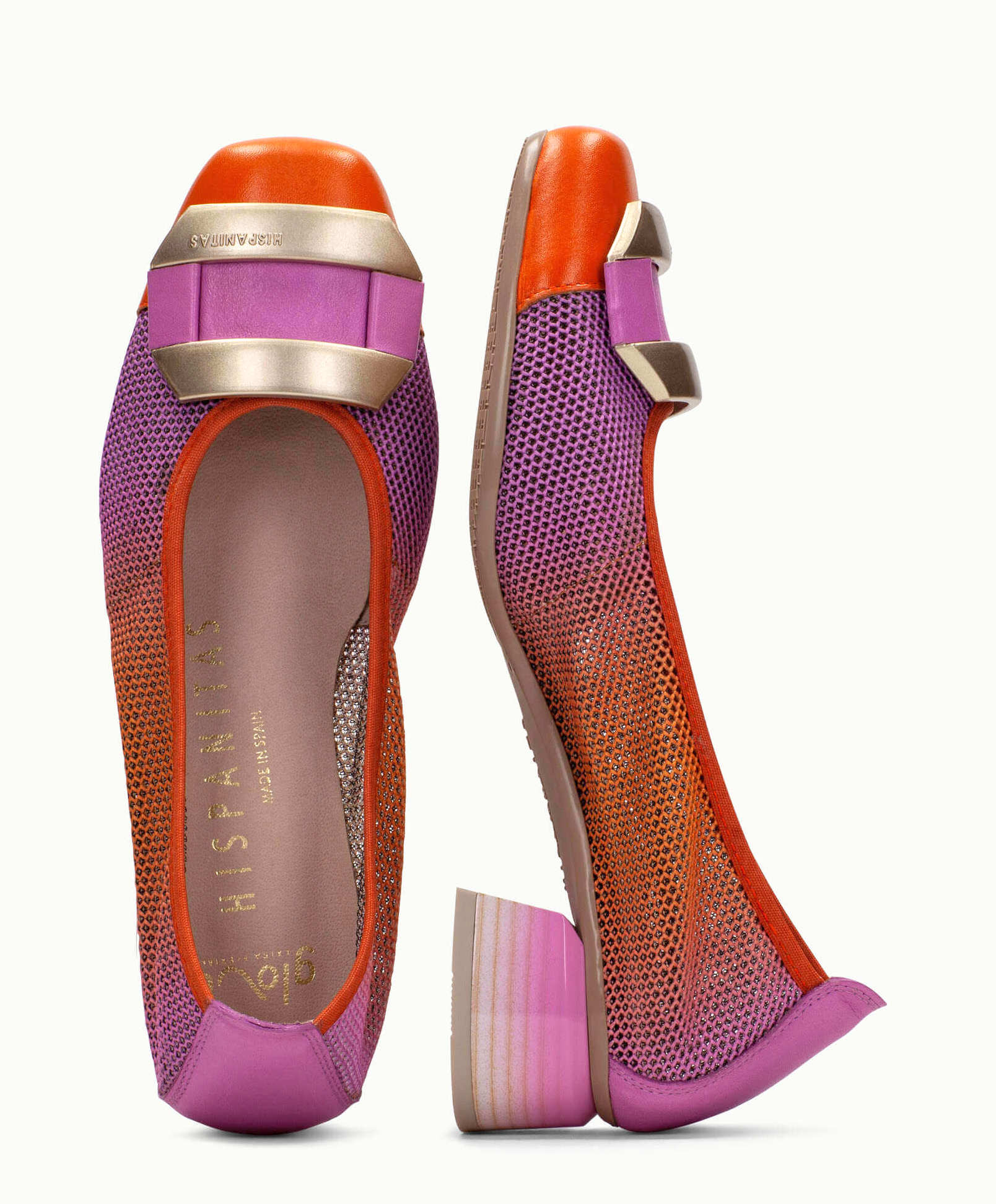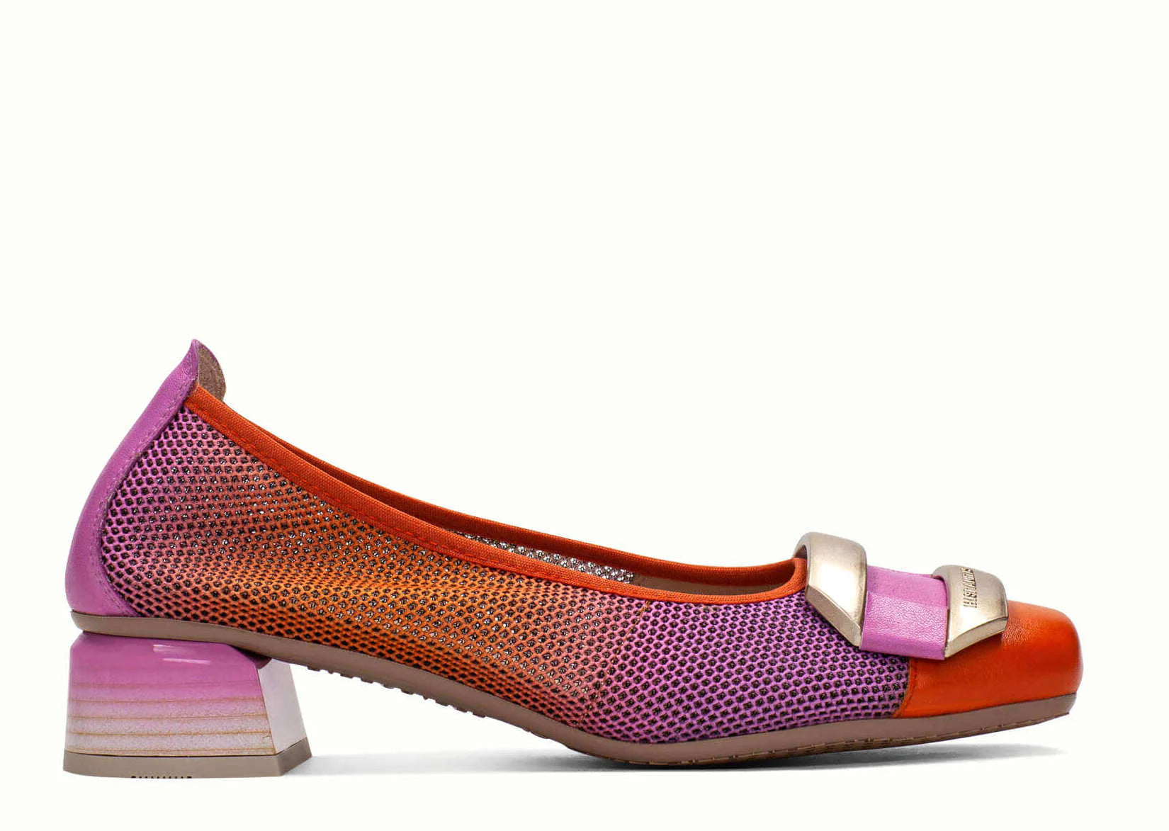 SIZE ON SHOE: 40FITS LIKE: 9COLOUR: Orange, pink, goldFABRIC: Leather upper, leather lining, synthetic soleCONDITION: Excellent preloved - hardly wornMEASUREMENTS:INNER SOLE: 26.5cms WIDTH: 8.5cms HEEL: 4cms...