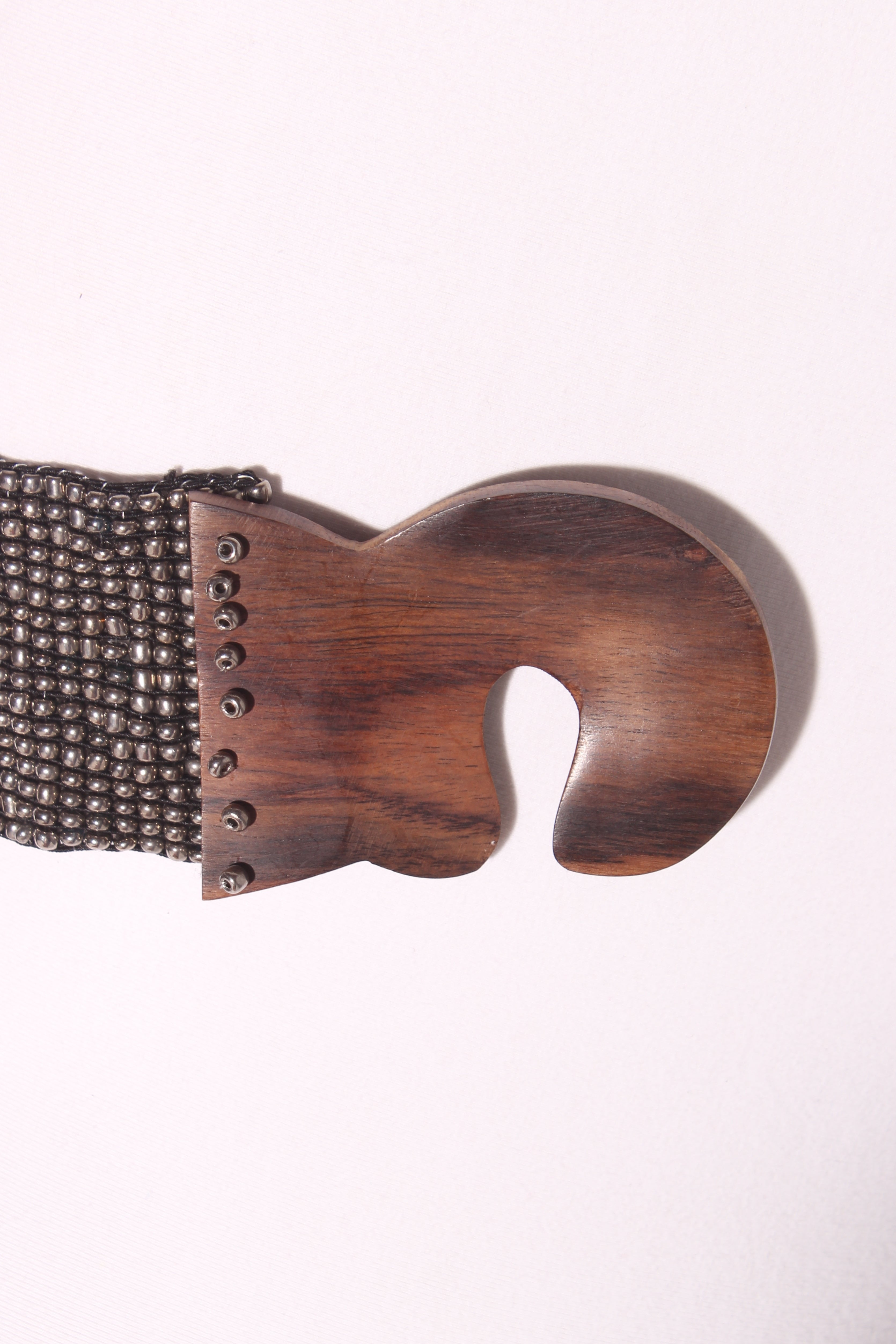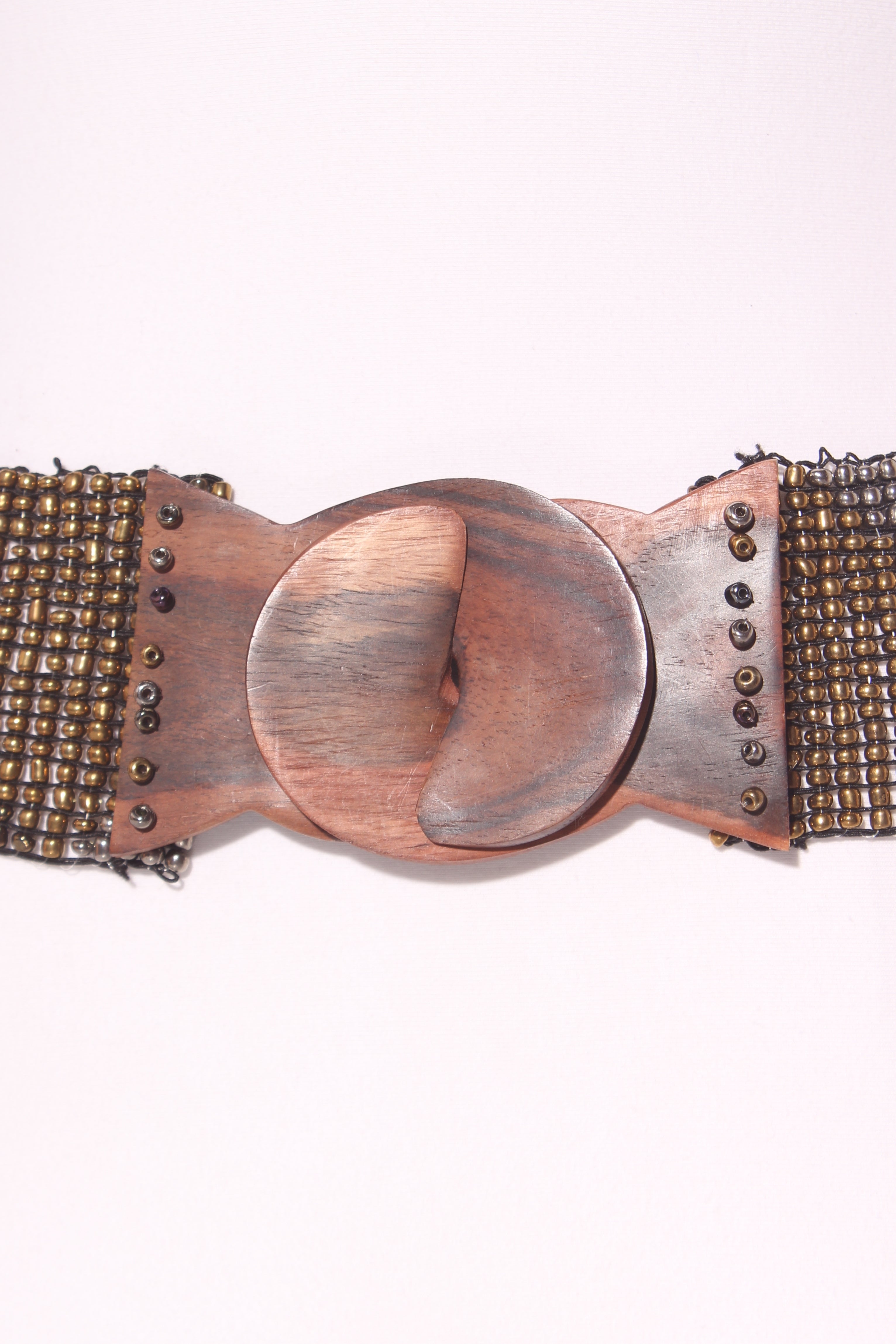 FITS LIKE: 10-14 on the waistCOLOUR: Natural wood, silver, gold, petrol blue/prupleFABRIC: Wood, bead, elastane, nylonCONDITION: Excellent prelovedMEASUREMENTS:WIDTH: 6.5cms LENGTH: 80cmsNOTES: Wooden interlock buckle. Stretchy elasticated fit.