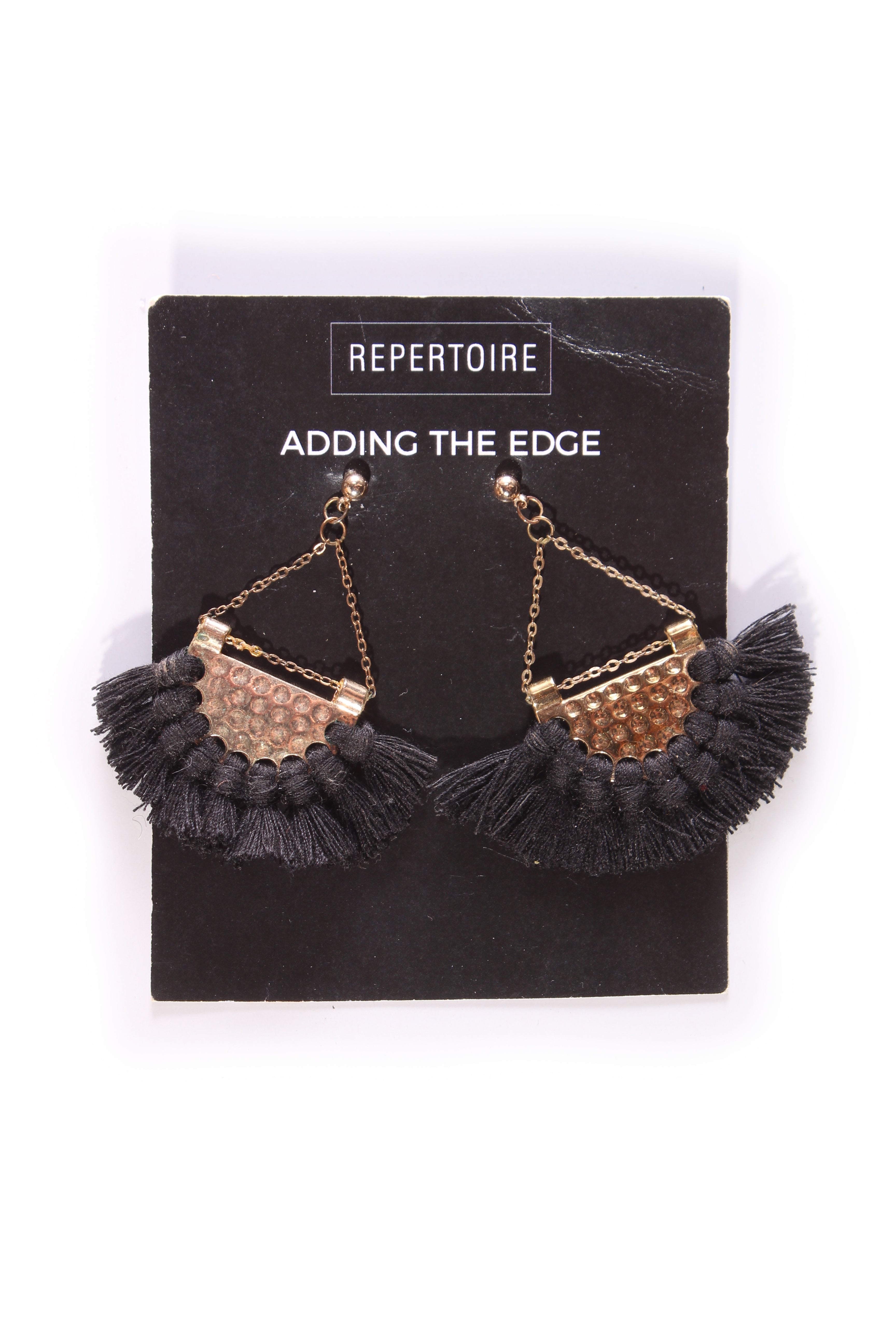 COLOUR: BlackFABRIC: Metal, natural twineCONDITION: Excellent prelovedMEASUREMENTS:WIDTH: 3-4cms LENGTH: 9cms NOTES: Comes in carry bag.