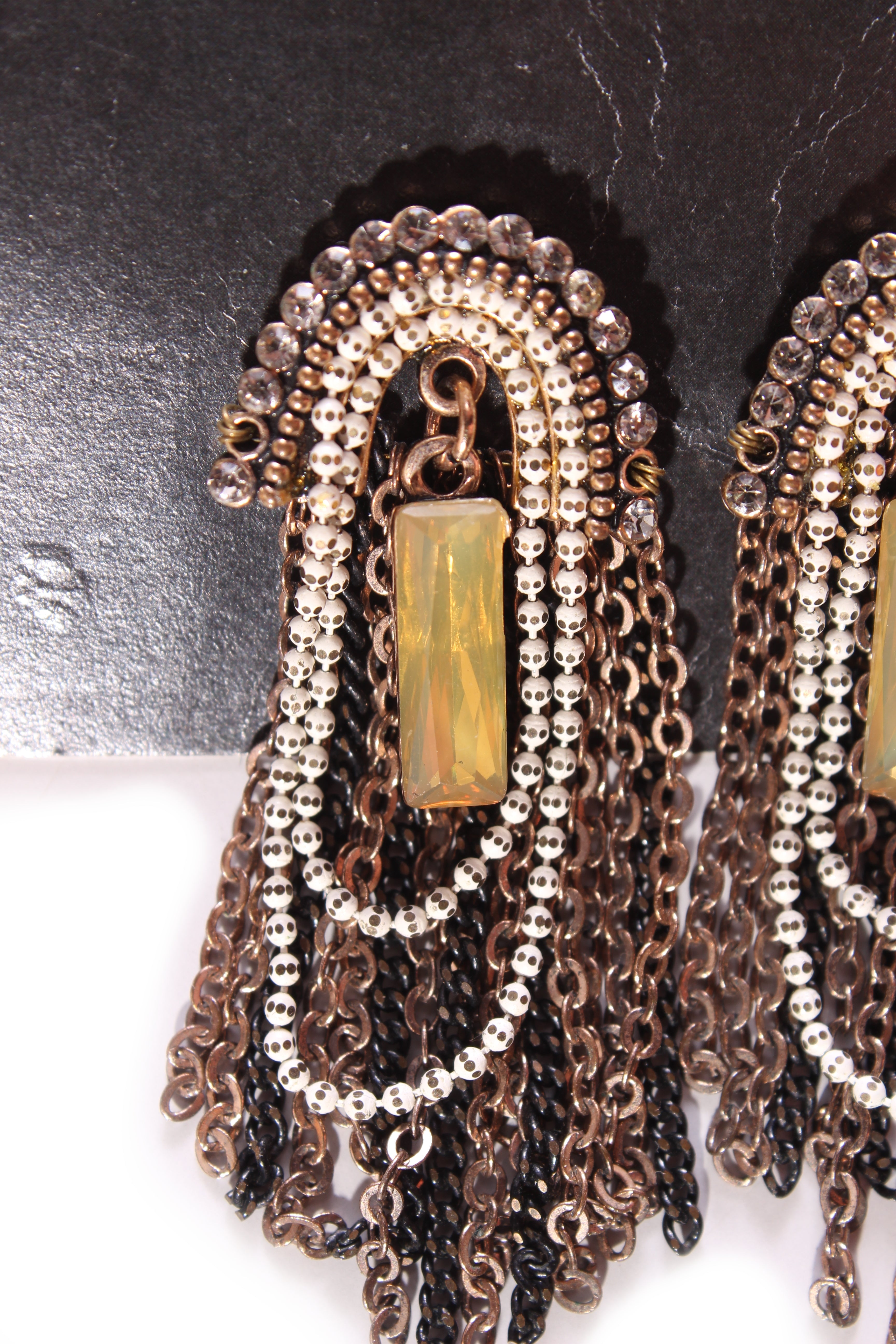 COLOUR: Copper, black, amber, whiteFABRIC: Metal, beadingCONDITION: Excellent prelovedMEASUREMENTS:WIDTH: 2cms LENGTH: 6cms NOTES: Comes in carry bag.