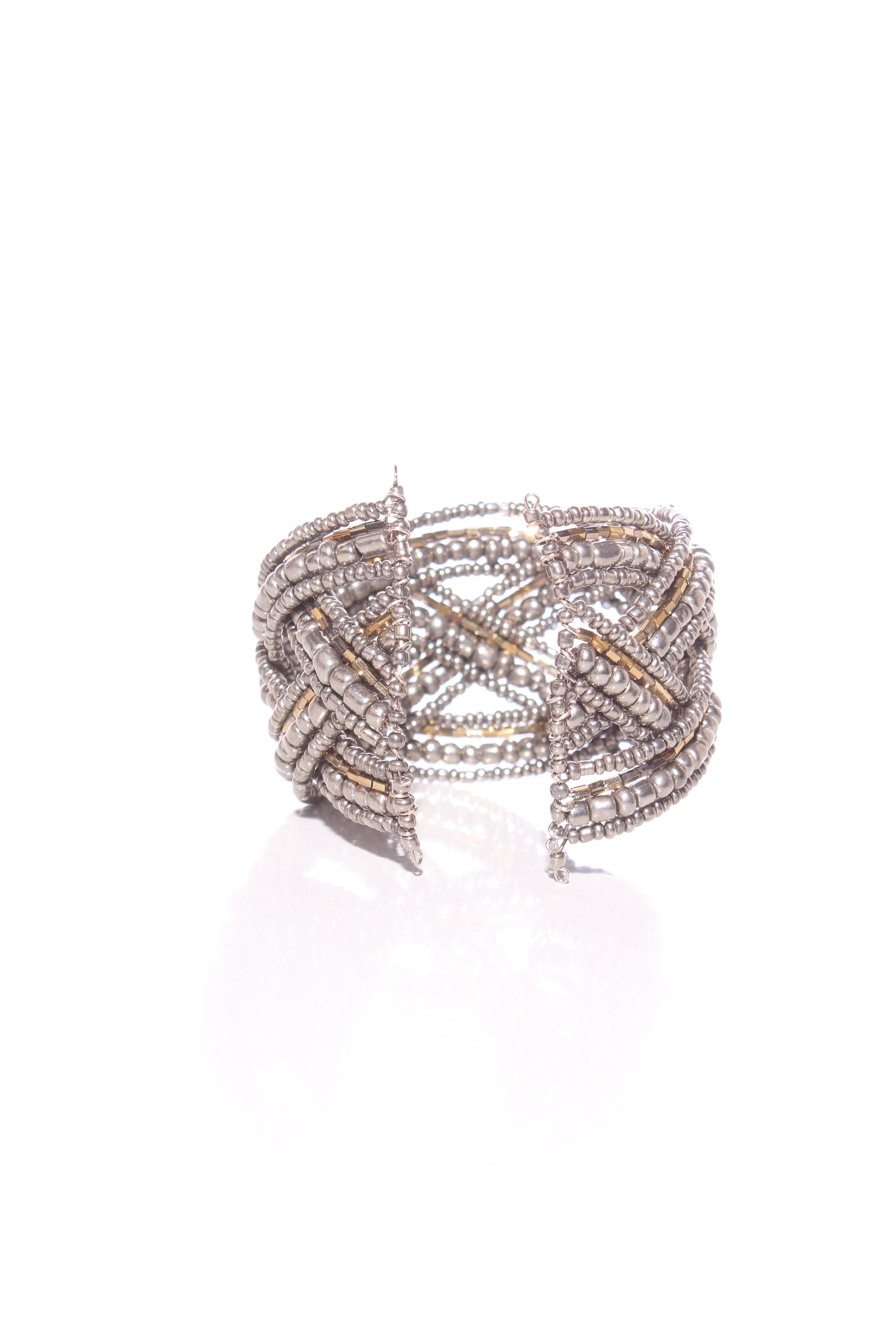 COLOUR: Off white/naturalFABRIC: MetalCONDITION: Excellent prelovedMEASUREMENTS:THICKNESS: 3cms NOTES: Purchased from Sills & Co - Spring loaded flexible opening.