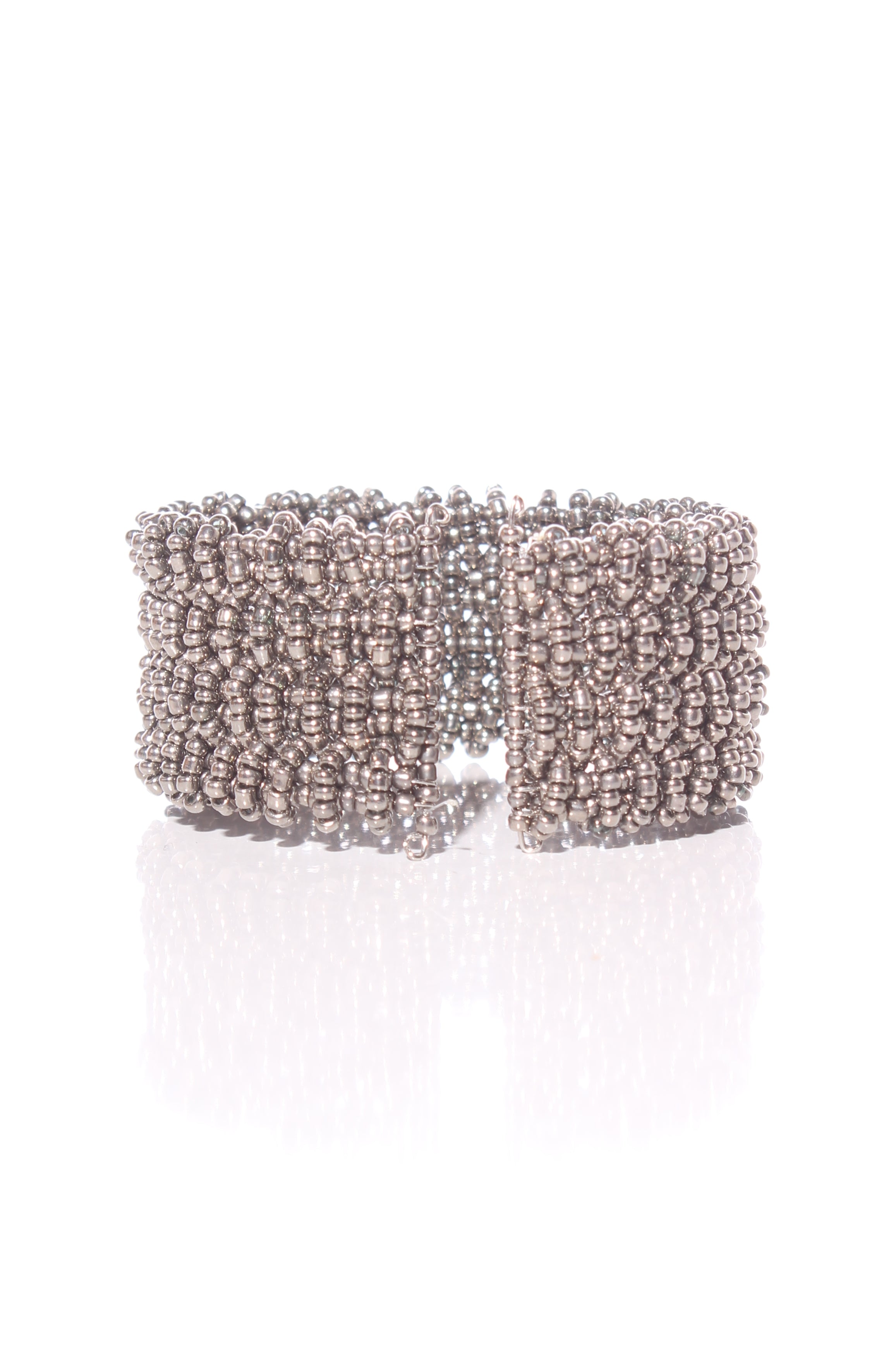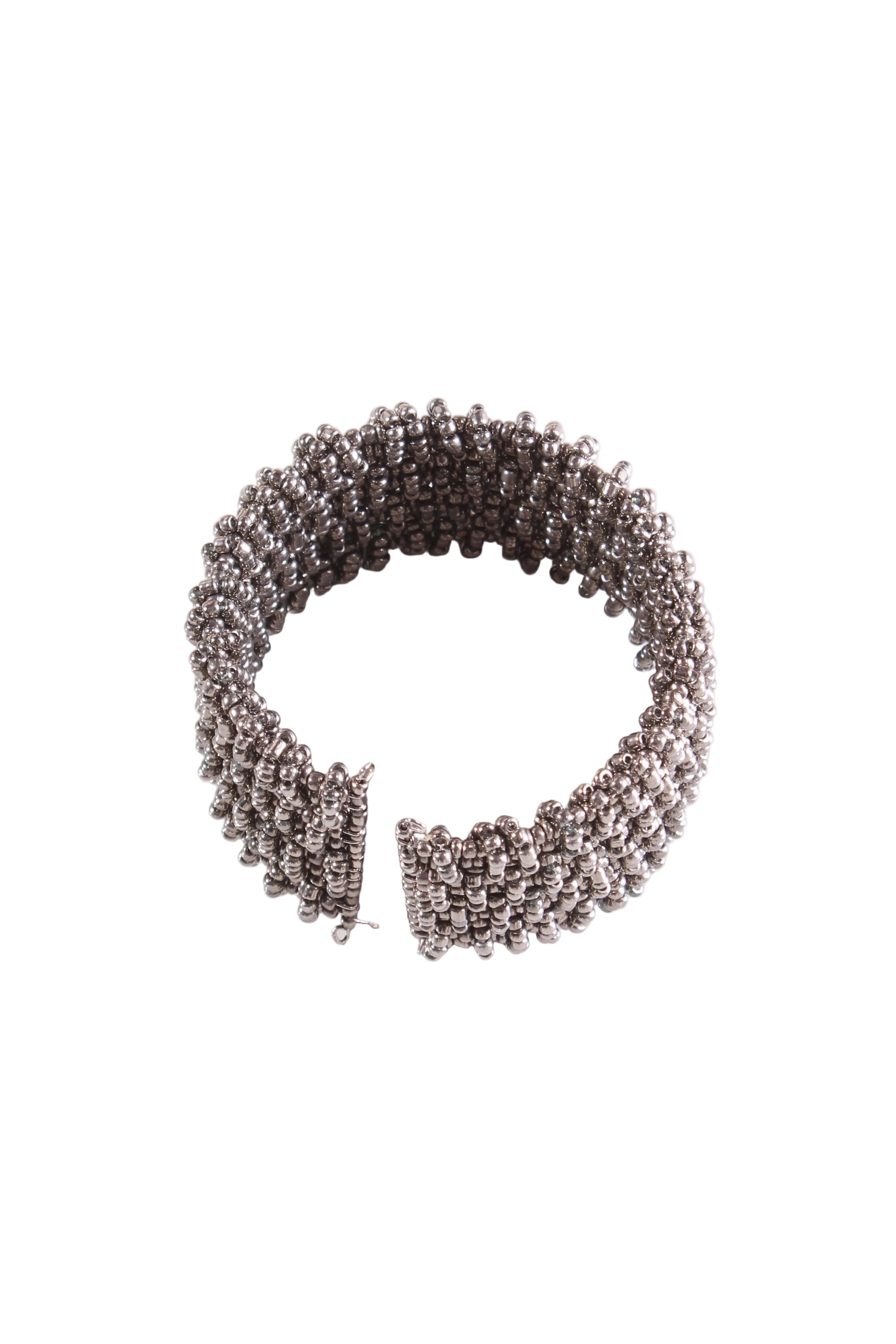 COLOUR: SilverFABRIC: MetalCONDITION: Excellent prelovedMEASUREMENTS:THICKNESS: 3cms NOTES: Purchased from Sills & Co - Spring loaded flexible opening.