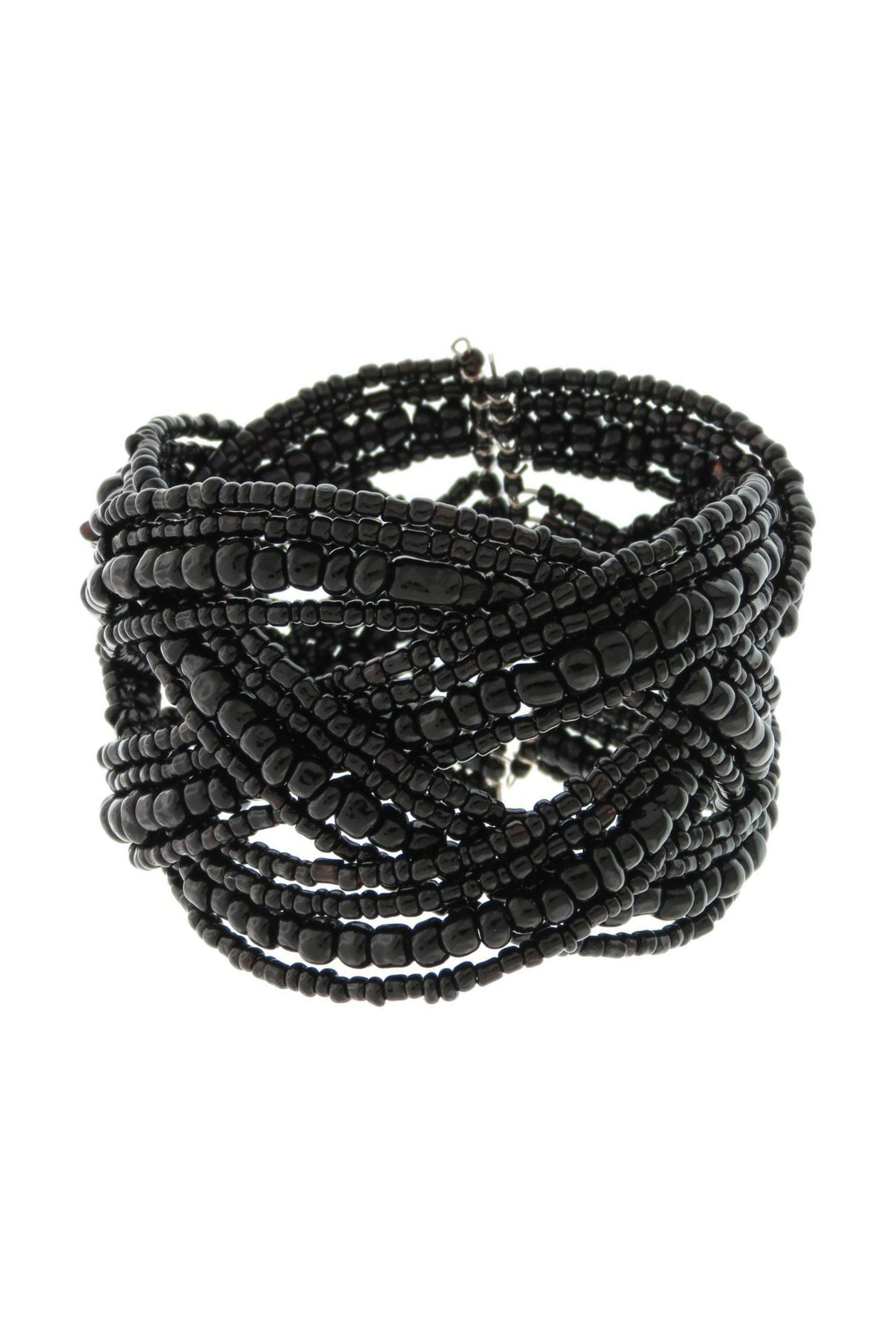 COLOUR: BlackFABRIC: Beads, metalCONDITION: Excellent prelovedMEASUREMENTS:THICKNESS: 4.5cms NOTES: Purchased from Sills & Co - Spring loaded flexible opening.