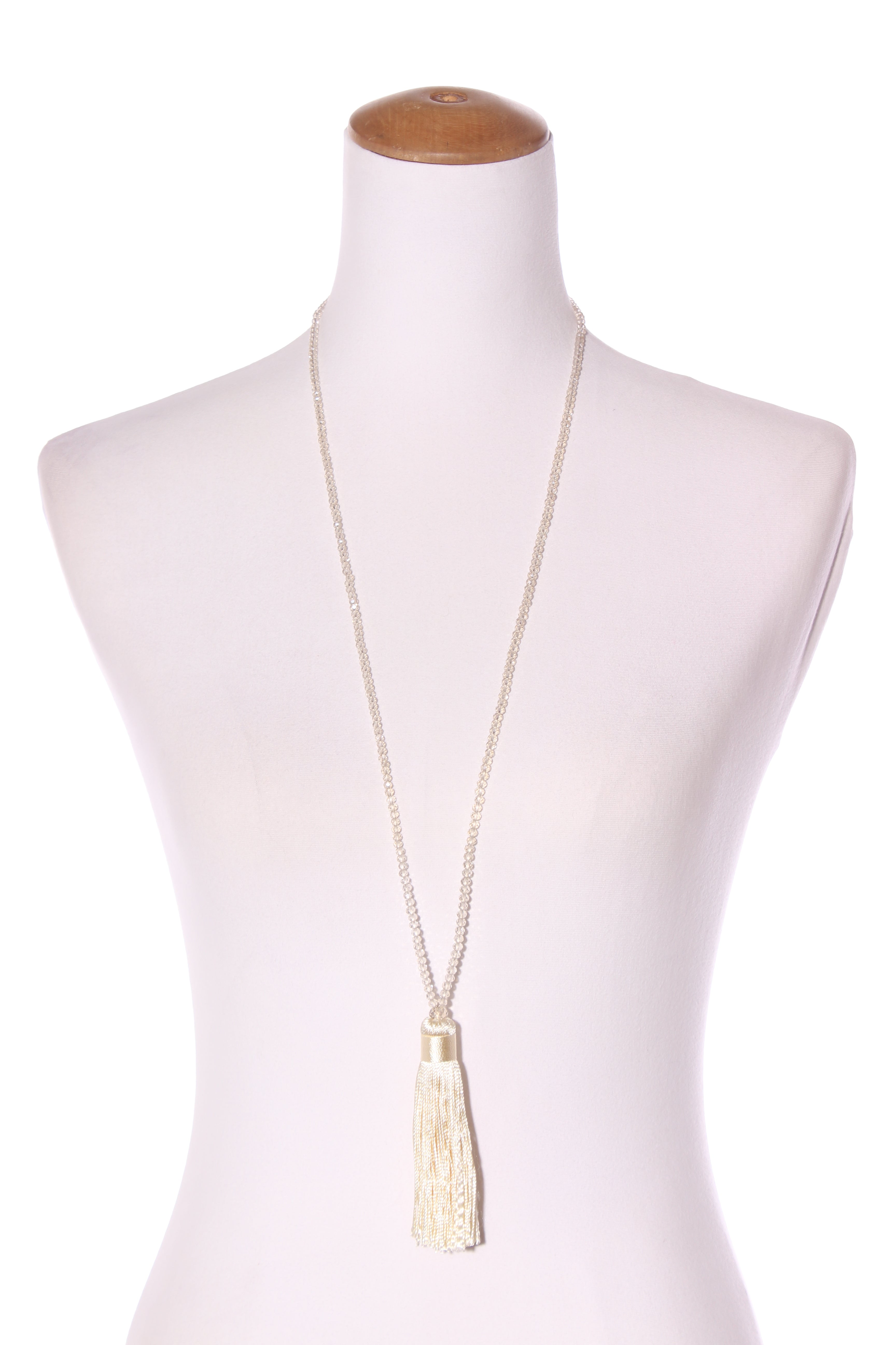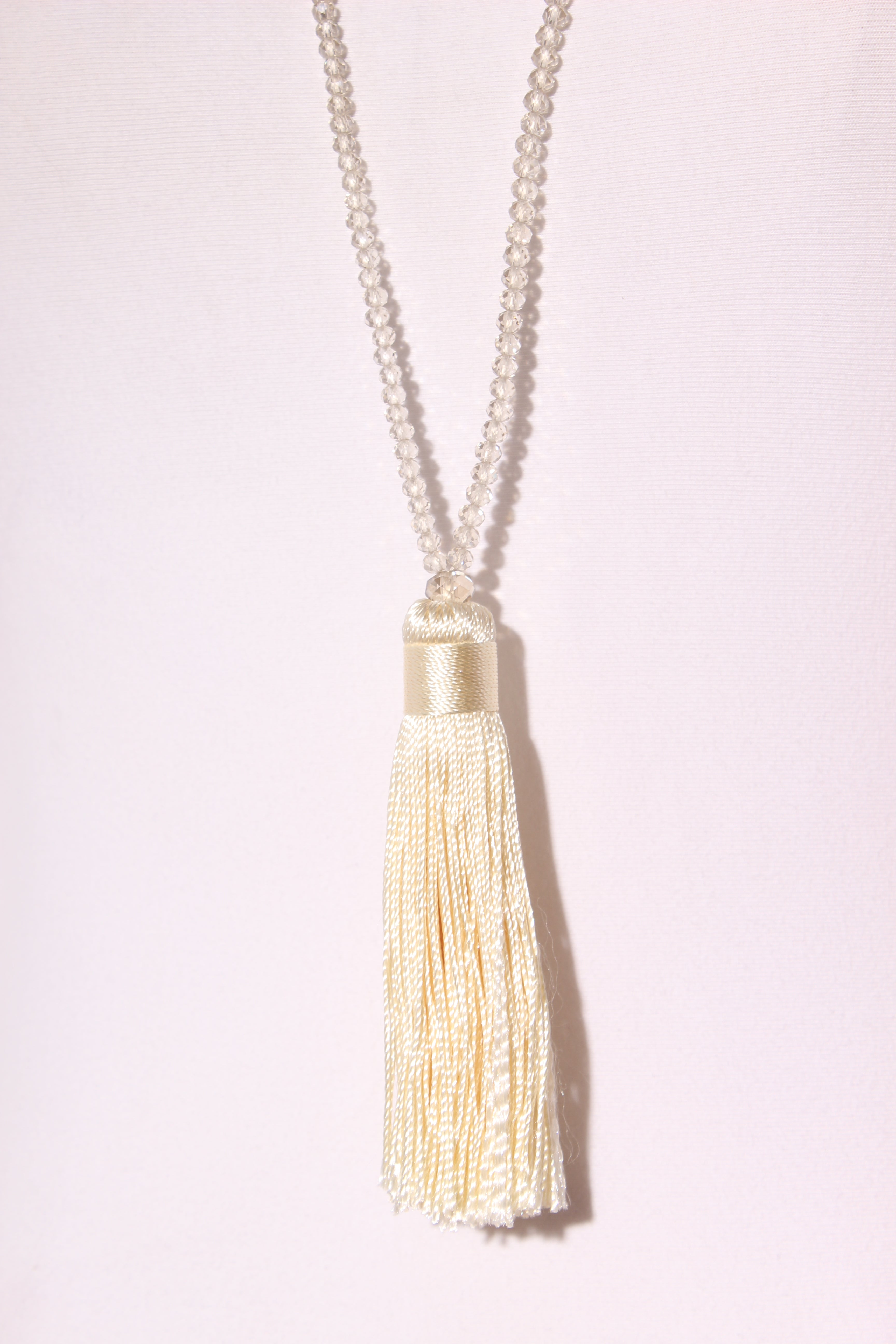 COLOUR: CreamFABRIC: Glass, textileCONDITION: Excellent prelovedMEASUREMENTS:LENGTH: 53cms PENDANT: 10cms NOTES:
