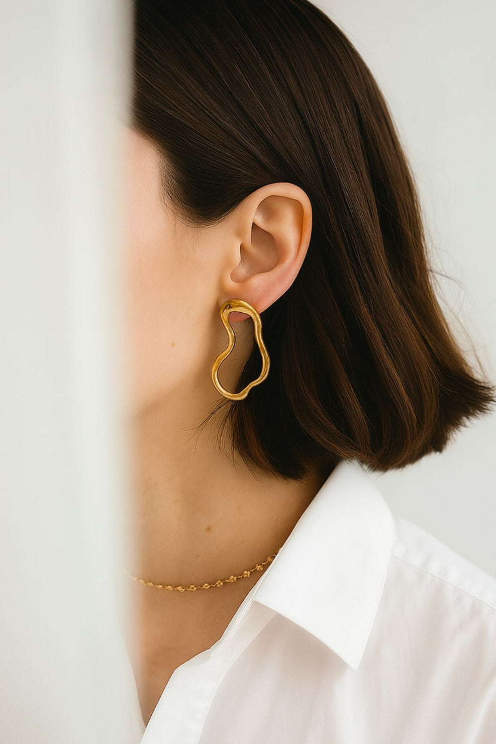 COLOUR: GoldFABRIC: MetalCONDITION: Like newMEASUREMENTS:WIDTH: 2.5cms LENGTH: 4cms NOTES: Add a touch of effortless elegance with our Gold Wave Earrings – a timeless statement piece that...