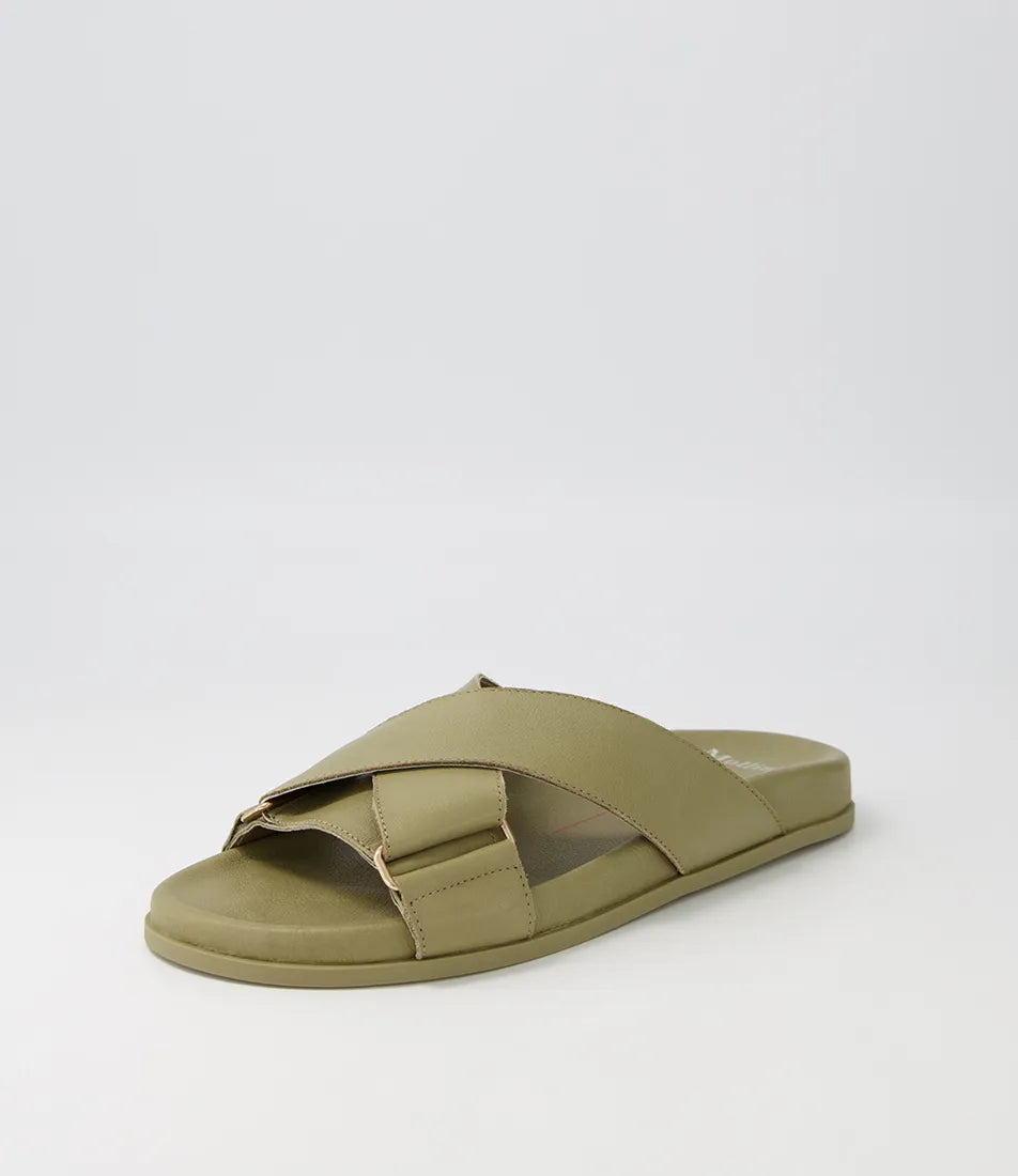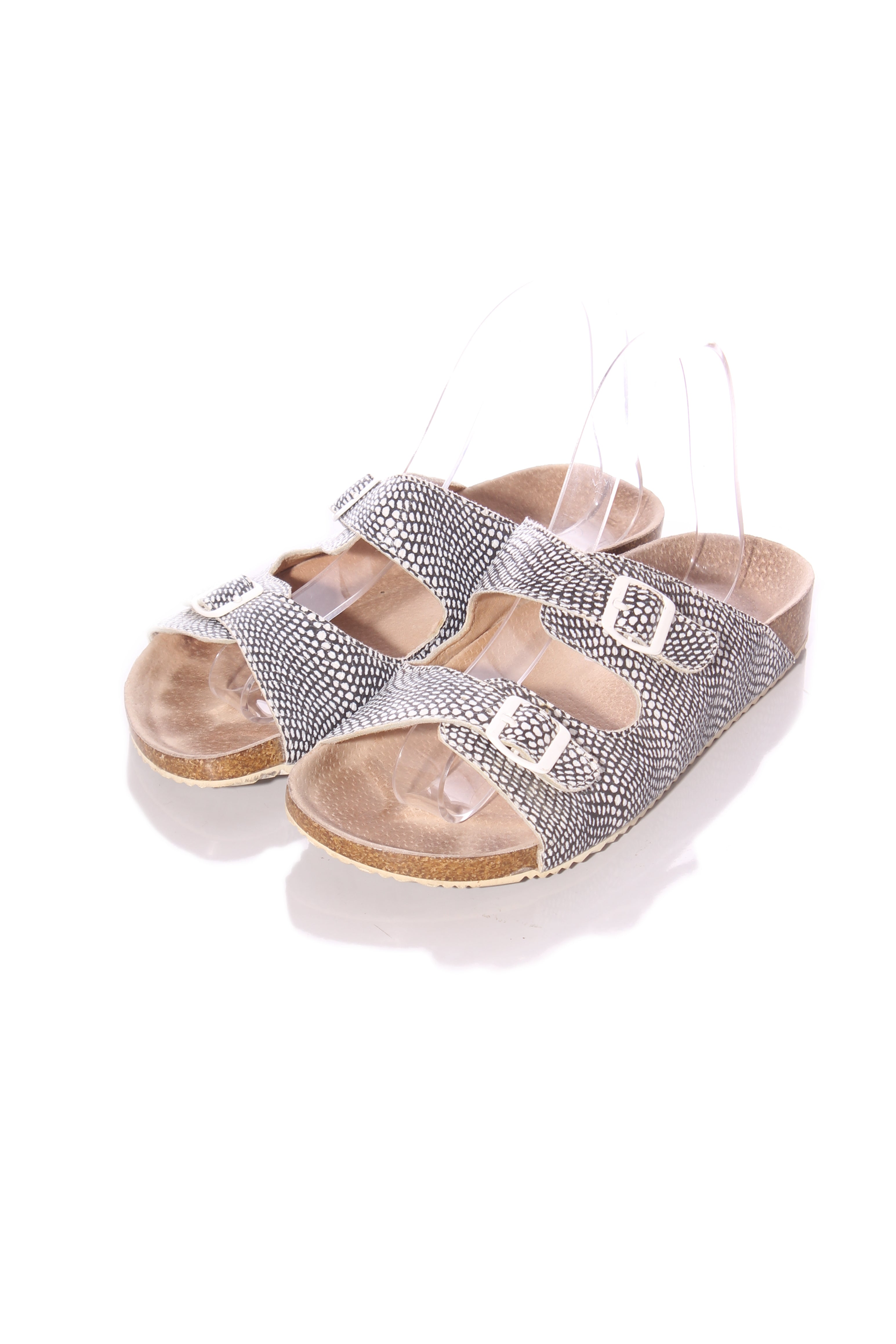SIZE ON SHOE: 39FITS LIKE: 8COLOUR: KhakiFABRIC: Leather upper, leather lining, rubber soleCONDITION: Barely wornMEASUREMENTS:INNER SOLE: 25.5cms WIDTH: 10cms HEEL: 2cms NOTES: Flat leather sandals that...