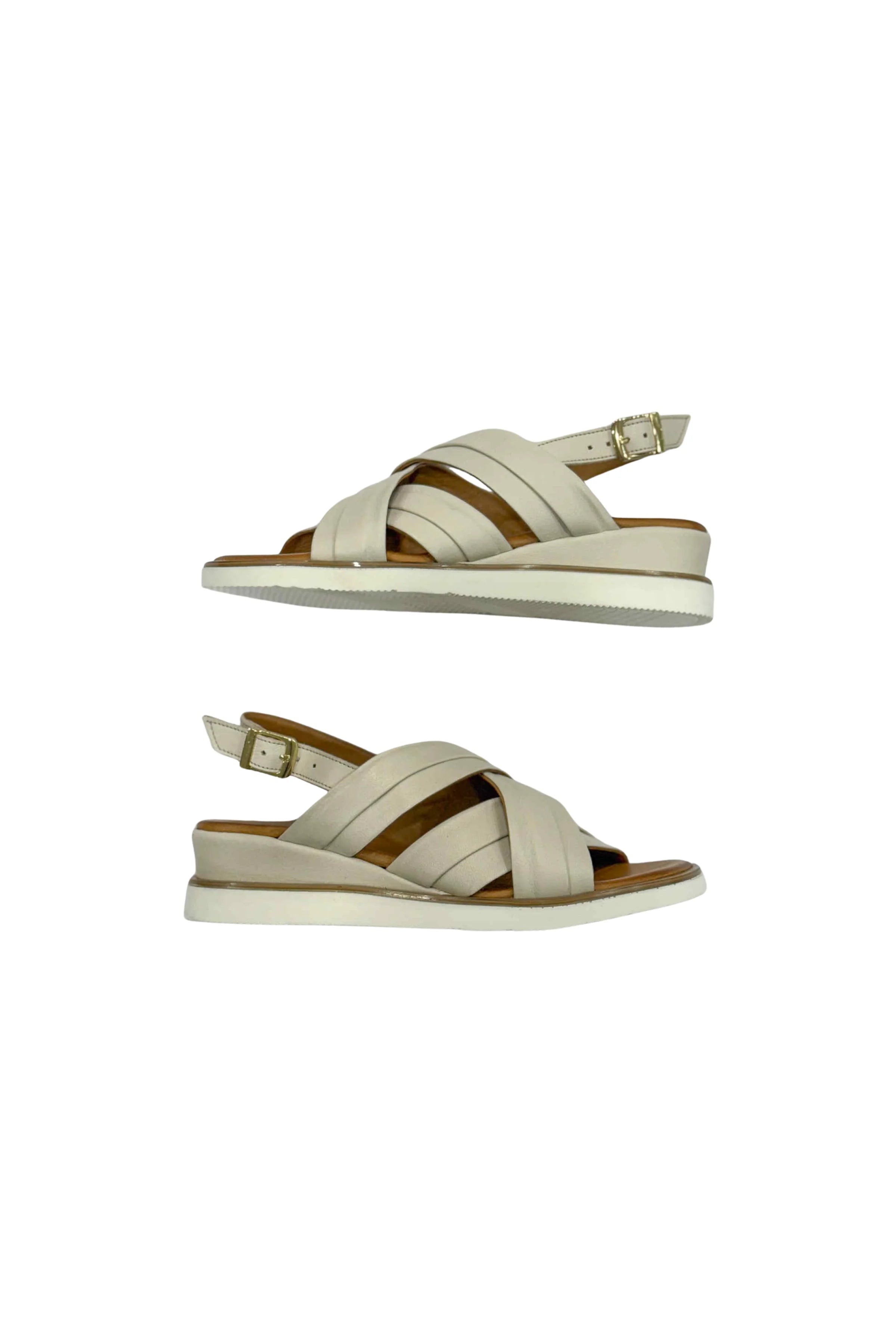 SIZE ON SHOE: 41FITS LIKE: 10COLOUR: CreamFABRIC: Leather upper, leather lining, man made soleCONDITION: Like newMEASUREMENTS:INNER SOLE: 26cms WIDTH: 10cms HEEL: 4.5cms NOTES: The Treble sandal features a...