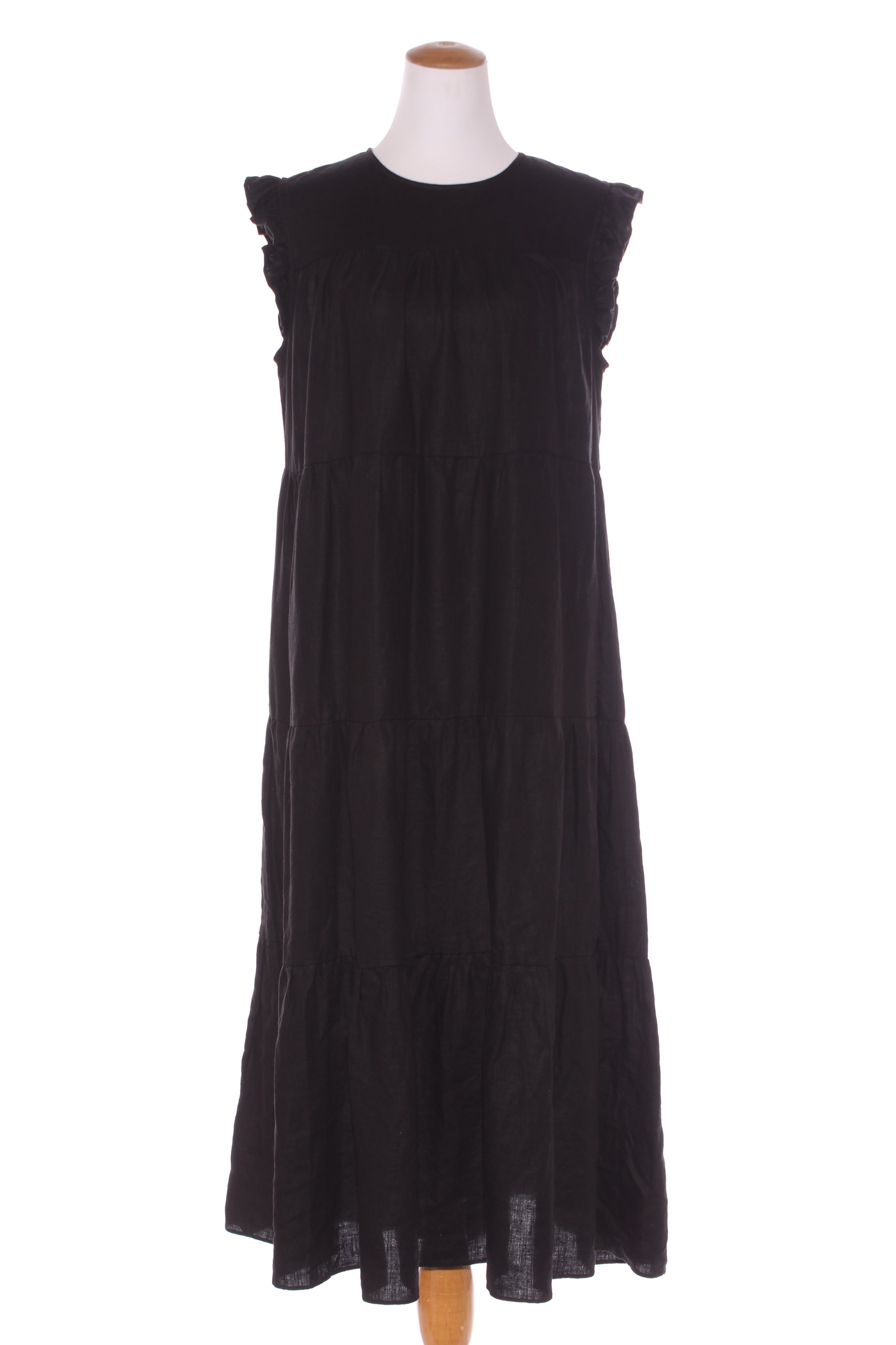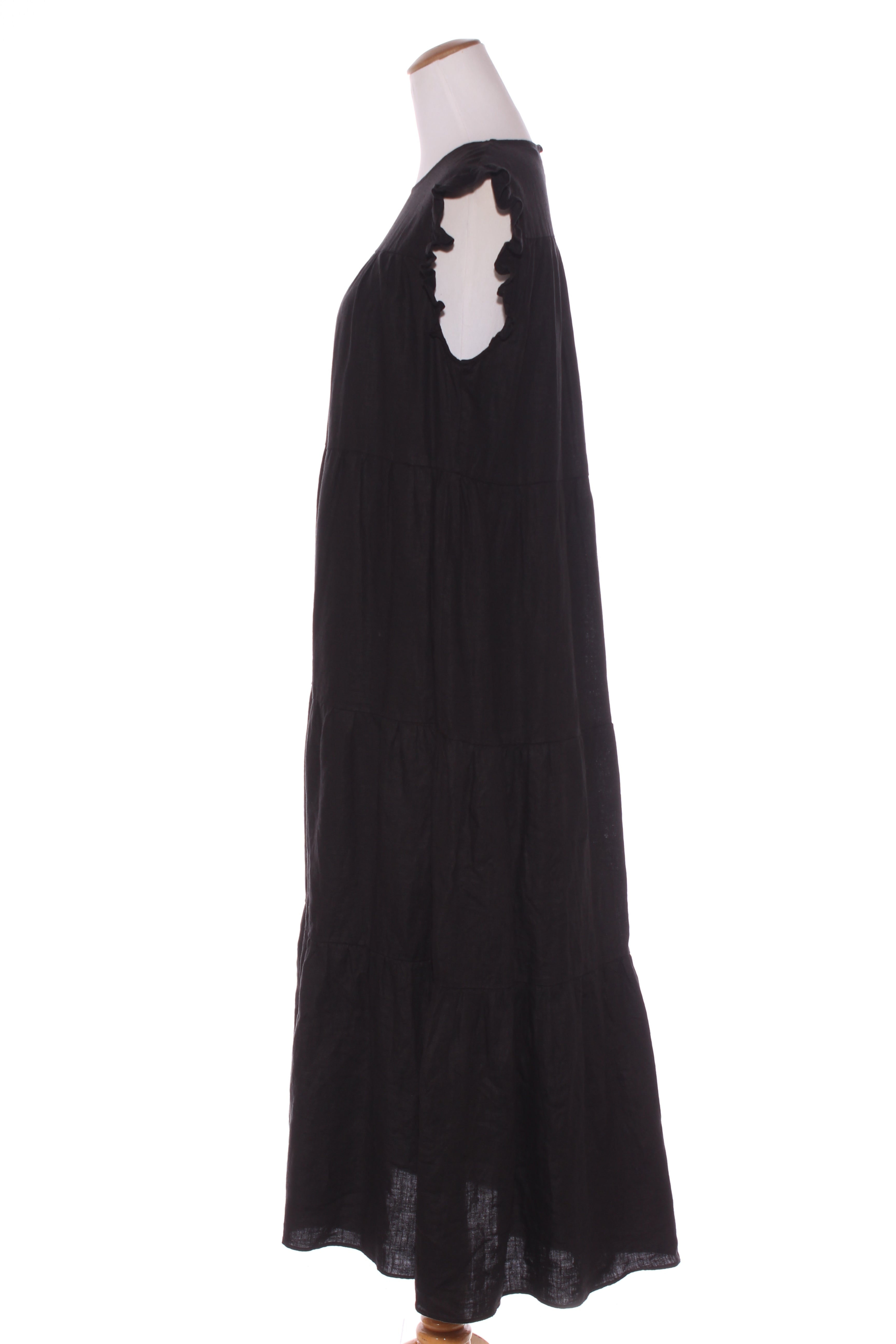 SIZE ON TAG: 10FITS LIKE: 10-12COLOUR: BlackFABRIC: LinenCONDITION: Excellent prelovedMEASUREMENTS:BUST: 60cms WAIST: 58cms LENGTH: 132cms NOTES: Button up nape of neck.