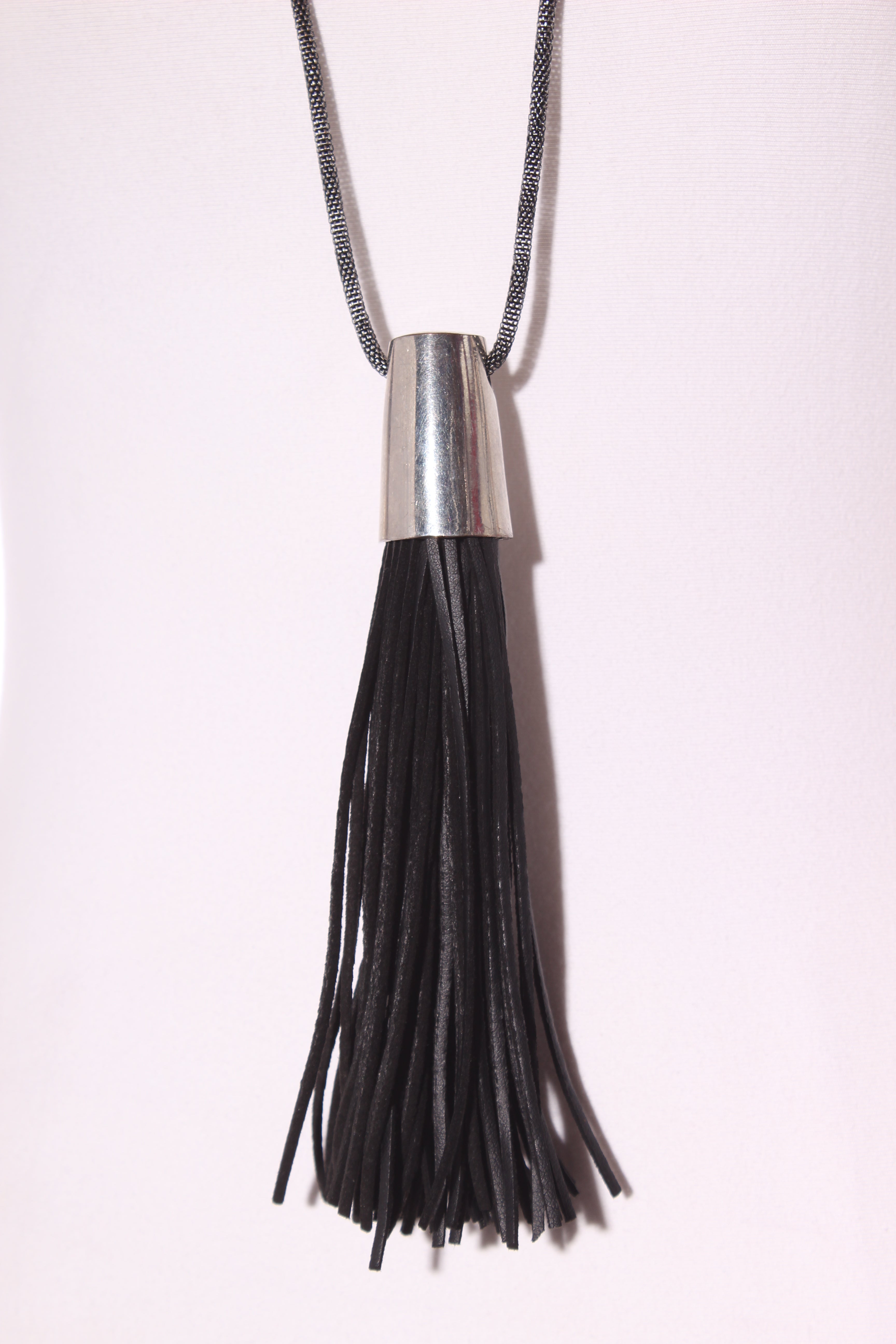 COLOUR: Black, chromeFABRIC: Leather, metalCONDITION: Excellent prelovedMEASUREMENTS:LENGTH: 60cms PENDANT: 16cms NOTES: