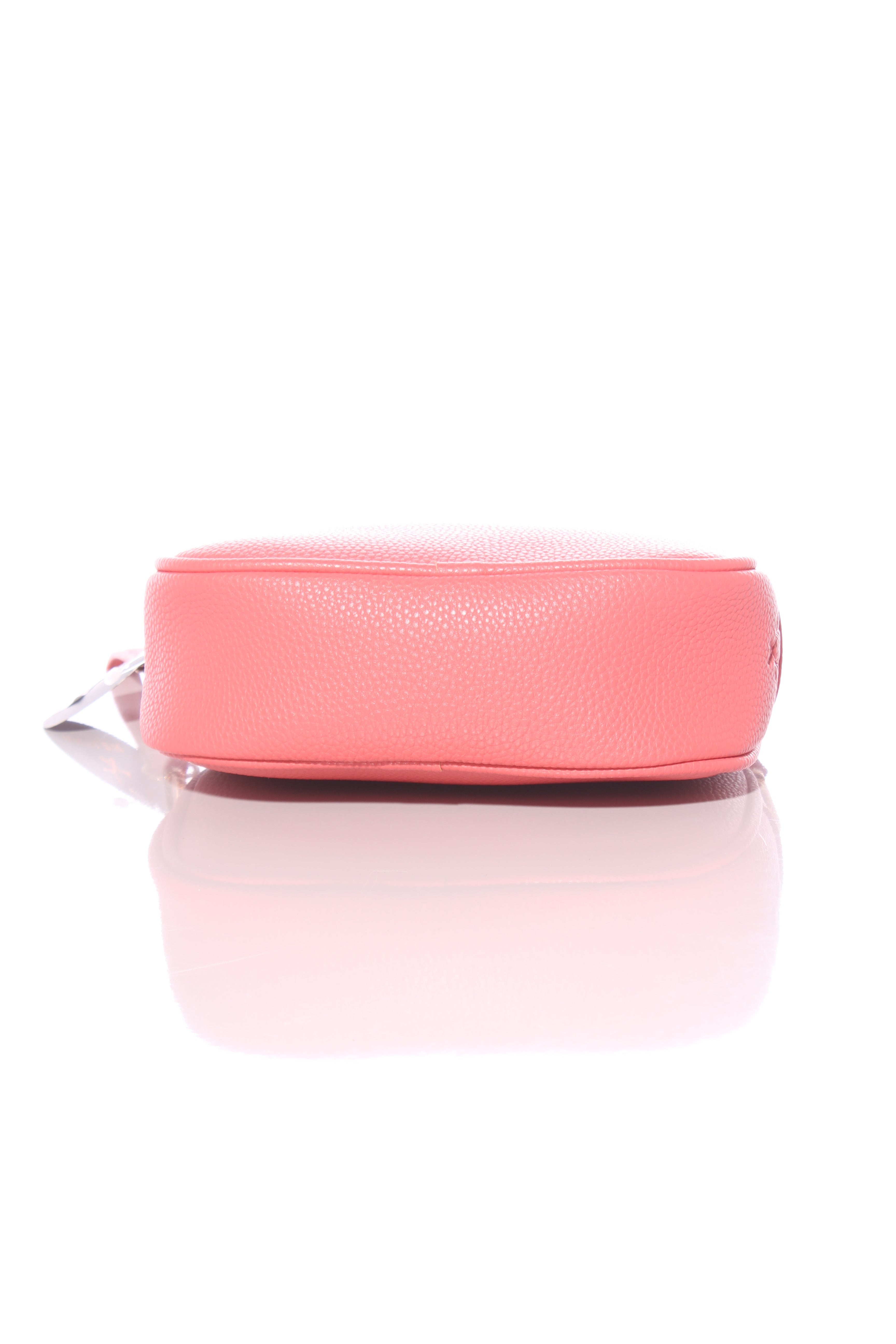 COLOUR: Coral pink, goldFABRIC: PU leather, textile, metalCONDITION: Brand new with tagMEASUREMENTS:HEIGHT: 14.5cms WIDTH: 19cms DEPTH: 7cms STRAP: 117-133cms NOTES: Zip access wit main...