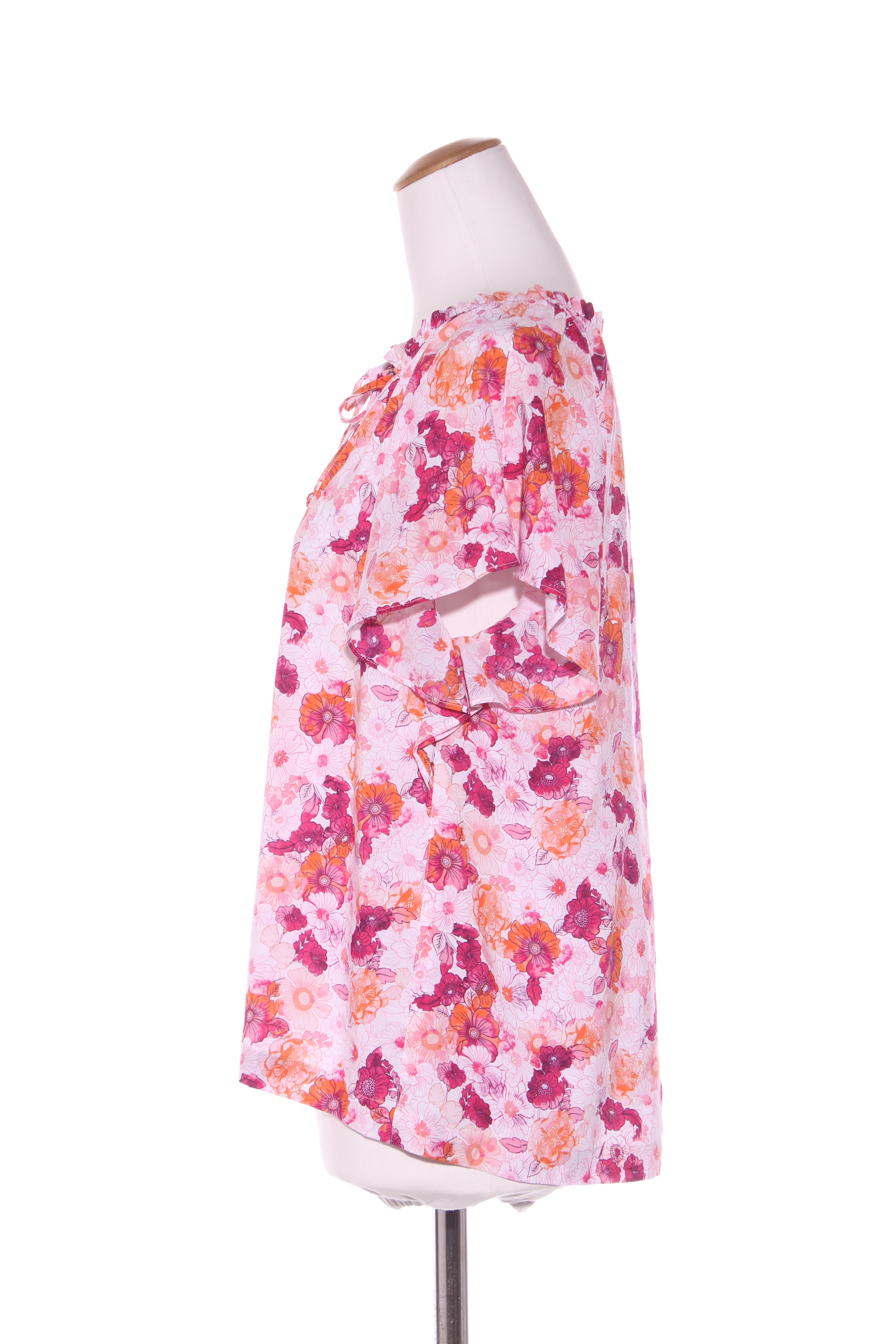 SIZE ON TAG: 10FITS LIKE: N/ACOLOUR: Multi, pinkFABRIC: 55% cotton, 45% viscoseCONDITION: Brand new with tagMEASUREMENTS:BUST: 51cms WAIST: 54cms LENGTH: 65-69cmsNOTES: Ties at front of neckline. Has...