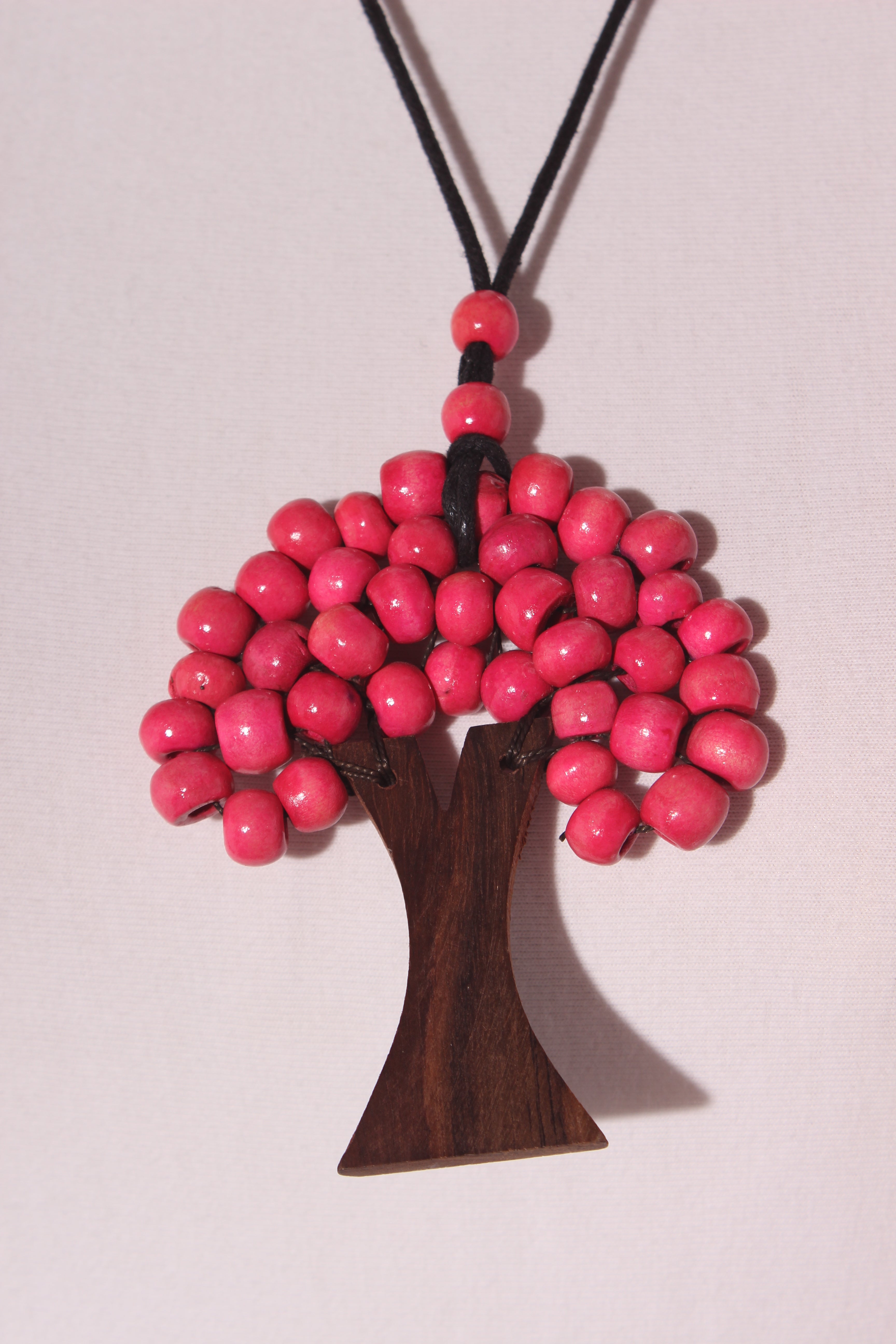 COLOUR: Pink, brown, blackFABRIC: Wood, textileCONDITION: Excellent preloved MEASUREMENTS:LENGTH: 45cms PENDANT: 8cm x 7cm NOTES: