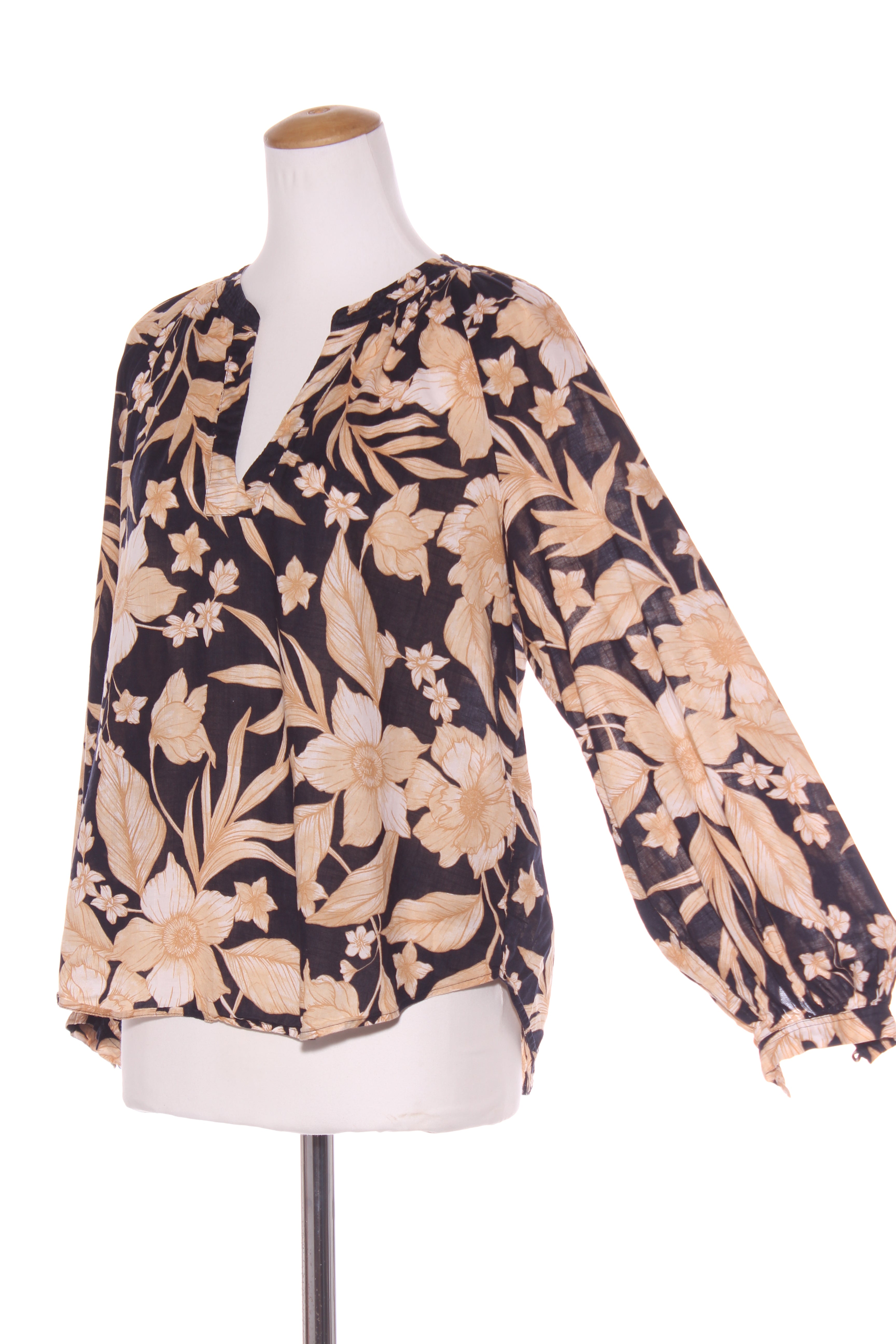 SIZE ON TAG: 1FITS LIKE: 12COLOUR: Dark brownFABRIC: Ramie, Trims - polyester CONDITION: Excellent prelovedMEASUREMENTS:BUST: 56cms WAIST: 58cms LENGTH: 65cms NOTES: Button up front and sleeve ends.