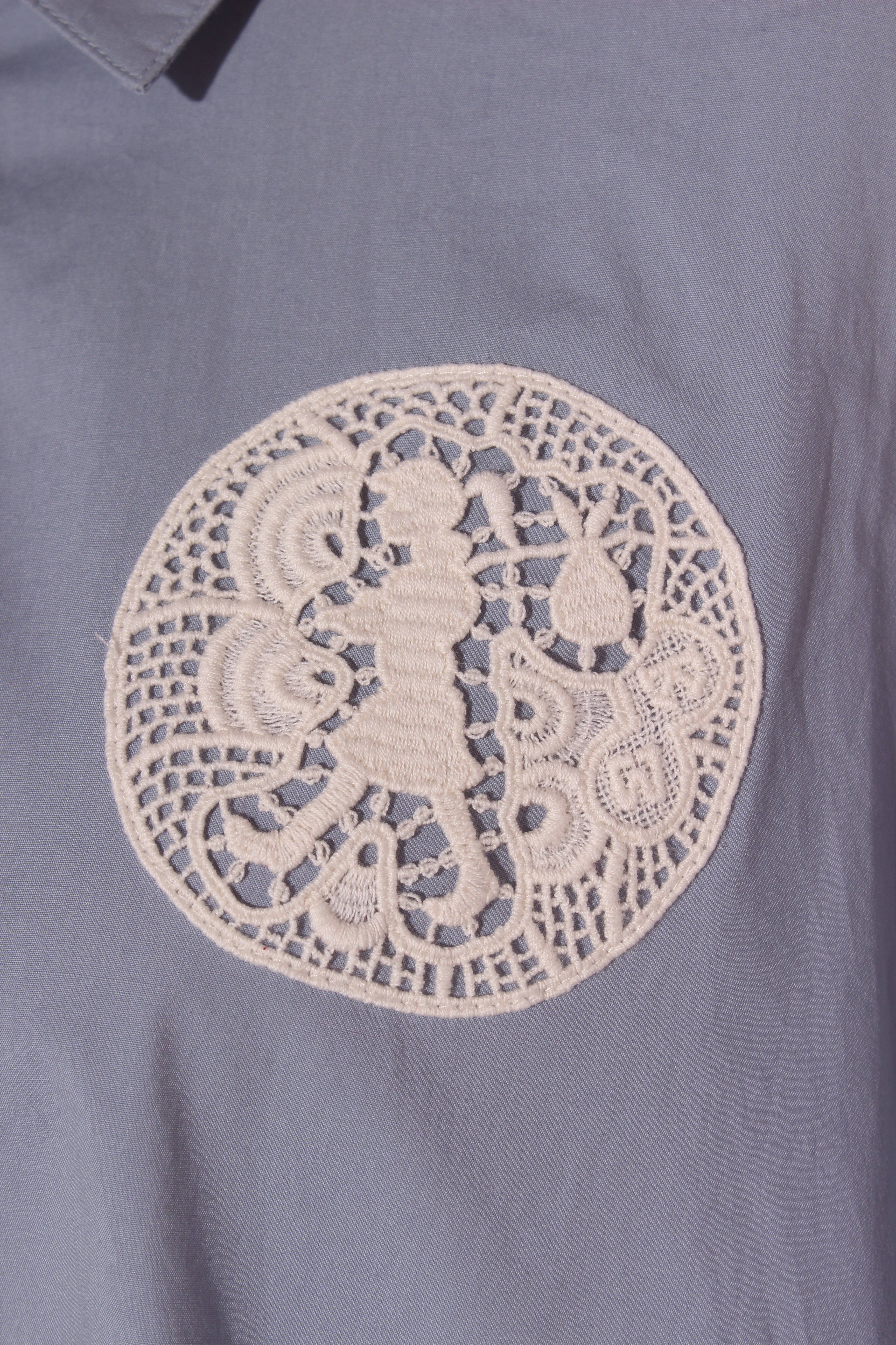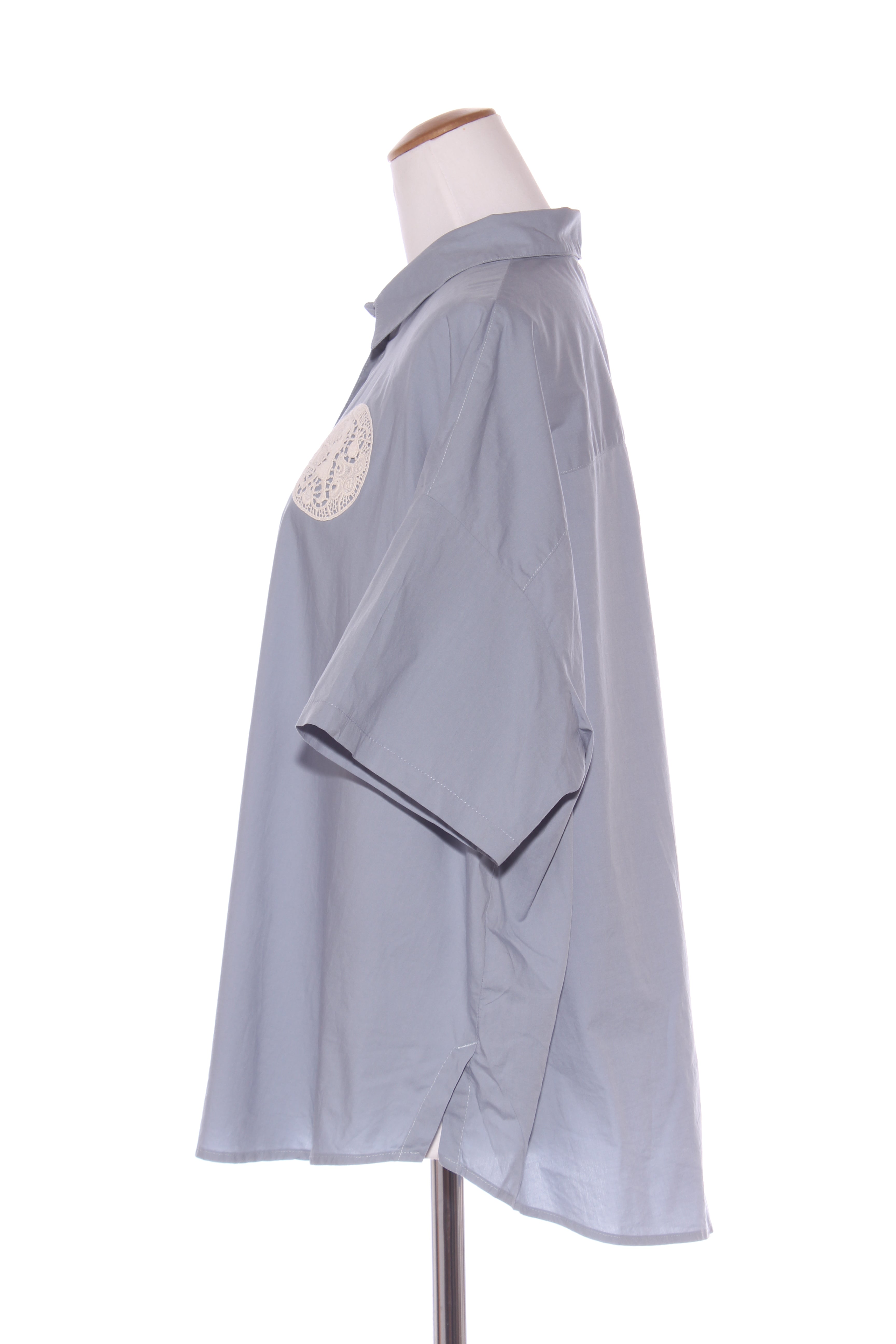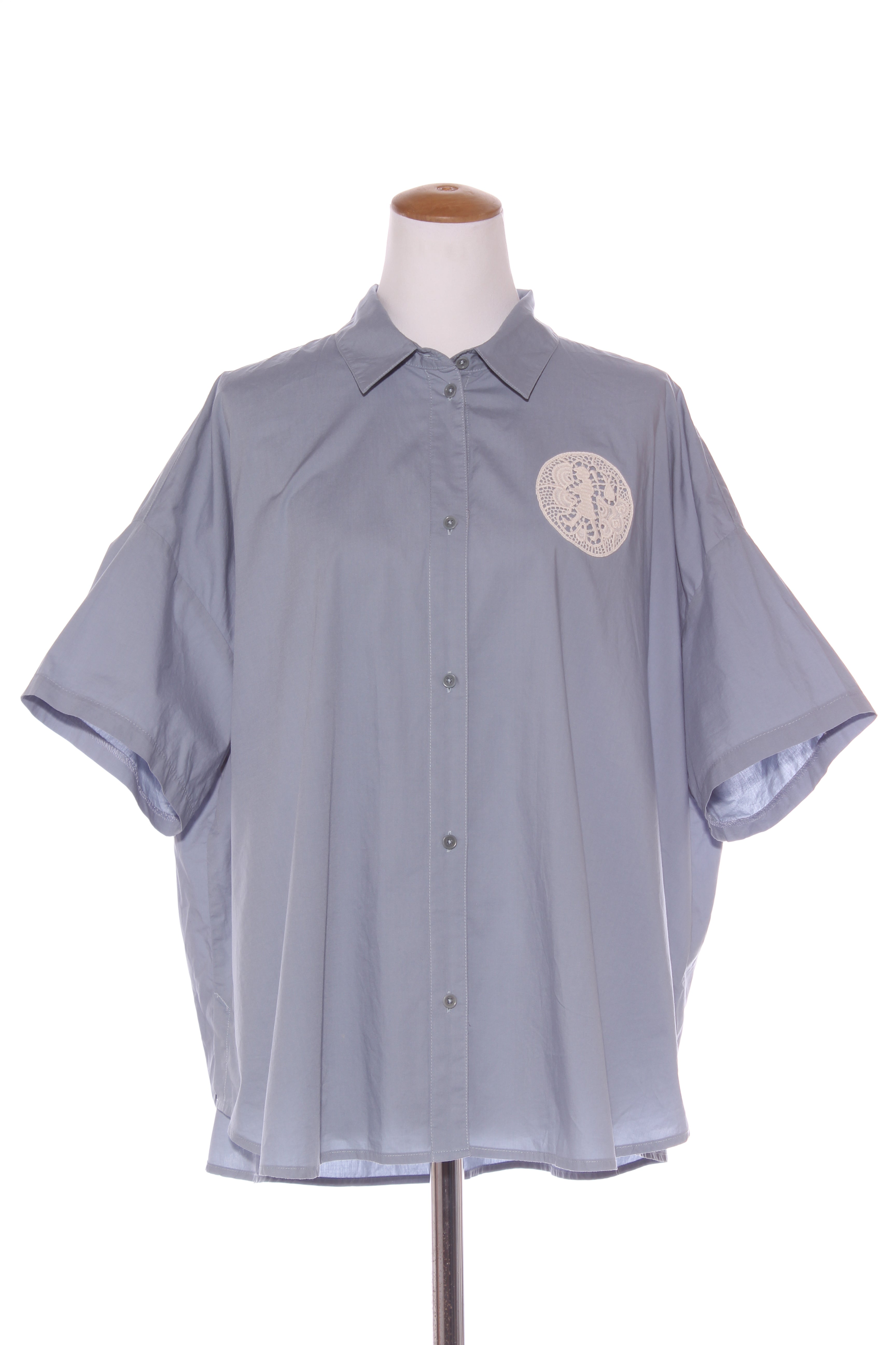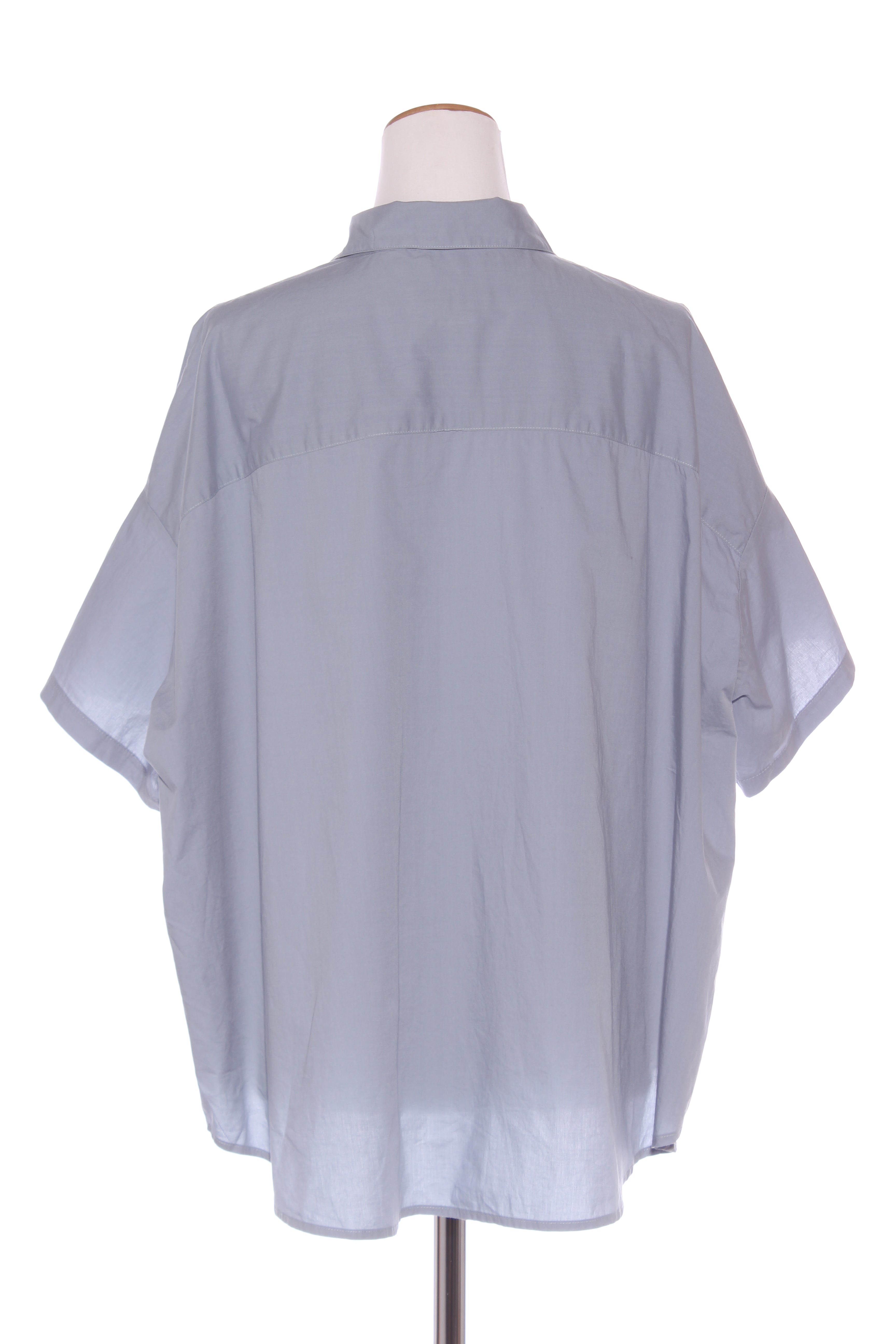 SIZE ON TAG: 18FITS LIKE: N/ACOLOUR: Pale blue, whiteFABRIC: Organic cottonCONDITION: Excellent prelovedMEASUREMENTS:BUST: 81cms WAIST: 82cms LENGTH: 71cms NOTES: Button up front.