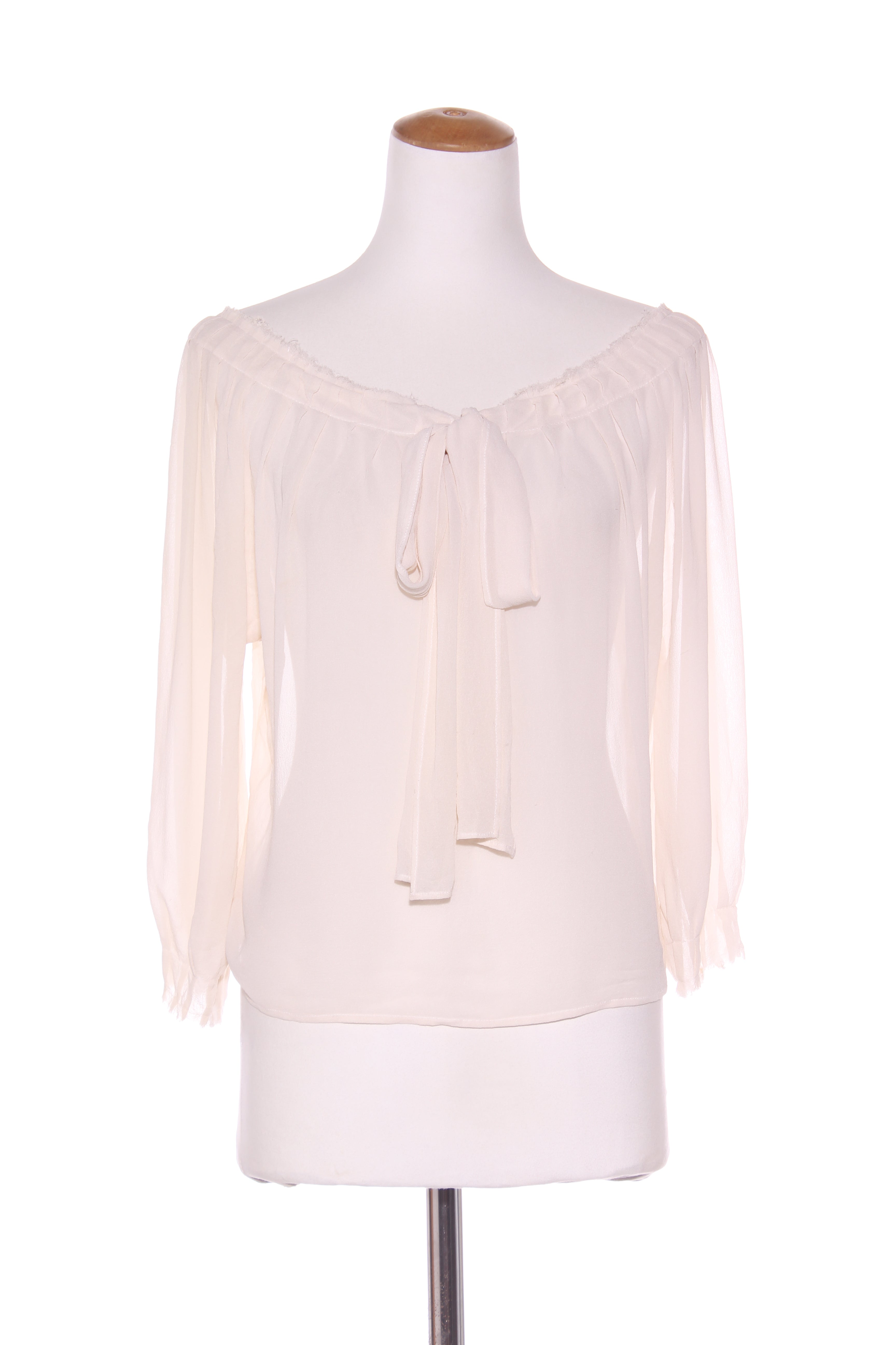 SIZE ON TAG: 10FITS LIKE: 10-12COLOUR: CreamFABRIC: SilkCONDITION: Very good vintage prelovedMEASUREMENTS:BUST: 57cms WAIST: 50cms LENGTH: 49cmsNOTES: The Cupboard label. Made in NZ. Ties at front...