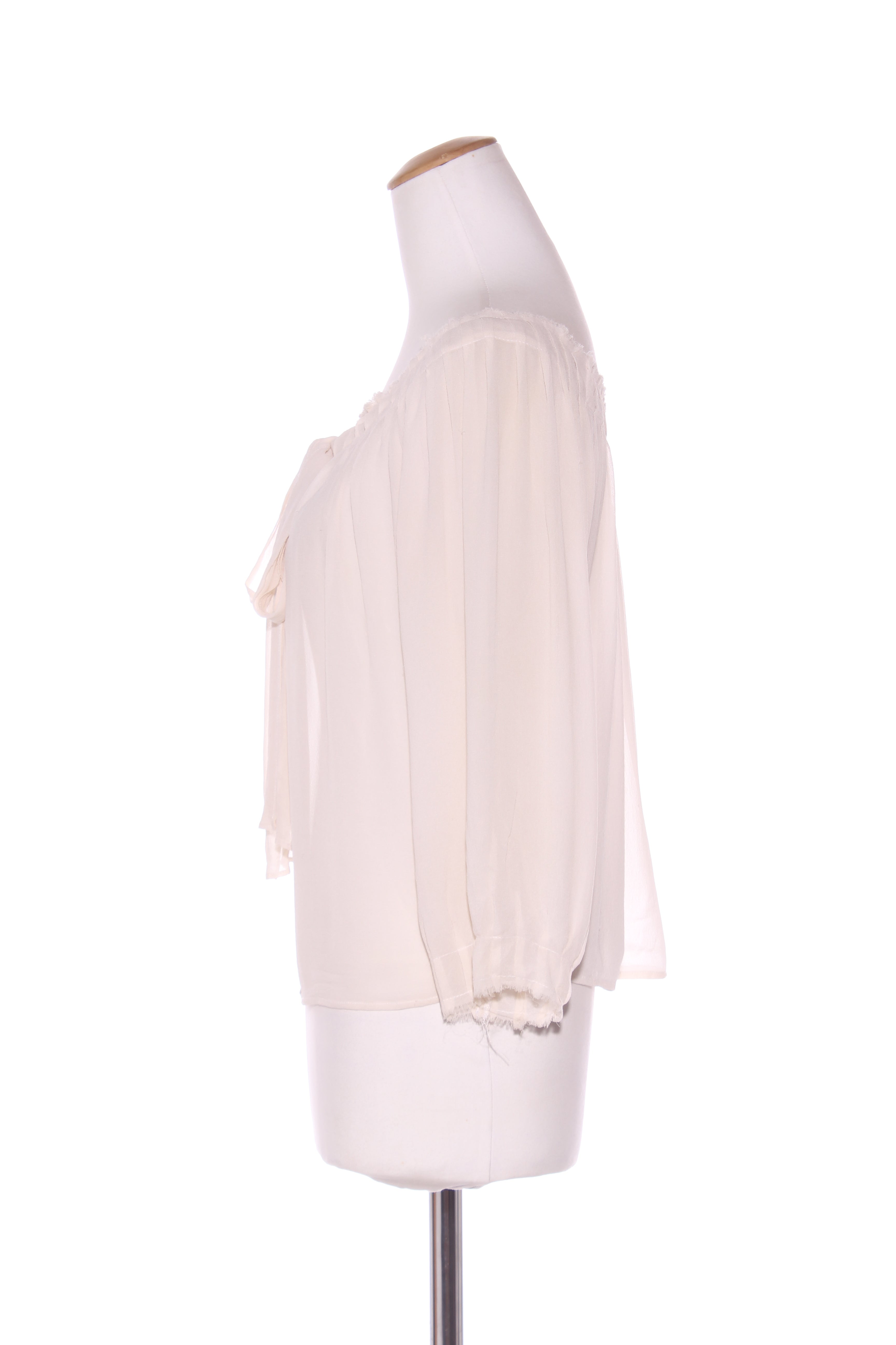 SIZE ON TAG: 12FITS LIKE: N/ACOLOUR: WhiteFABRIC: PolyesterCONDITION: Very good prelovedMEASUREMENTS:BUST: 46cms WAIST: 42cms LENGTH: 67cmsNOTES: Elasticated shirred body and sleeve ends.