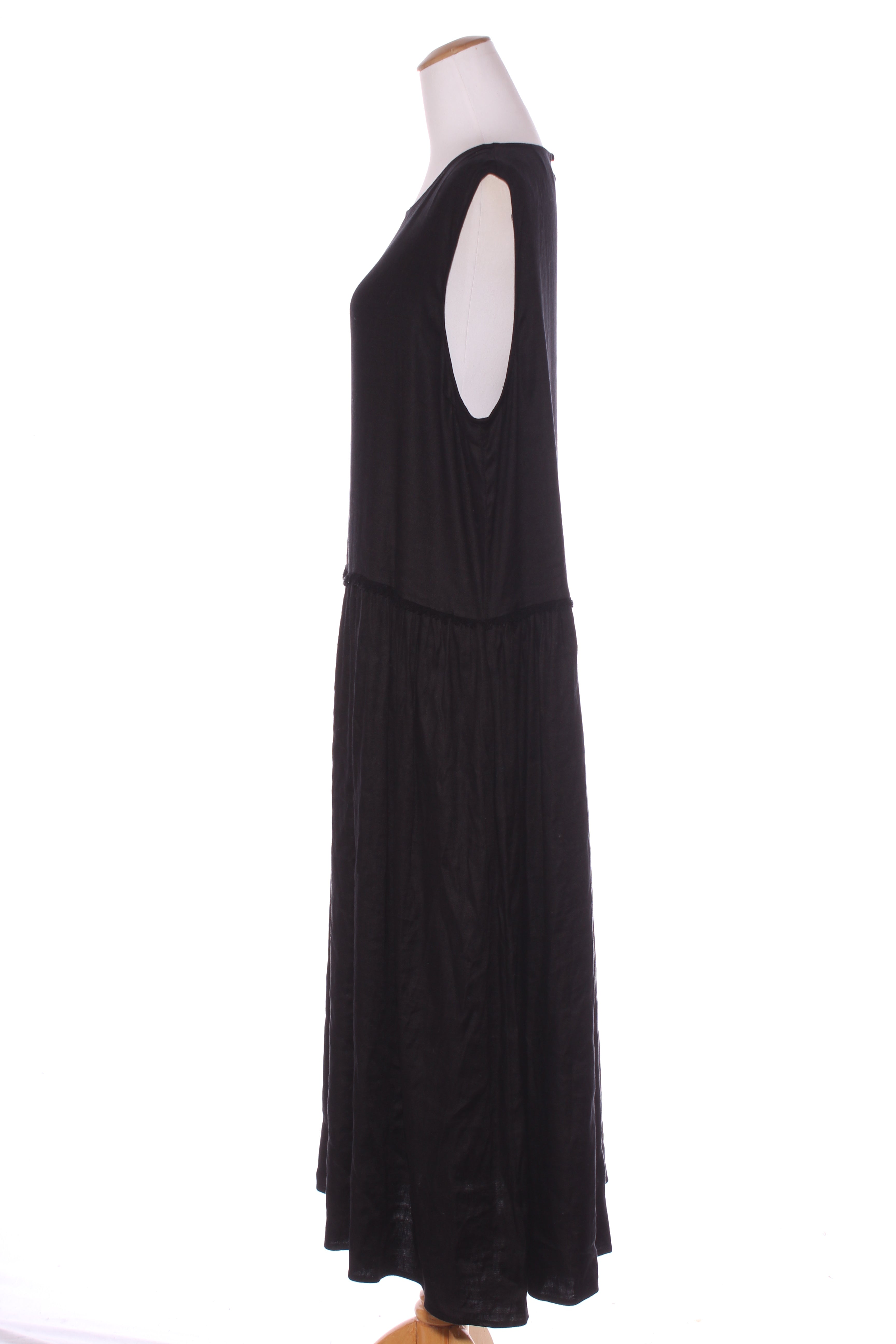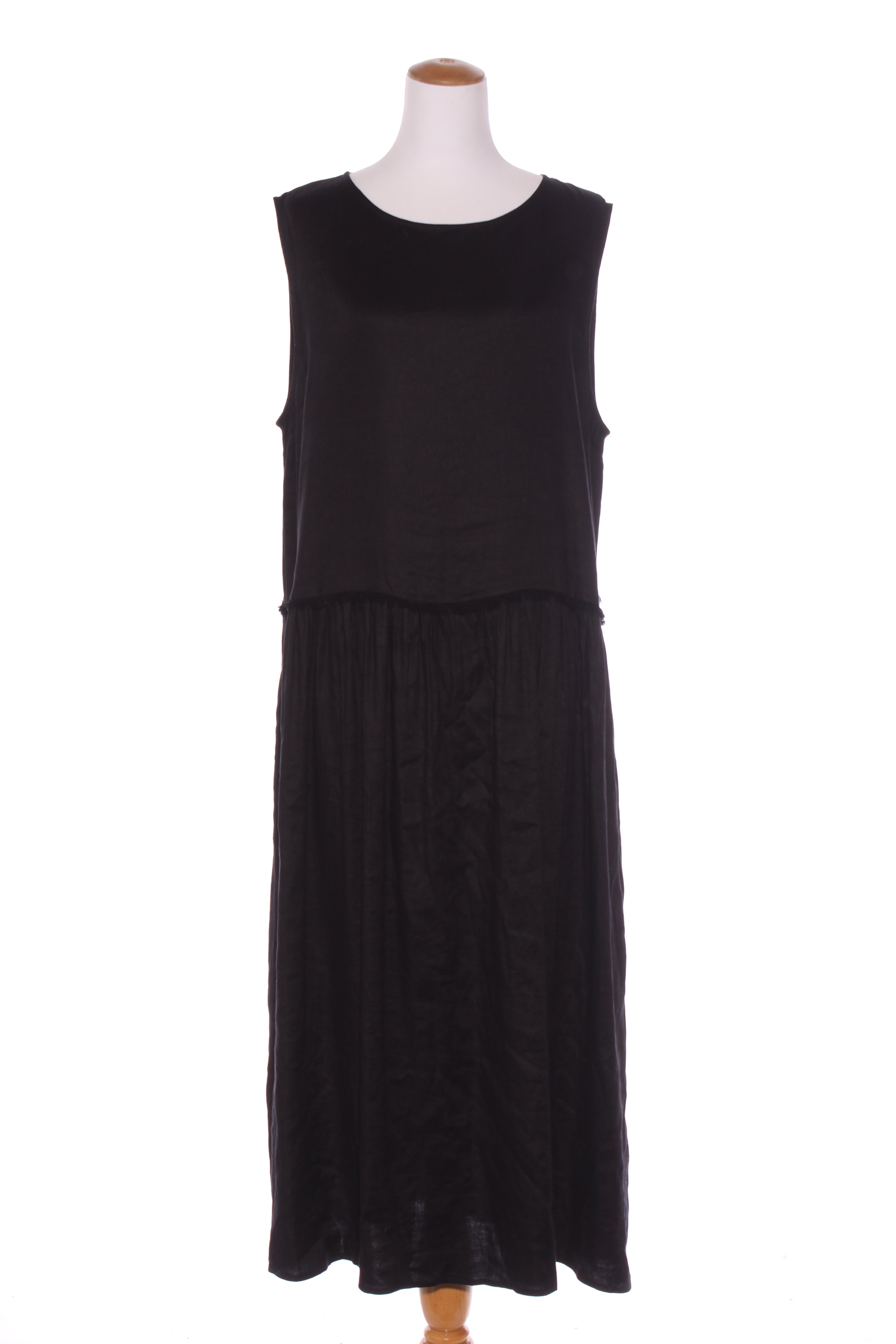 SIZE ON TAG: 14FITS LIKE: N/ACOLOUR: BlackFABRIC: 55% linen, 42% viscose, 3% elastaneCONDITION: Like newMEASUREMENTS:BUST: 59cms WAIST: 59cms LENGTH: 132cmsNOTES: Button up nape of neck. Side...