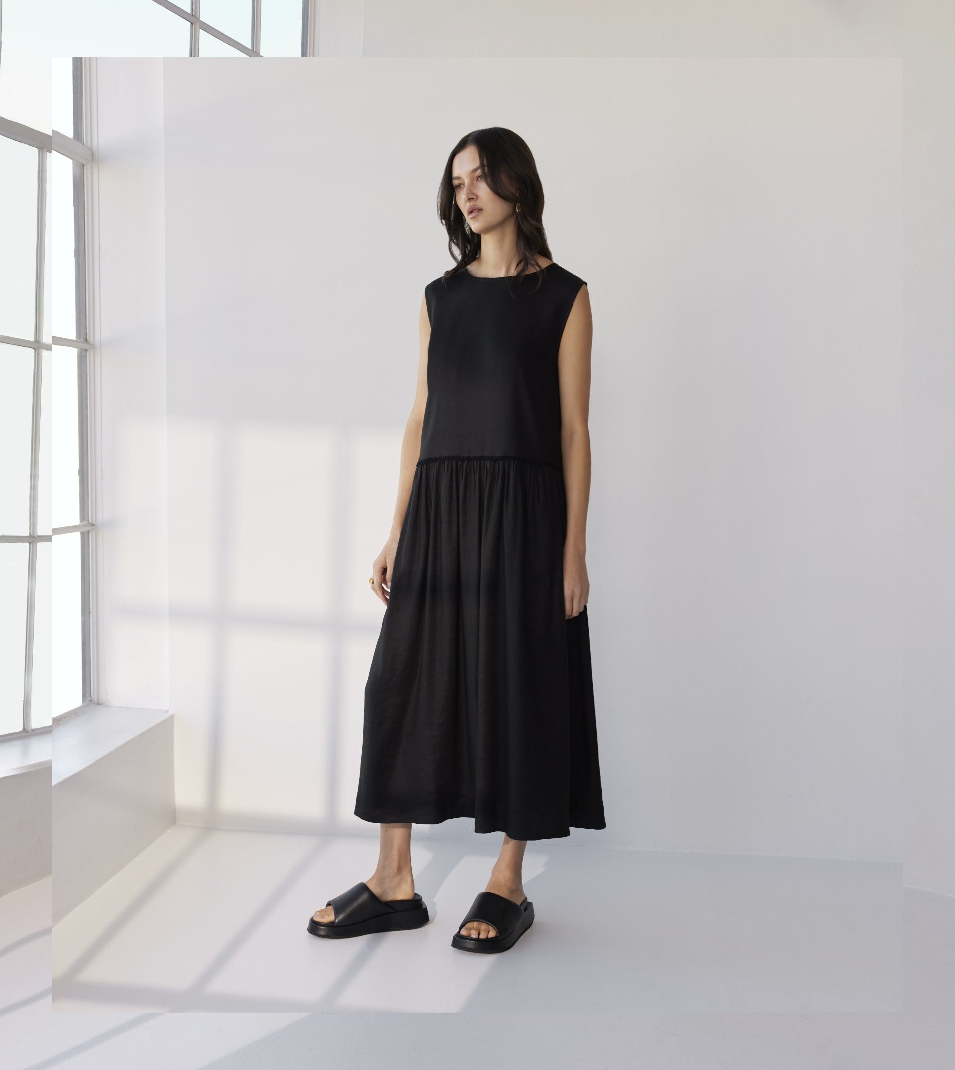 SALE ITEM - [NOT ELIGIBLE FOR RETURN] - Was $20SIZE ON TAG: One sizeFITS LIKE: 8-14COLOUR: BlackFABRIC: NylonCONDITION: Excellent prelovedMEASUREMENTS:BUST: 40cms WAIST: 35cms LENGTH: 61cmsNOTES: Fabric...