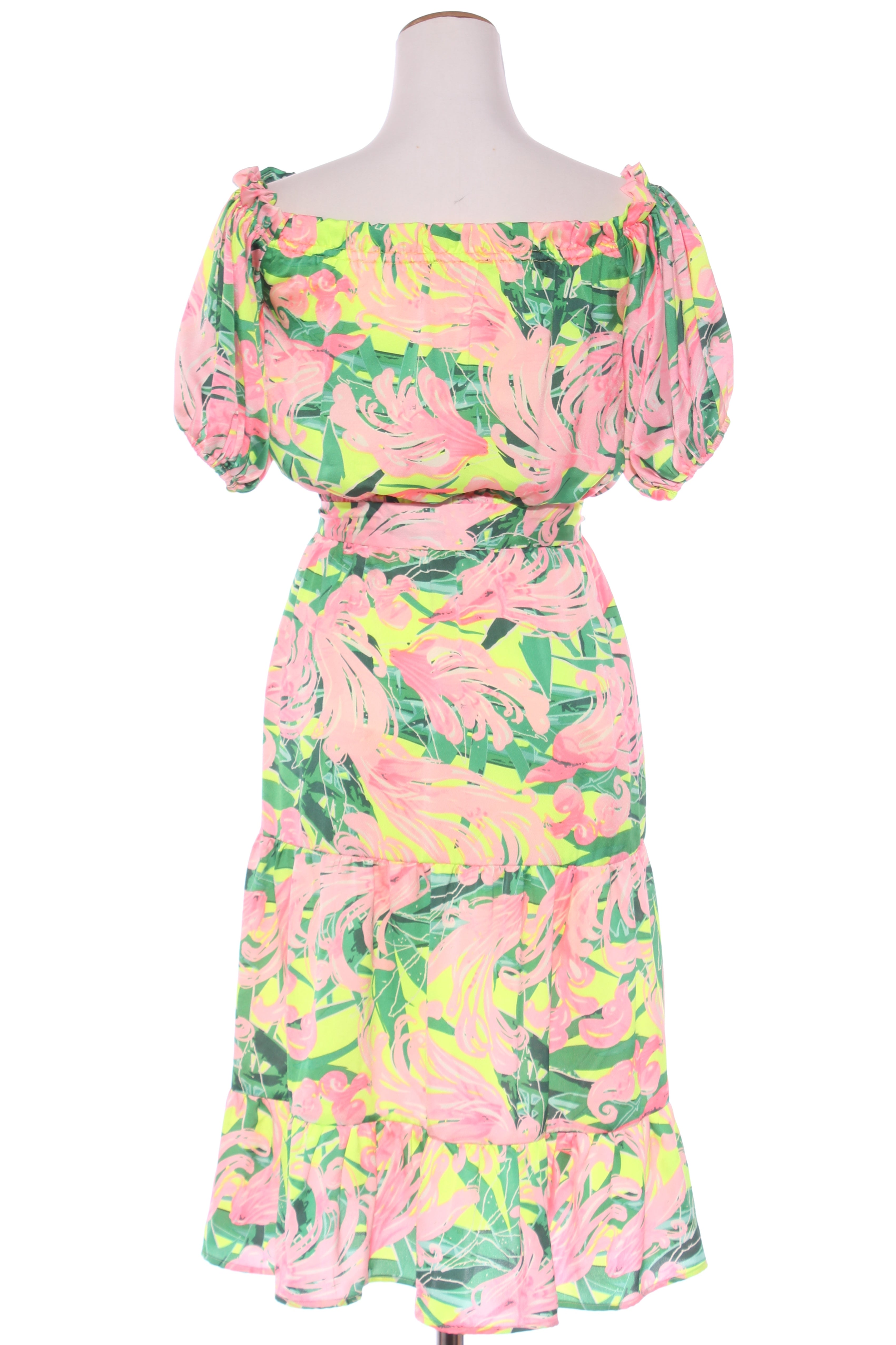 SALE ITEM - [NOT ELIGIBLE FOR RETURN] - Was $55SIZE ON TAG: XSFITS LIKE: 8COLOUR: Pink, green, yellowFABRIC: Polyester, Lining - 97% polyester, 3% elastaneCONDITION: Excellent preloved - professionally shortenedMEASUREMENTS:BUST:...