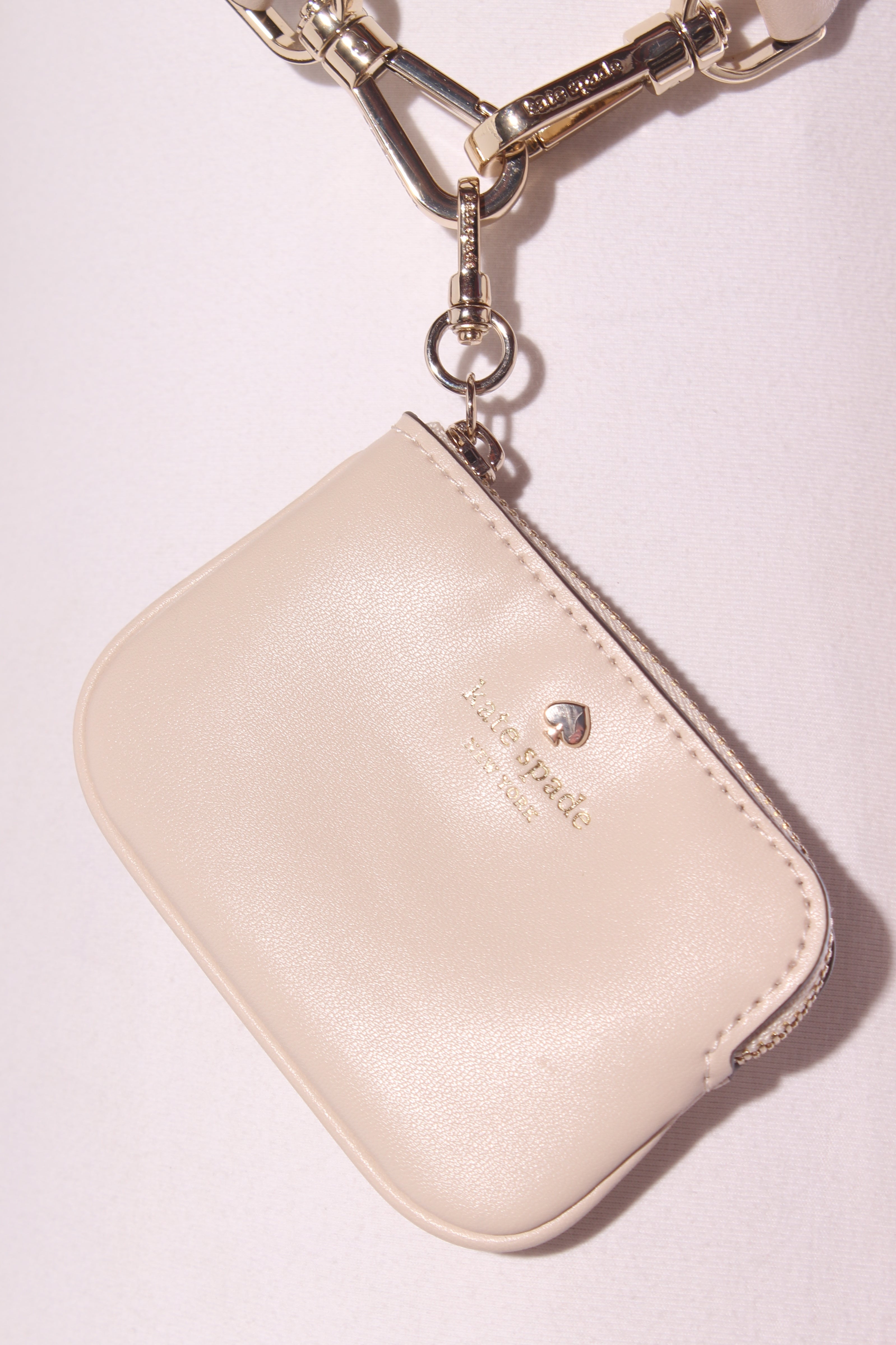 COLOUR: Beige, gold, blackFABRIC: Leather, metal, textileCONDITION: Like newMEASUREMENTS:HEIGHT: 7cms WIDTH: 10cms DEPTH: 1cms STRAP: 91.5-107.5cms NOTES: Adjustable removable shoulder strap. Zip access.