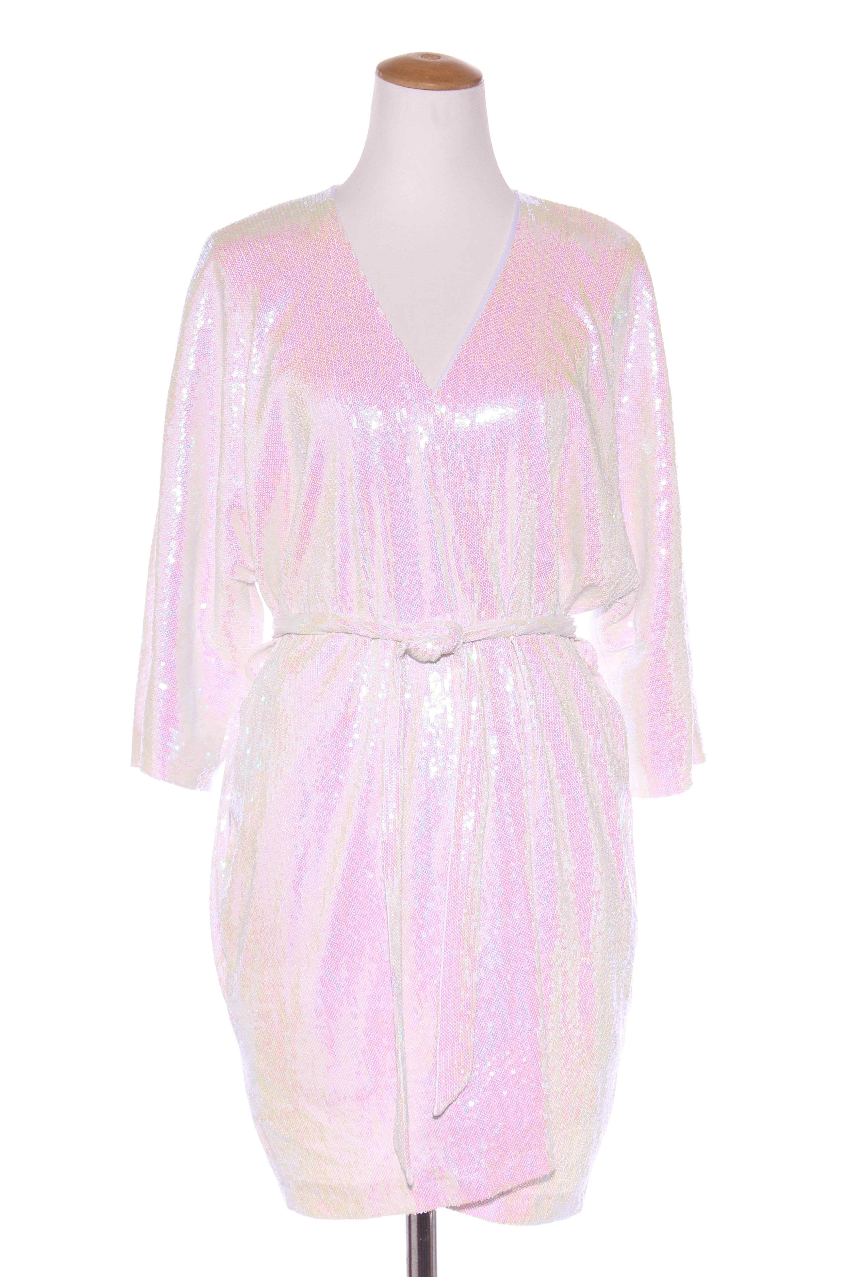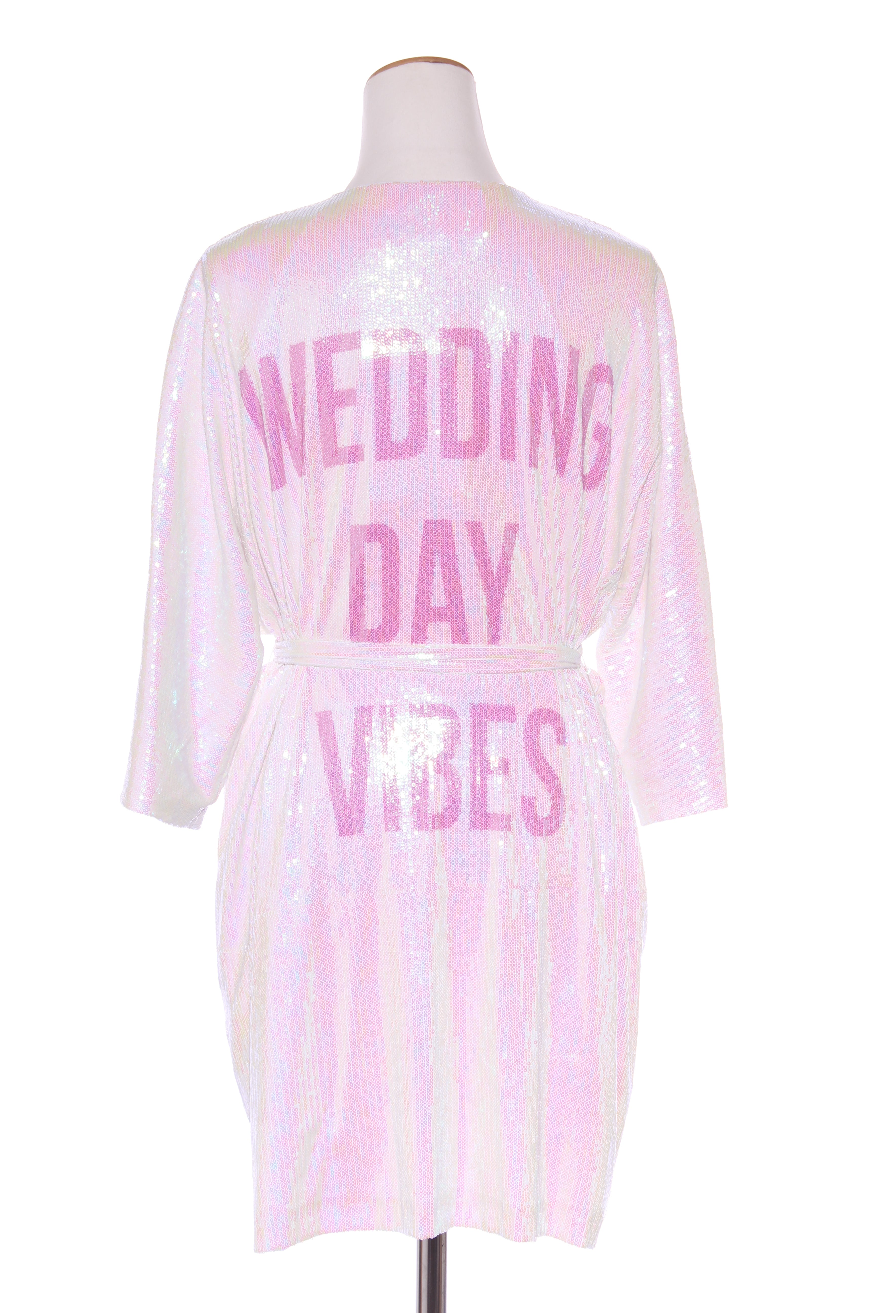 SIZE ON TAG: LFITS LIKE: 14COLOUR: Pink, pearly whiteFABRIC: PolyesterCONDITION: Brand new with tagMEASUREMENTS:BUST: 77cms WAIST: Free LENGTH: 93cms NOTES: Open front. Comes with matching belt. ...