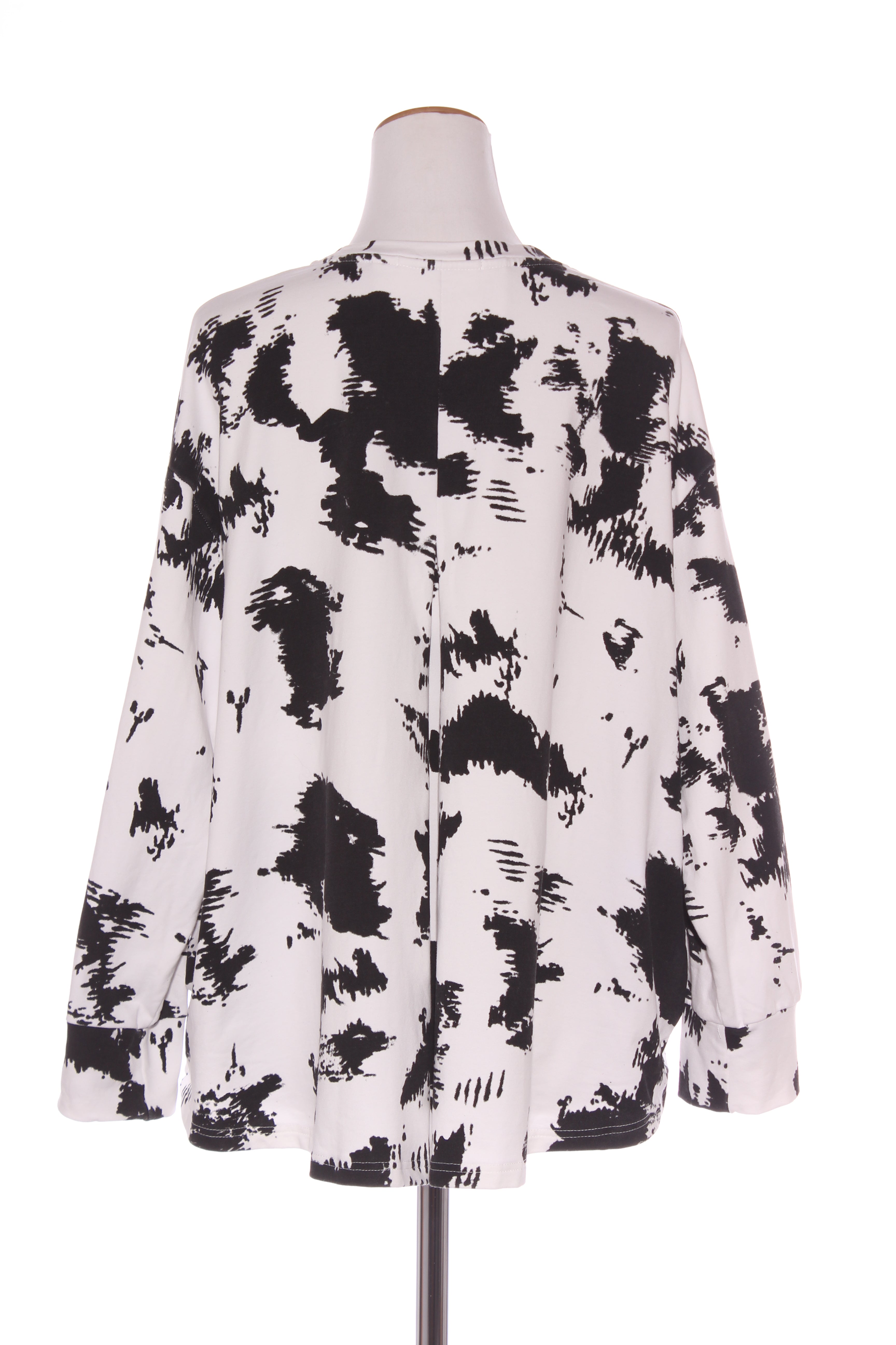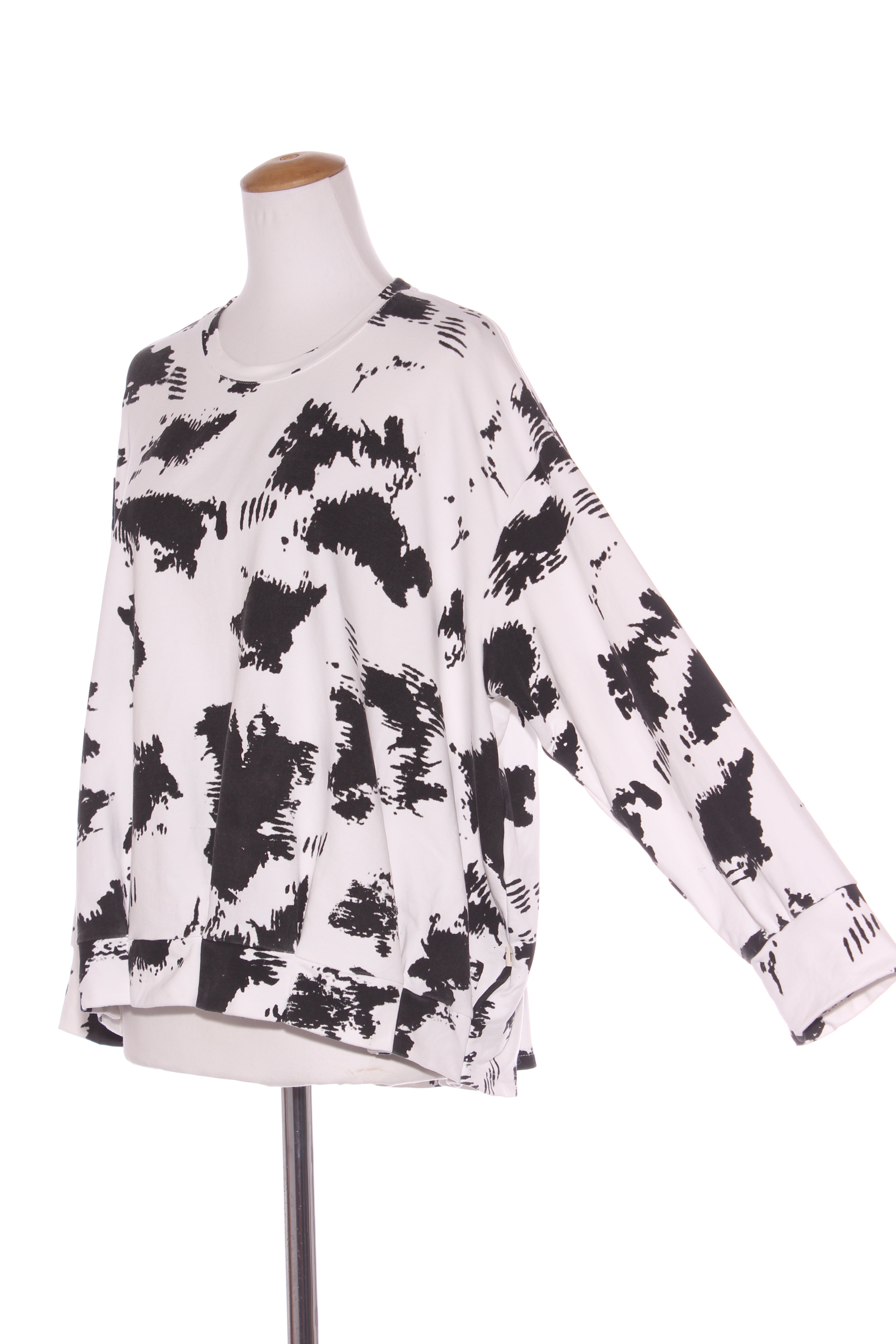 SIZE ON TAG: LFITS LIKE: 14COLOUR: White, blackFABRIC: 97% cotton, 3% elastaneCONDITION: Excellent prelovedMEASUREMENTS:BUST: 74cms WAIST: 82cms LENGTH: 63-74cms NOTES: Pleated front hem detail with scooped...