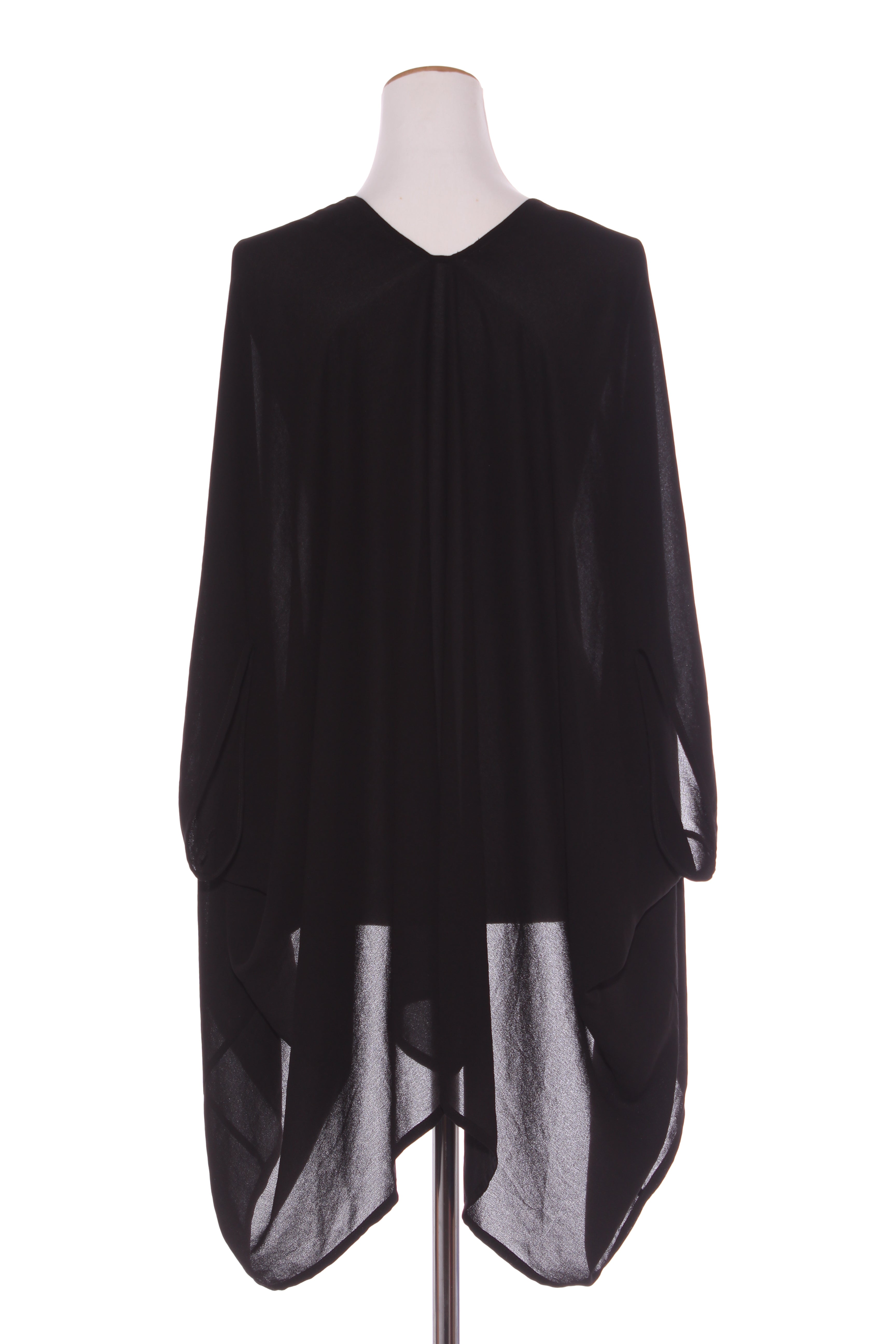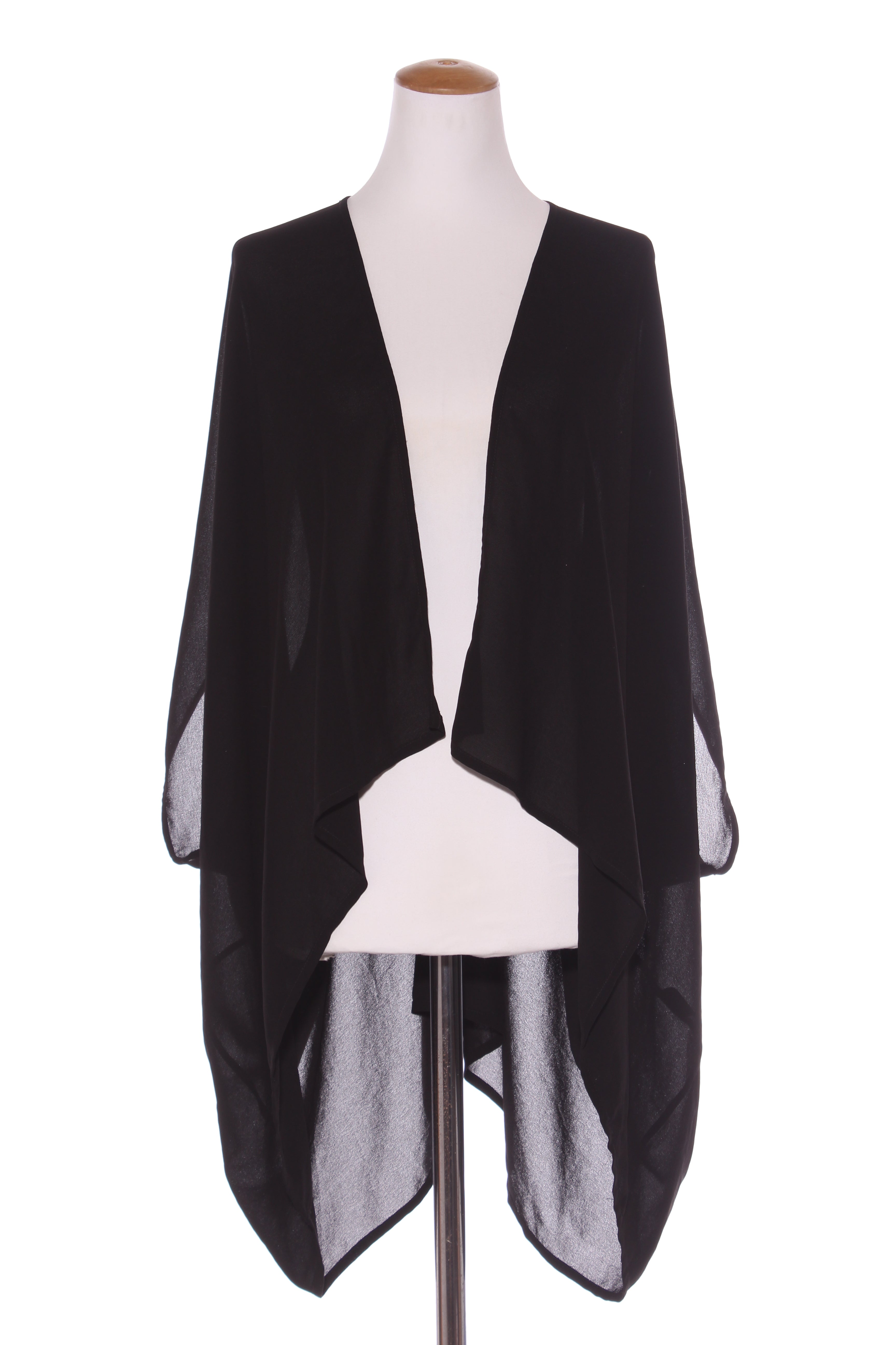 SIZE ON TAG: One sizeFITS LIKE: 8-16COLOUR: BlackFABRIC: PolyesterCONDITION: Excellent prelovedMEASUREMENTS:BUST: Free WAIST: Free LENGTH: 81-105cms NOTES: Open front.
