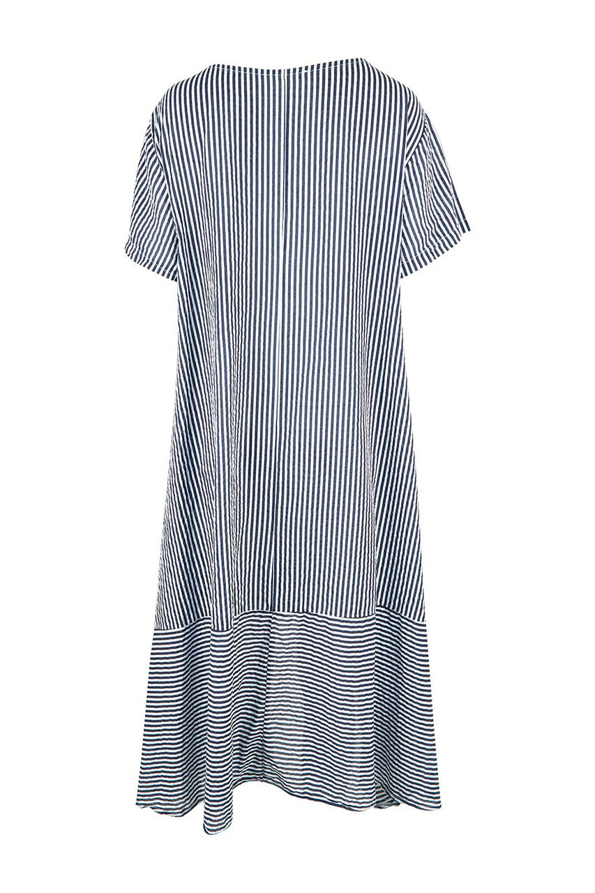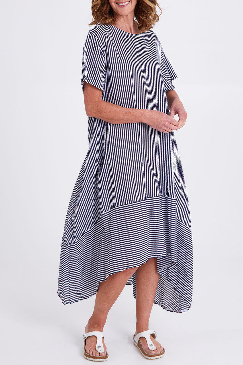SIZE ON TAG: LFITS LIKE: 14COLOUR: Dark navy, whiteFABRIC: CottonCONDITION: Brand new with tagMEASUREMENTS:BUST: 57cms WAIST: 60cms LENGTH: 108-127cmsNOTES: Picture yourself gazing out to sea from...