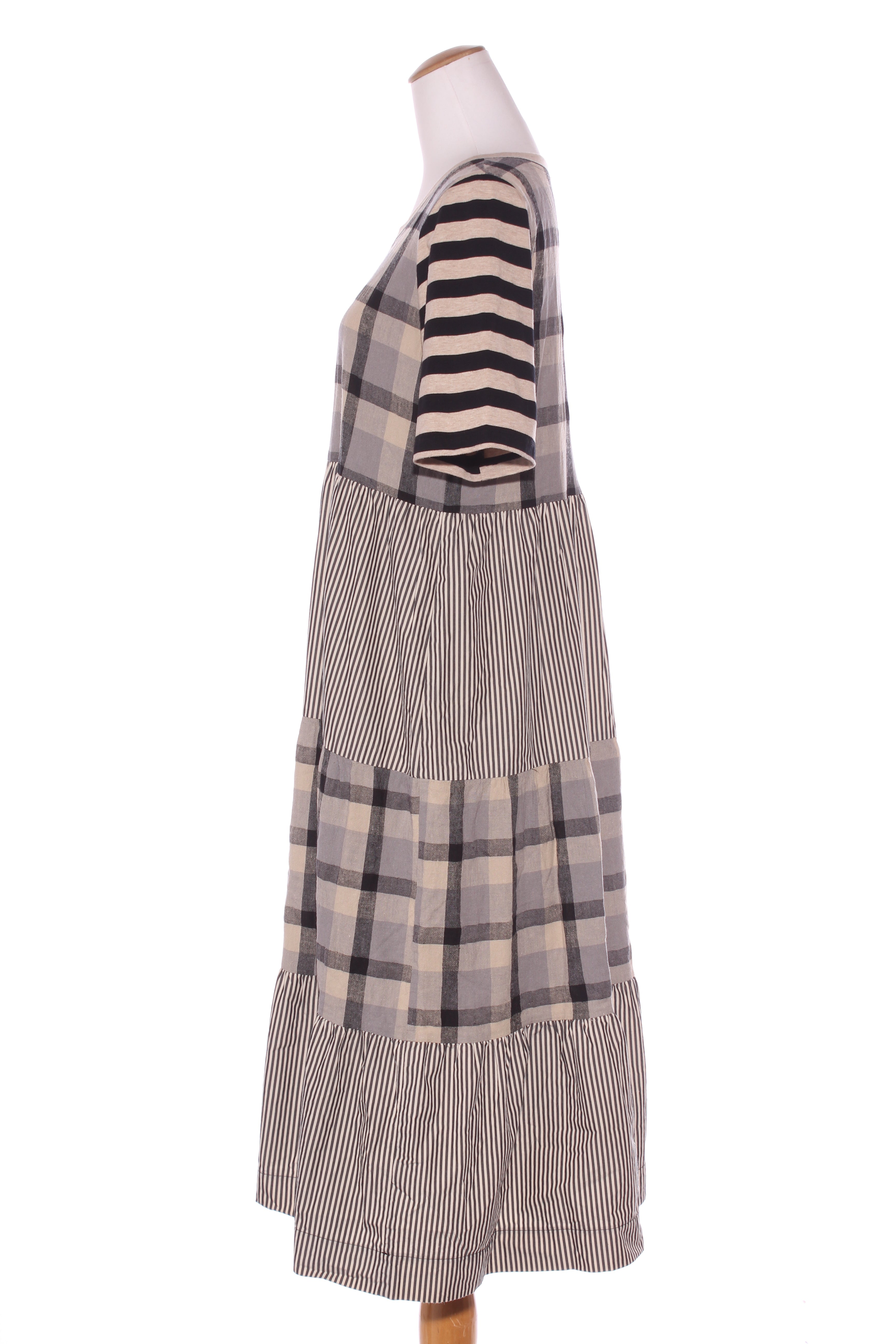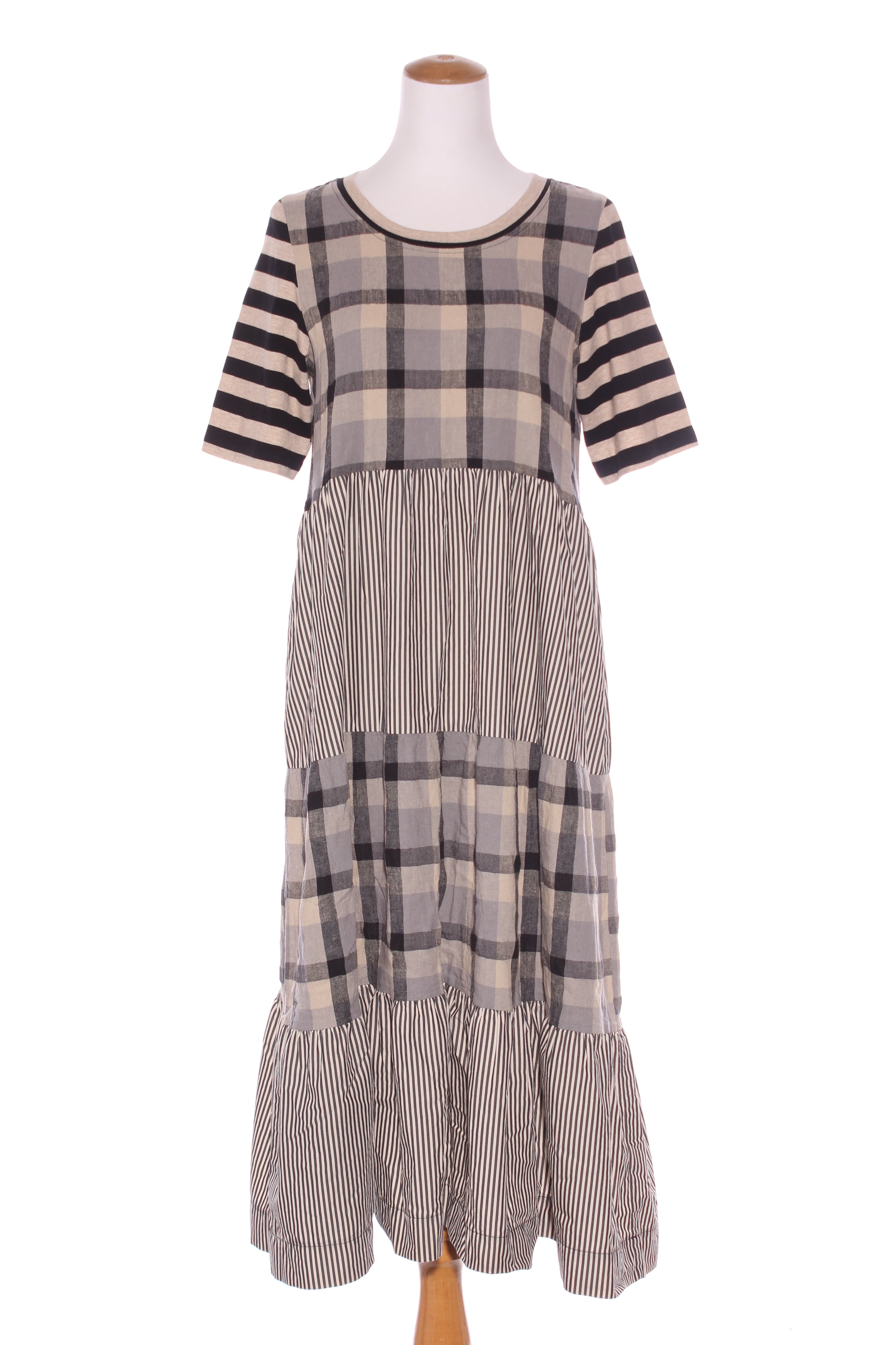 SIZE ON TAG: XSFITS LIKE: 8-10COLOUR: MultiFABRIC: Organic cottonCONDITION: Excellent prelovedMEASUREMENTS:BUST: 45cms WAIST: 43cms LENGTH: 86cmsNOTES: Pull over style. Fabric has stretch. Side pockets.
