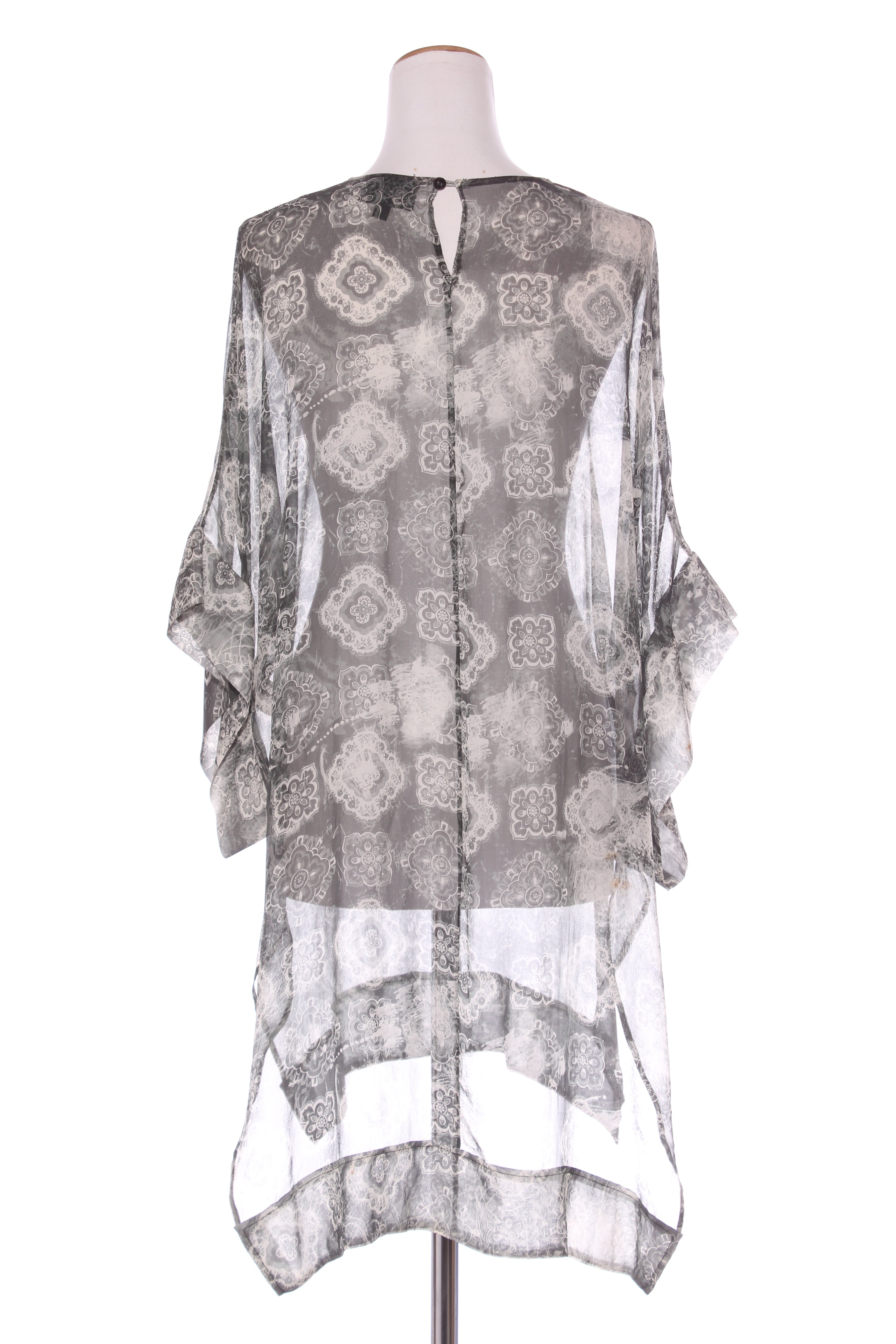 SIZE ON TAG: 6FITS LIKE: 16-20COLOUR: Green, whiteFABRIC: SilkCONDITION: Good preloved, has a few light pulls in the fabric - not overly noticeable with the printMEASUREMENTS:BUST: 68cms WAIST:...