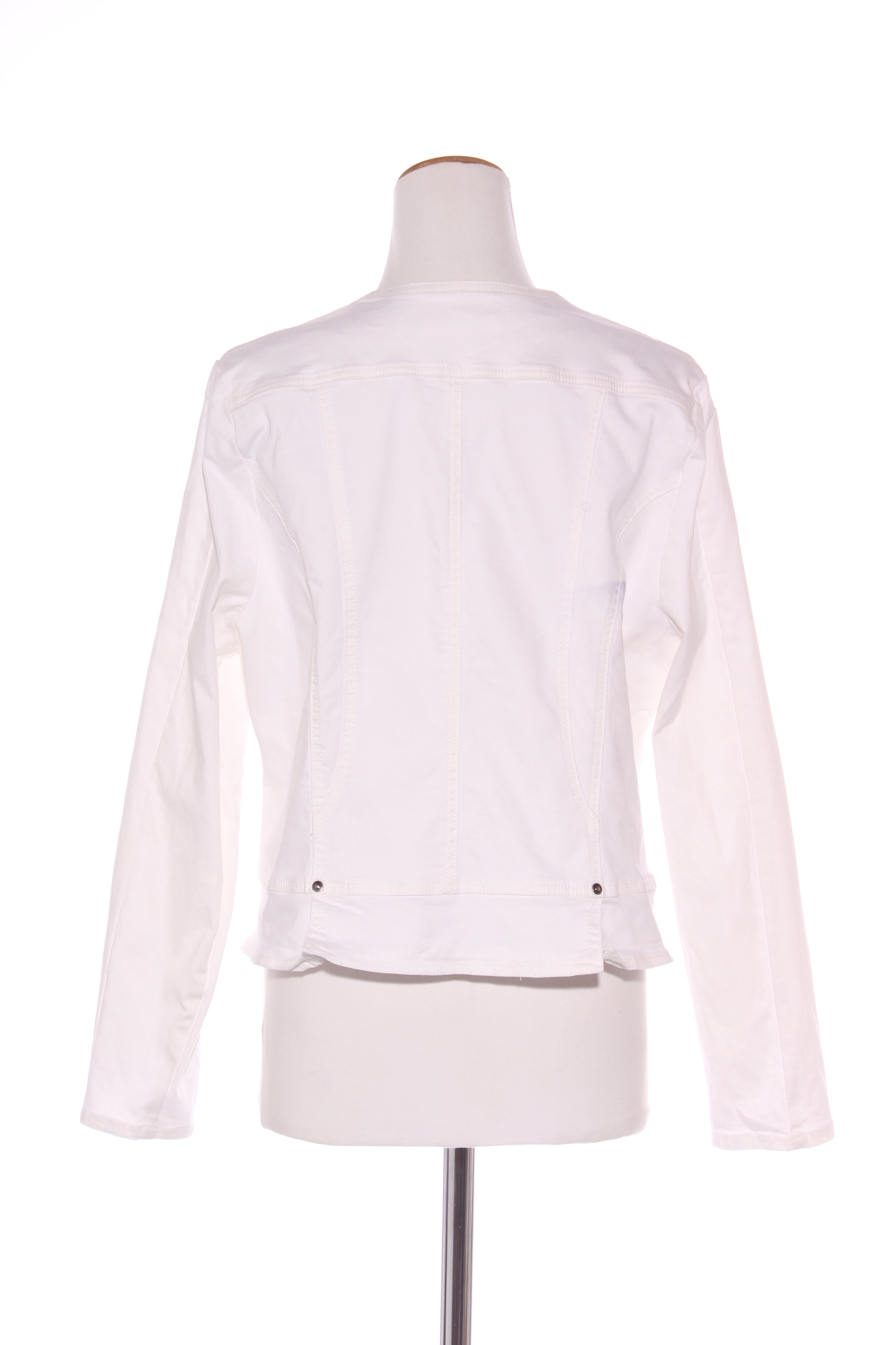 SIZE ON TAG: Tag removedFITS LIKE: 14COLOUR: WhiteFABRIC: 97% cotton, 3% elastaneCONDITION: Very good prelovedMEASUREMENTS:BUST: 55cms WAIST: 50cms LENGTH: 56cms NOTES: Zip up front. Fabric has...