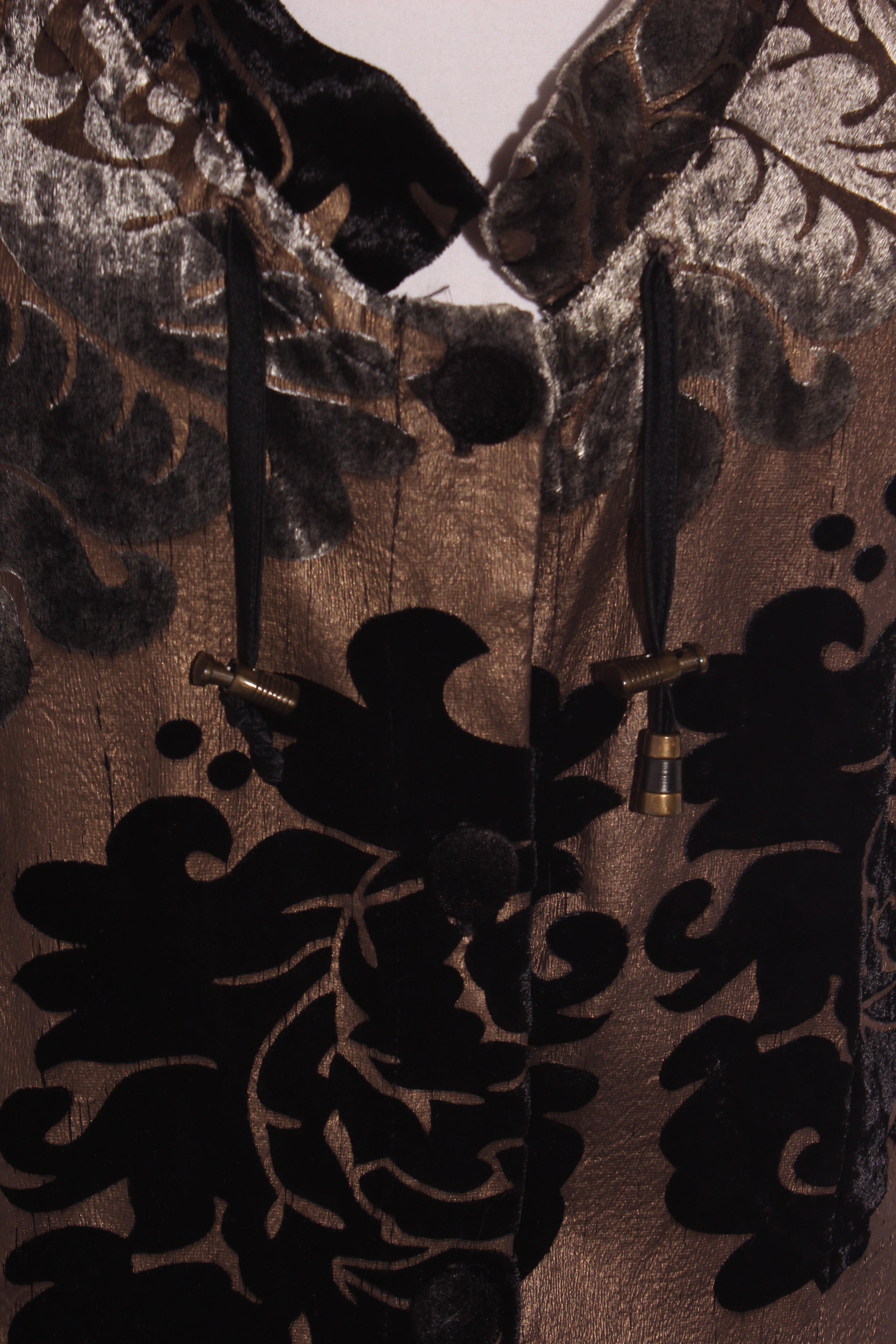 SIZE ON TAG: 10FITS LIKE: N/ACOLOUR: Black, gold, greyFABRIC: Not stated, polyesterCONDITION: Very good vintage prelovedMEASUREMENTS:BUST: 51cms WAIST: 45cms LENGTH: 103cms NOTES: Button up front. Drawstring...