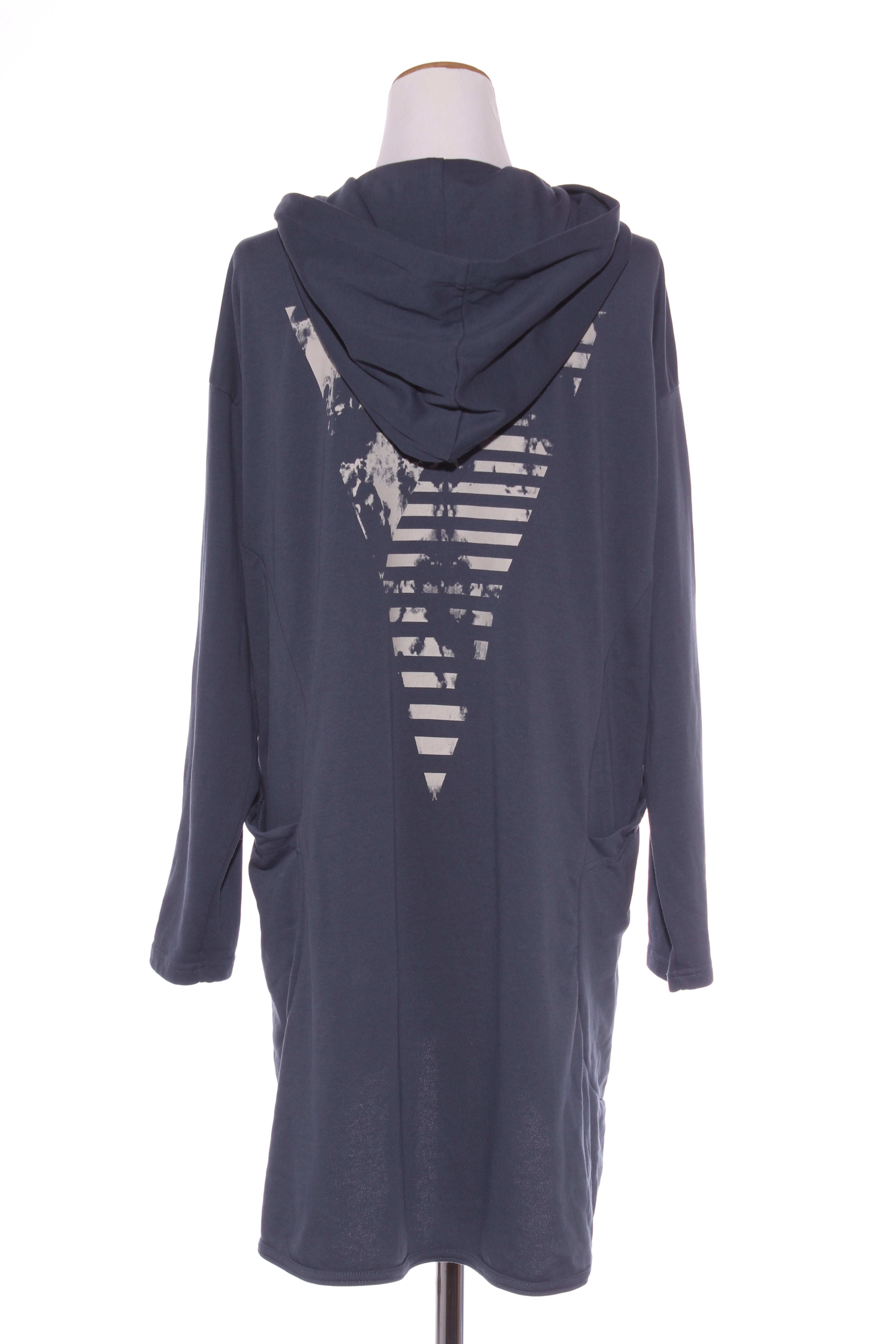 SIZE ON TAG: 18FITS LIKE: N/ACOLOUR: Black, grey, whiteFABRIC: Viscose, rayonCONDITION: Very good prelovedMEASUREMENTS:BUST: 64cms WAIST: 64cms LENGTH: 63cms NOTES: Zip up front. Elasticated sleeve ends...