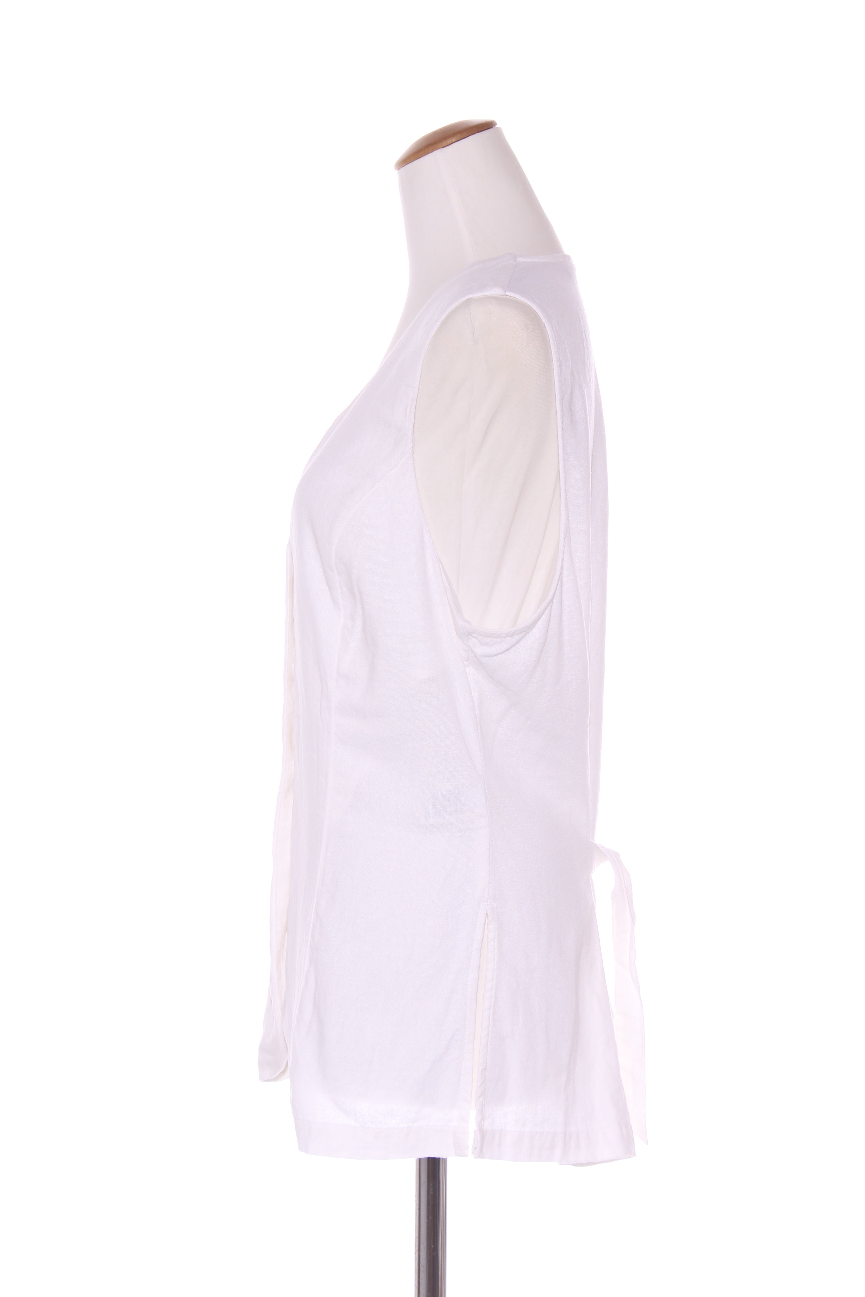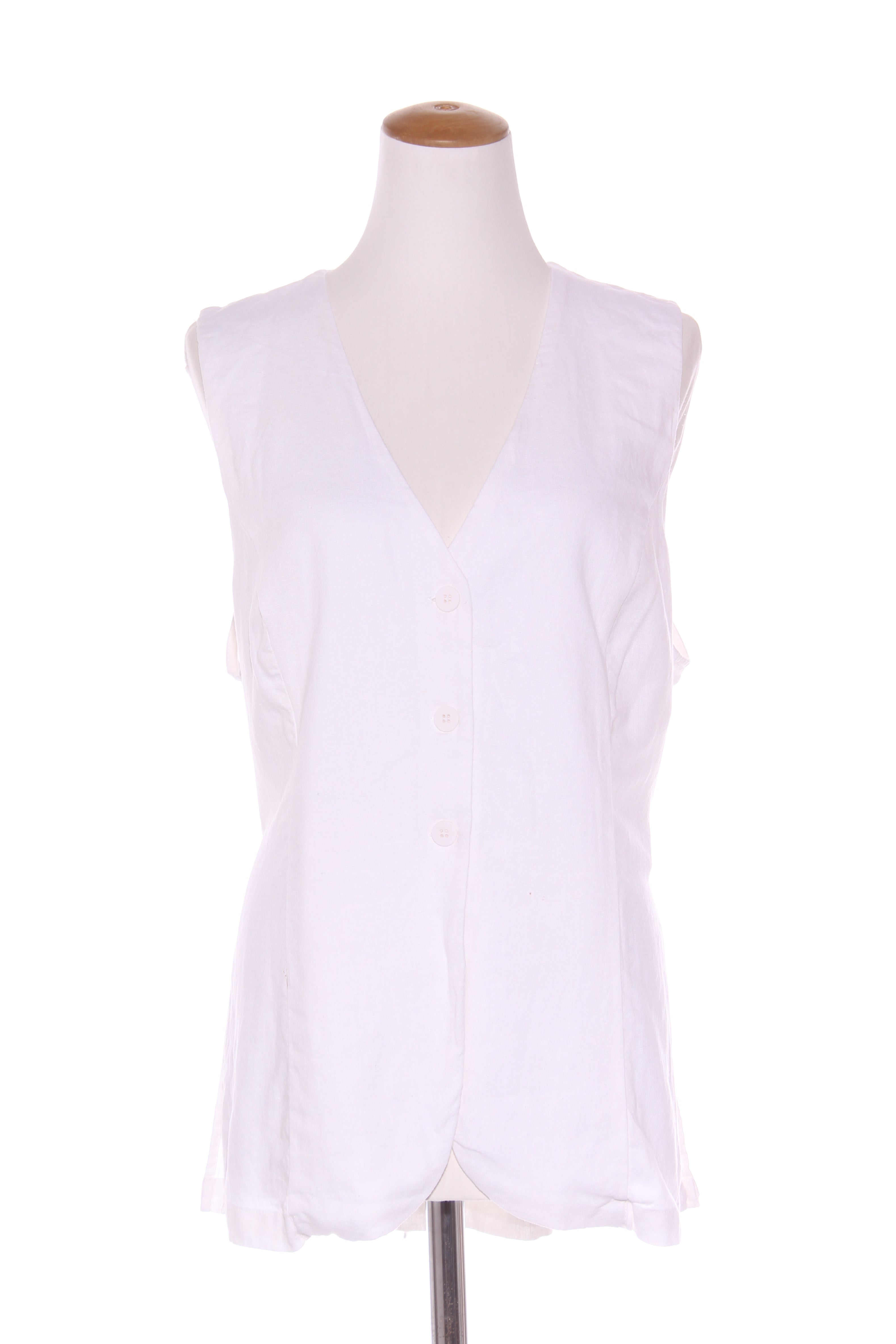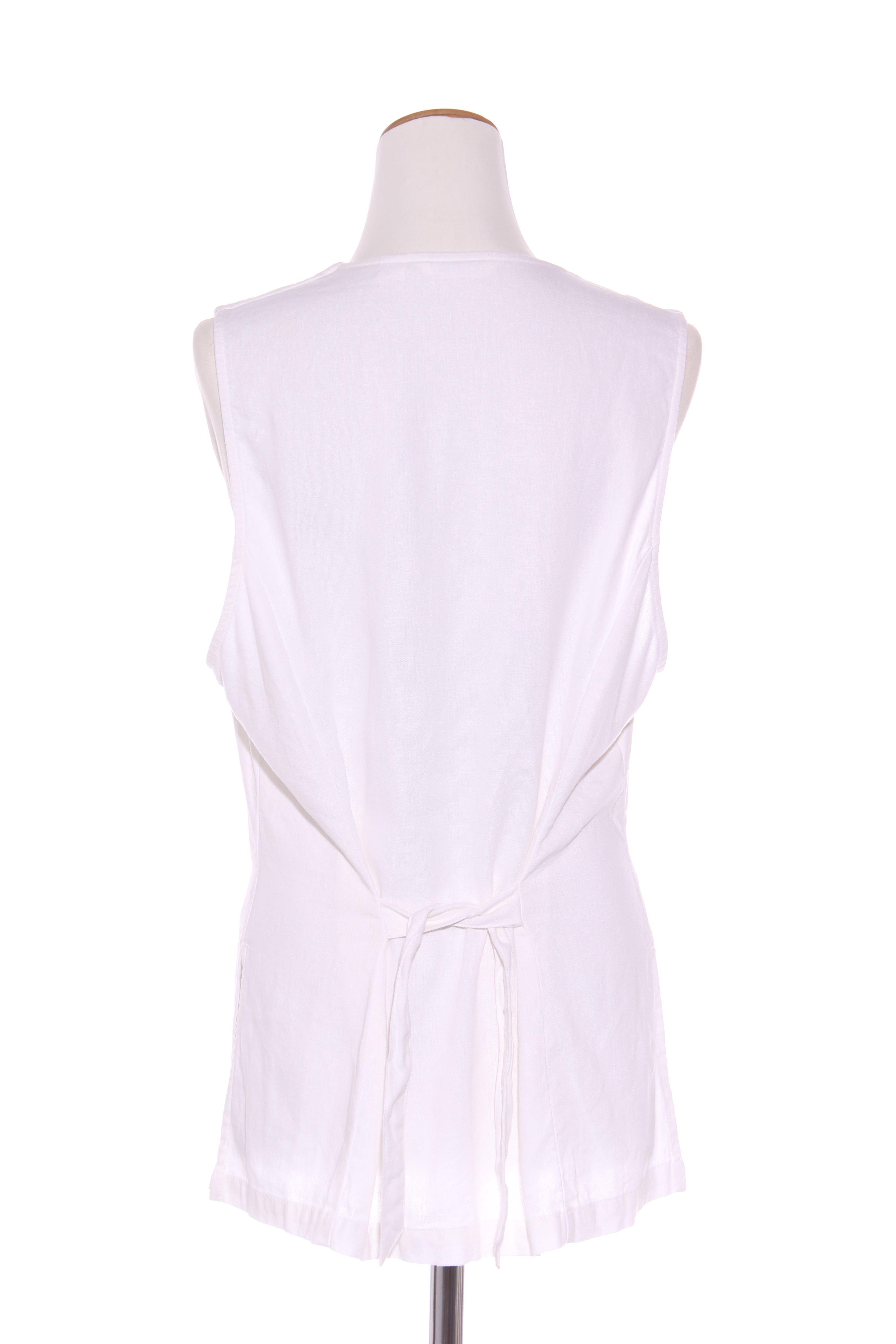 SIZE ON TAG: 16FITS LIKE: N/ACOLOUR: WhiteFABRIC: 55% European flax linen, 45% viscoseCONDITION: Excellent prelovedMEASUREMENTS:BUST: 55cms WAIST: 49cms LENGTH: 73cms NOTES: Button up front. Back side...