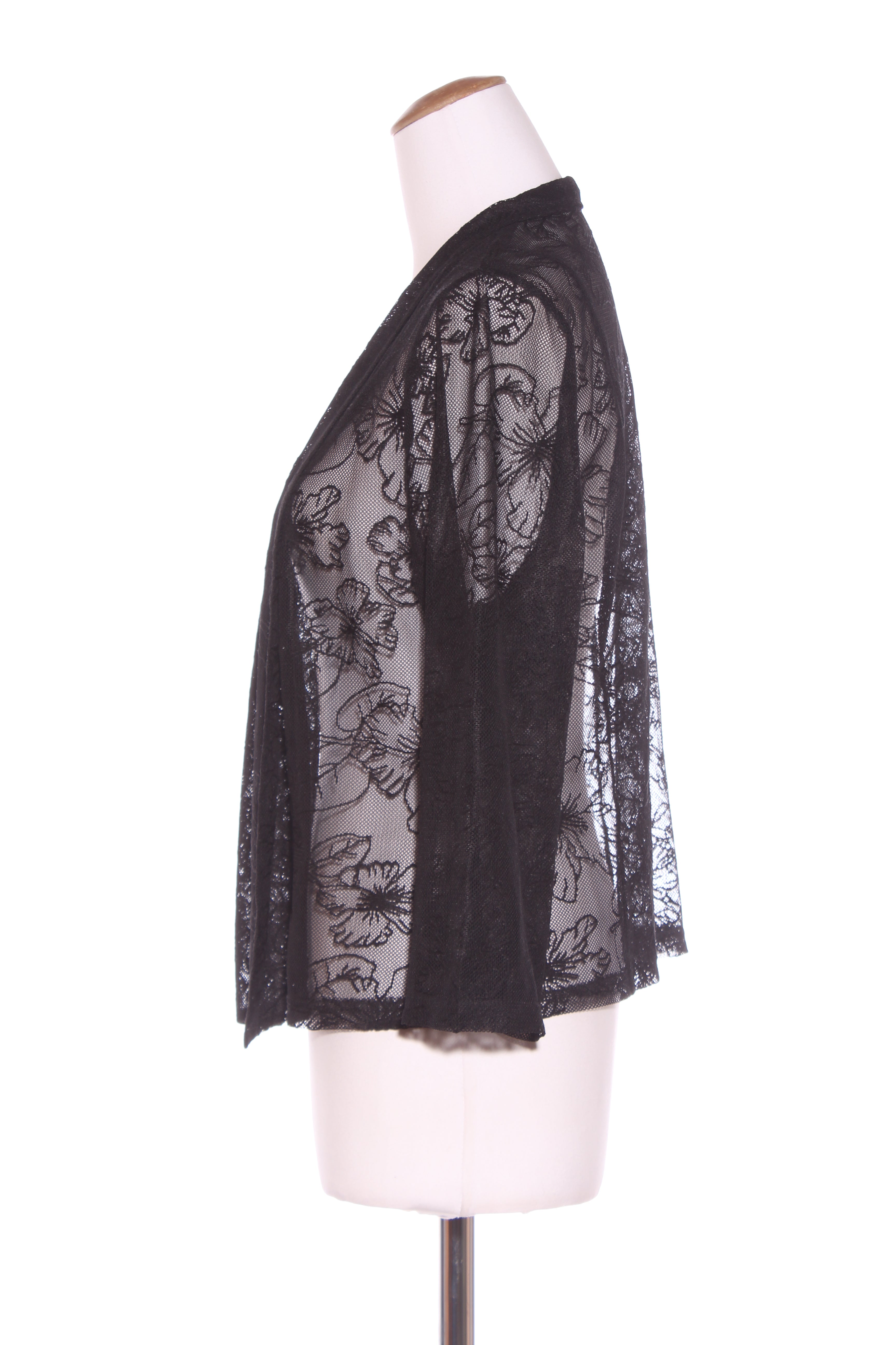 SIZE ON TAG: 22FITS LIKE: 18-22COLOUR: Black, blue, multiFABRIC: ViscoseCONDITION: Excellent prelovedMEASUREMENTS:BUST: 65cms WAIST: Free LENGTH: 65cmsNOTES: Open front no fastening. Fully lined