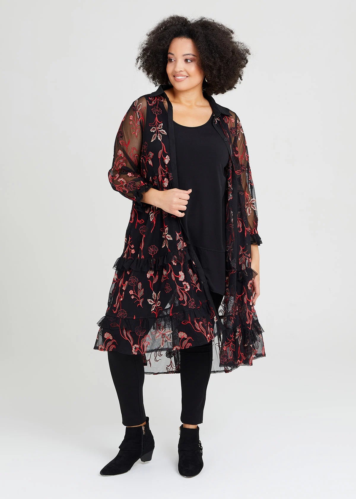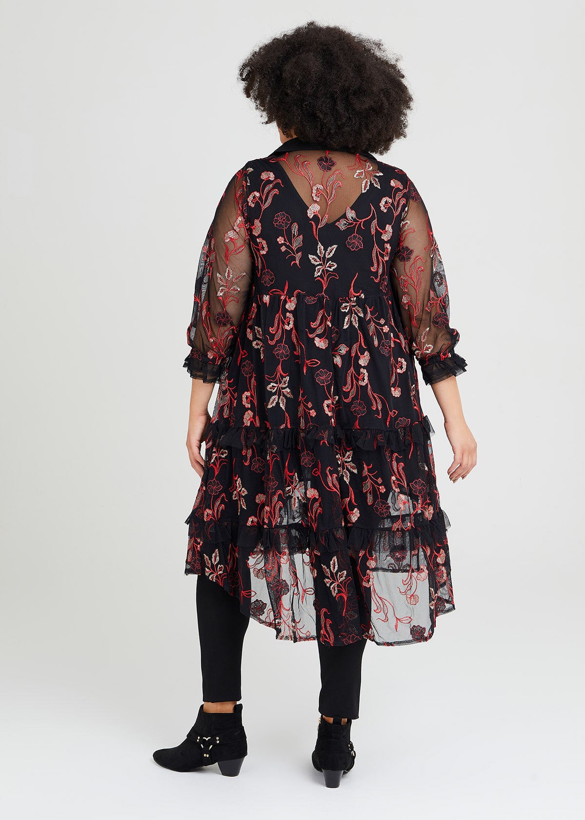 SIZE ON TAG: 22FITS LIKE: 18-22COLOUR: Black, blue, multiFABRIC: ViscoseCONDITION: Excellent prelovedMEASUREMENTS:BUST: 65cms WAIST: Free LENGTH: 65cmsNOTES: Open front no fastening. Fully lined
