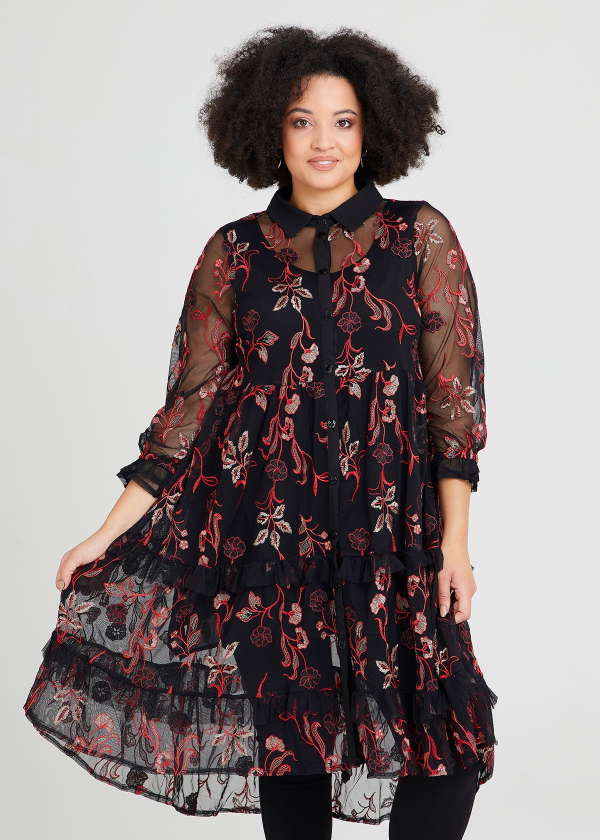SIZE ON TAG: 16-18FITS LIKE: N/ACOLOUR: Black, red, rose goldFABRIC: 95% polyester, 5% nylon, Plain 1 - nylon, Plain 2 -polyester CONDITION: Excellent prelovedMEASUREMENTS:BUST: 64cms WAIST: 64cms ...