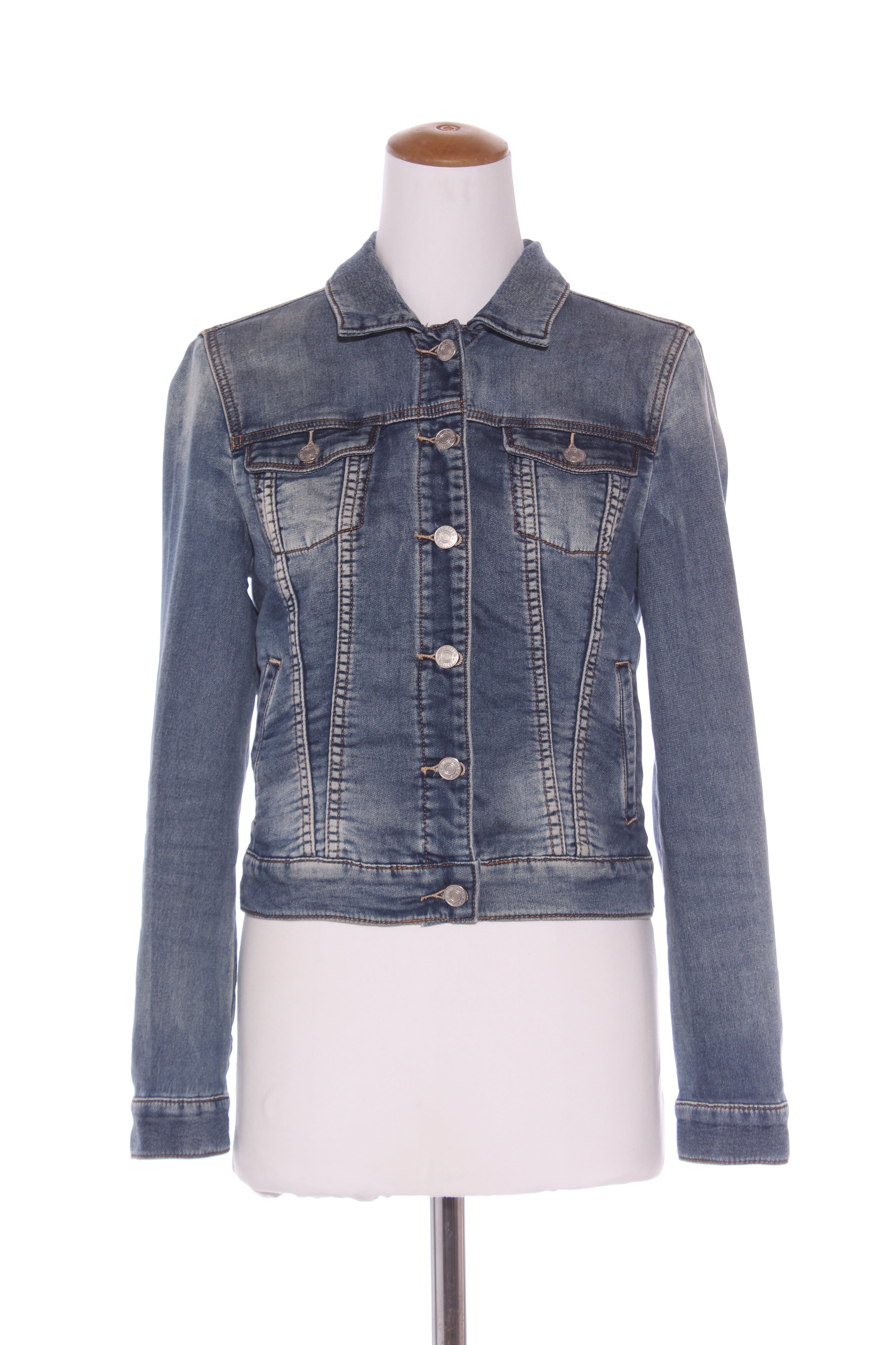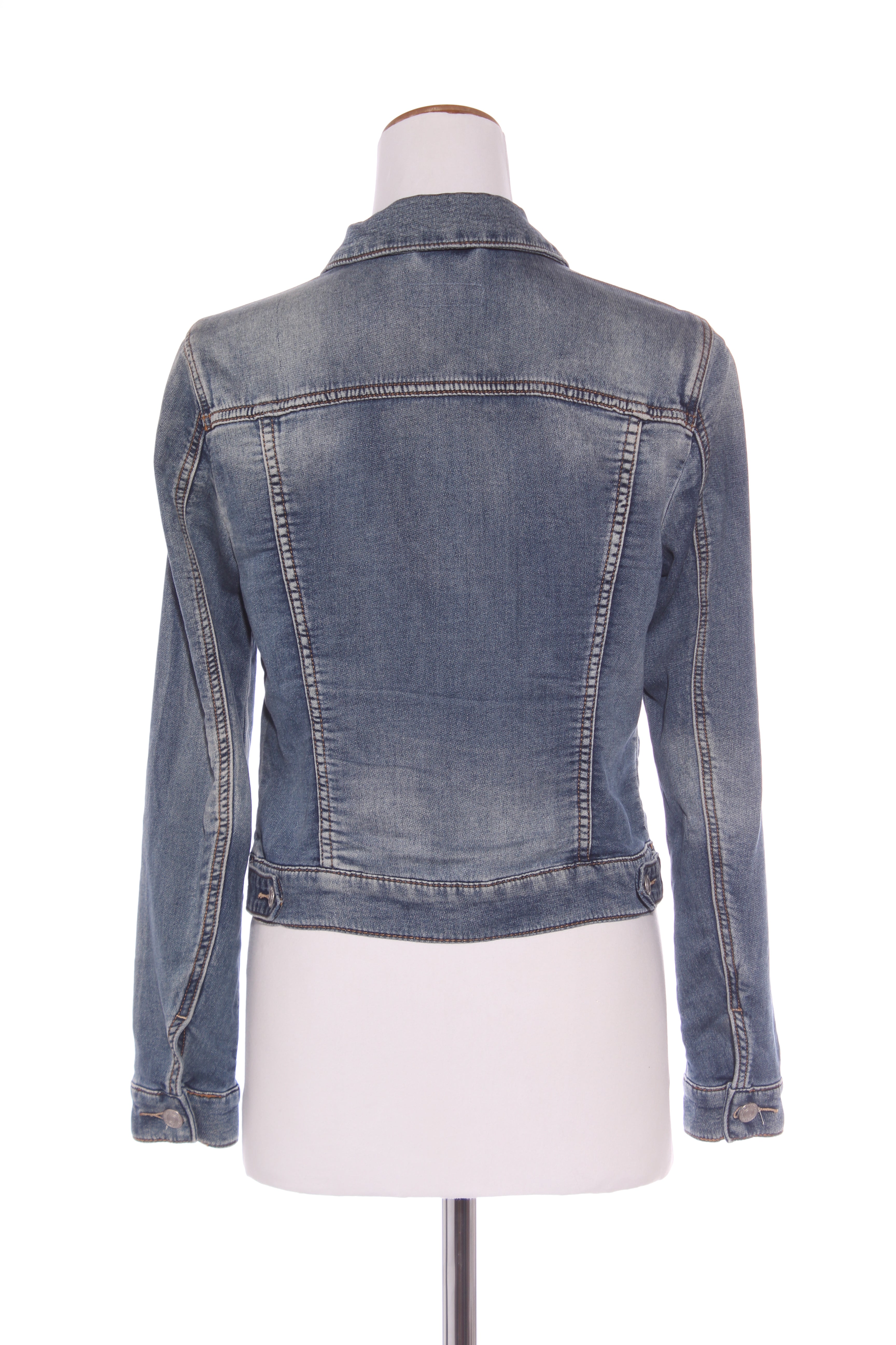 SIZE ON TAG: 10FITS LIKE: N/ACOLOUR: BlueFABRIC: 99% cotton, 1% elastaneCONDITION: Excellent prelovedMEASUREMENTS:BUST: 47cms WAIST: 43cms LENGTH: 50cms NOTES: Button up front and sleeve ends. Front...