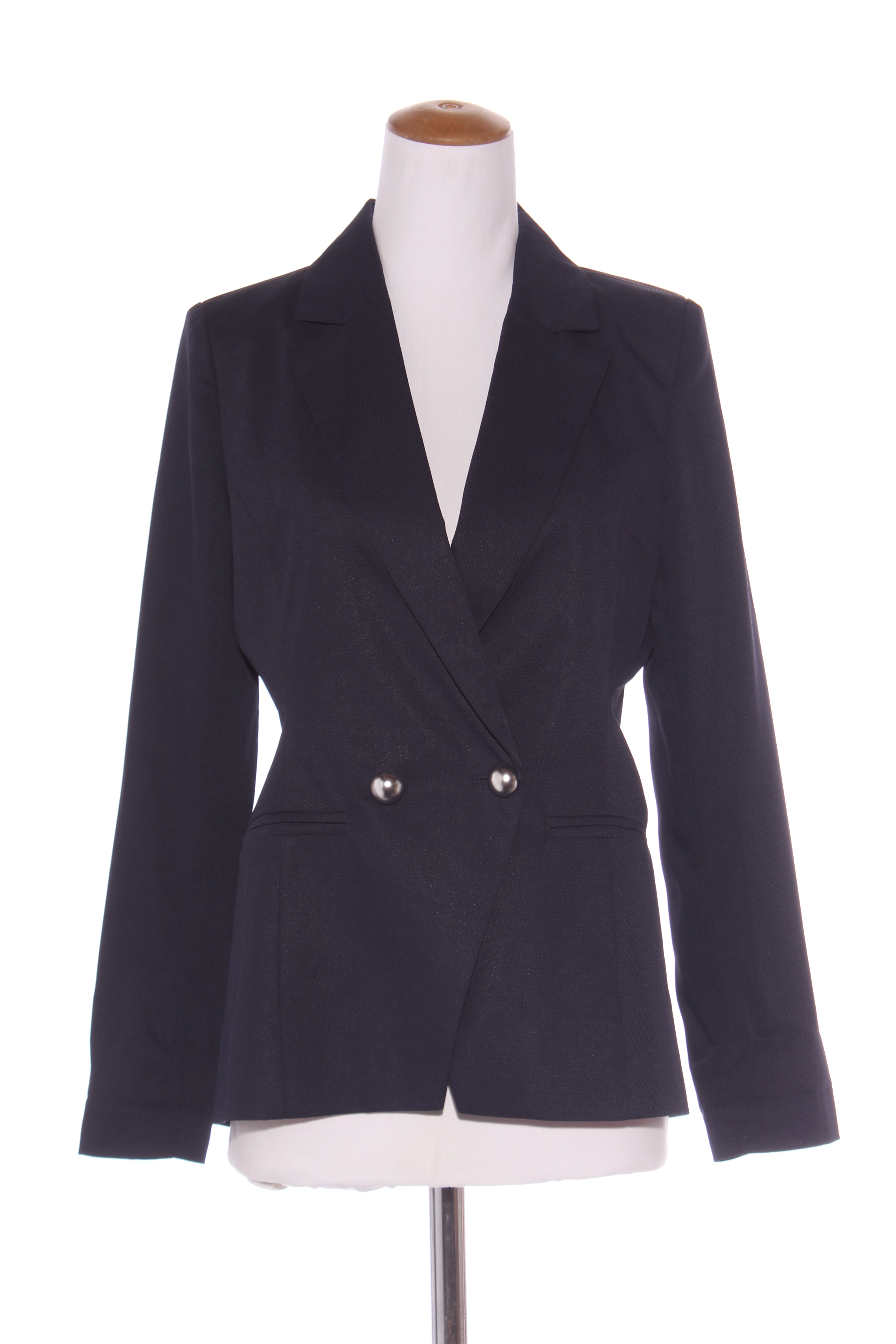 SIZE ON TAG: 10FITS LIKE: N/ACOLOUR: Navy blueFABRIC: PolyesterCONDITION: Excellent prelovedMEASUREMENTS:BUST: 47cms WAIST: 44cms LENGTH: 65-69cms NOTES: Up your style game with the jaw-dropping Jordanna Blazer...