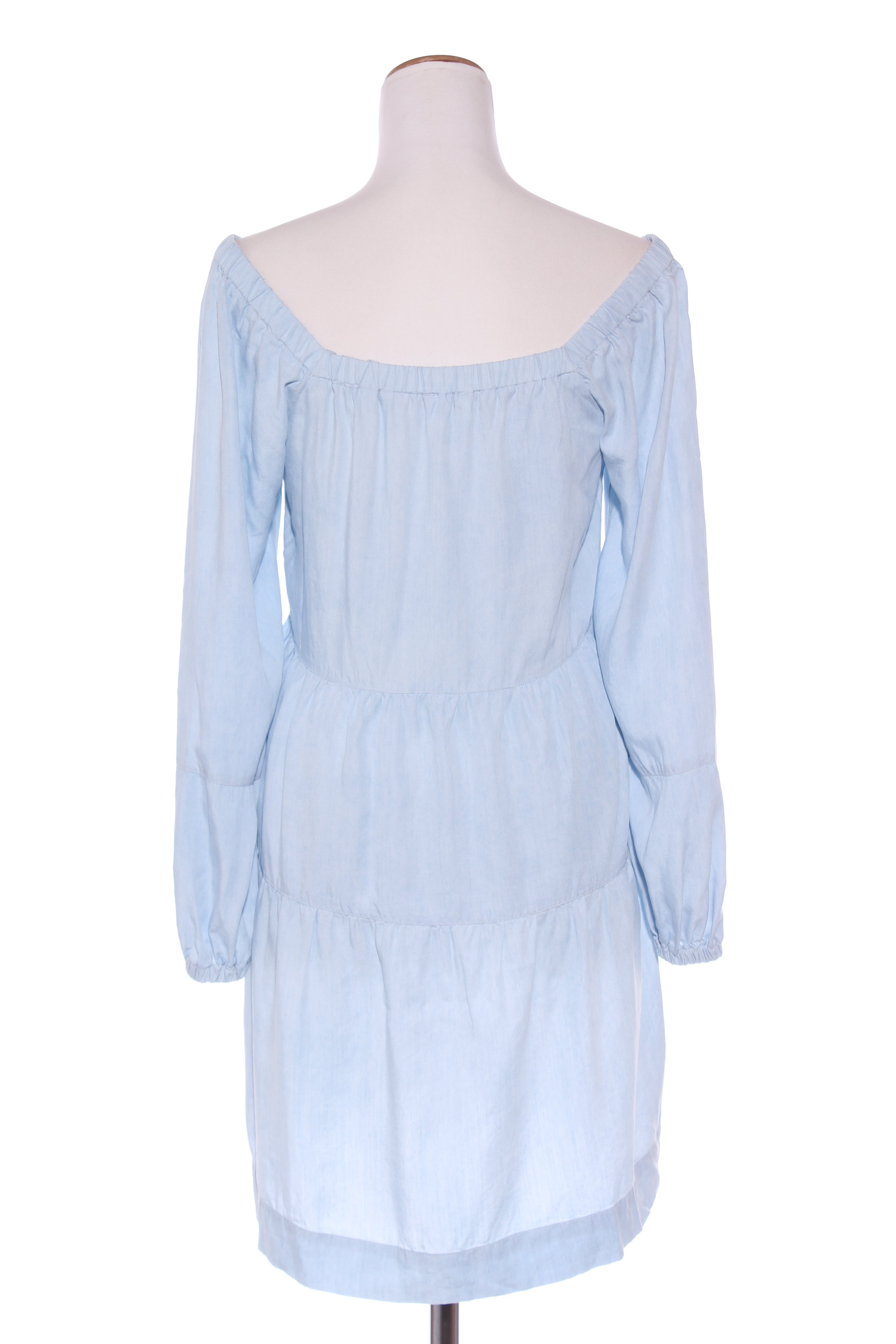 SIZE ON TAG: 6FITS LIKE: 6-8COLOUR: BlueFABRIC: LyocellCONDITION: Excellent prelovedMEASUREMENTS:BUST: 46cms WAIST: 47cms LENGTH: 89cmsNOTES: Pull over style. Elasticated neckline and sleeve ends.