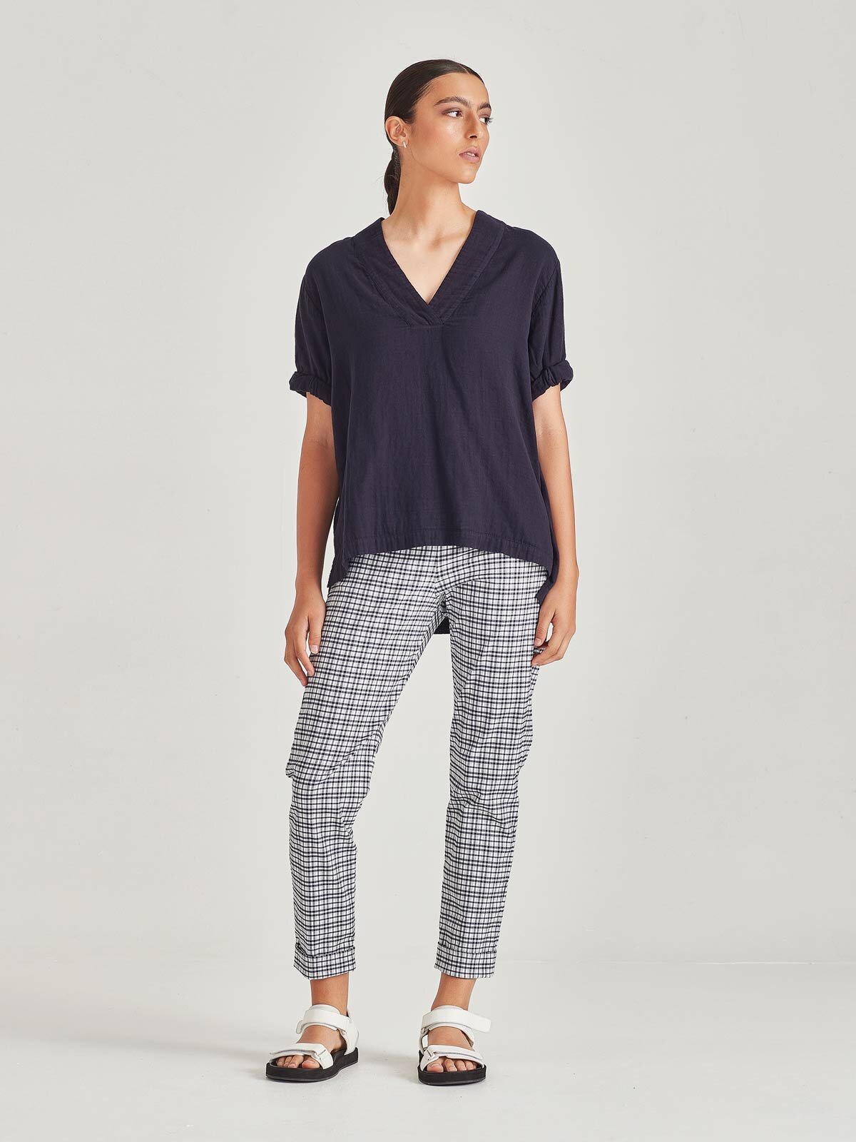 SIZE ON TAG: Tag removedFITS LIKE: 14COLOUR: Blue, black, whiteFABRIC: CottonCONDITION: Like newMEASUREMENTS:BUST: 61cms WAIST: 55cms LENGTH: 64cmsNOTES: Modern and fresh, the Suki Top showcases an original...