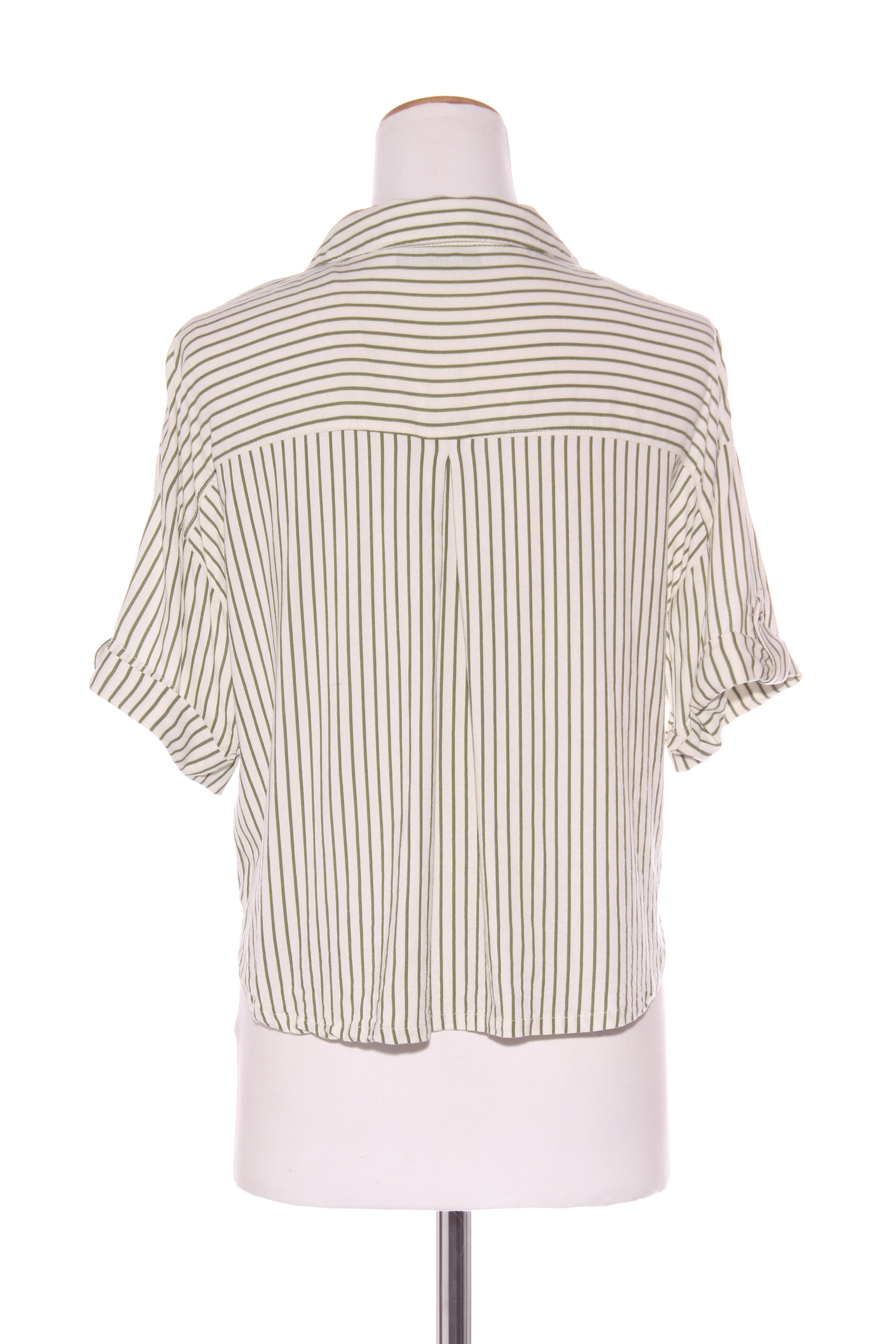 SIZE ON TAG: MFITS LIKE: 12COLOUR: Green, whiteFABRIC: 80% viscose, 20% linenCONDITION: Excellent prelovedMEASUREMENTS:BUST: 52cms WAIST: 56cms LENGTH: 50-56cmsNOTES: Button up front. Front pockets.