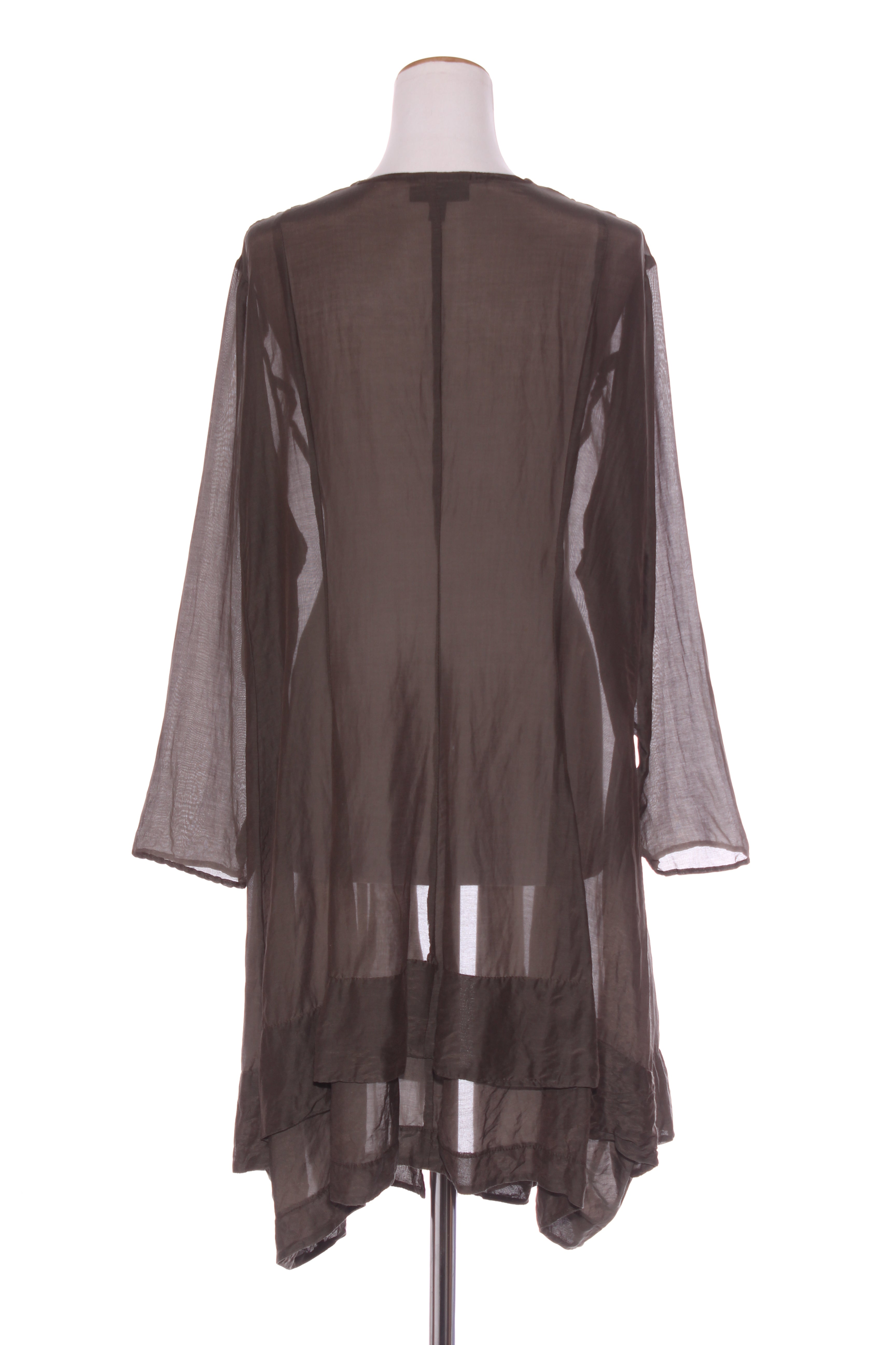 SIZE ON TAG: MFITS LIKE: 18-20COLOUR: Dark greenFABRIC: ViscoseCONDITION: Like newMEASUREMENTS:BUST: 70cms WAIST: Free LENGTH: 97-107cmsNOTES: Made in NZ. Really nice light fabric (looks like a...