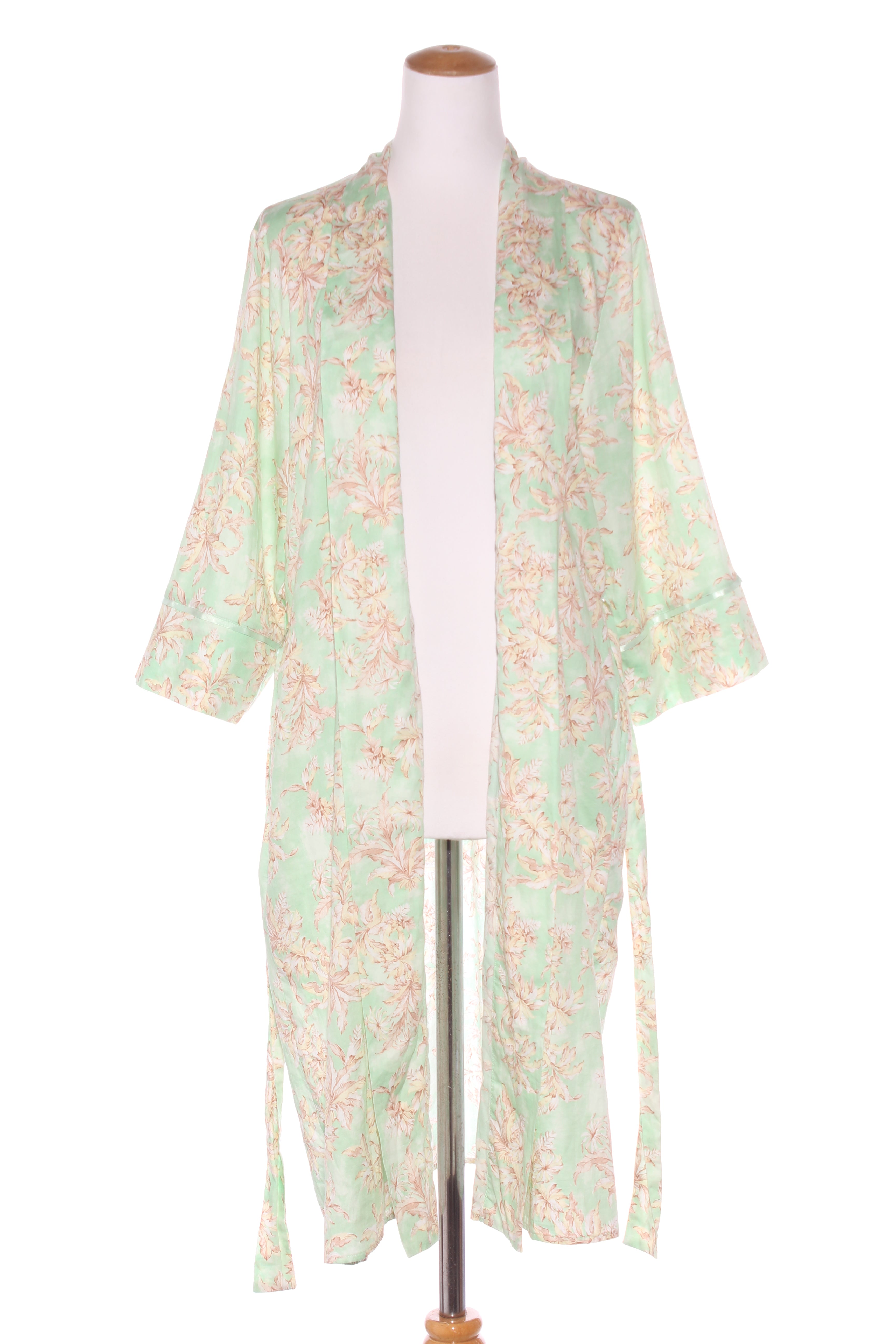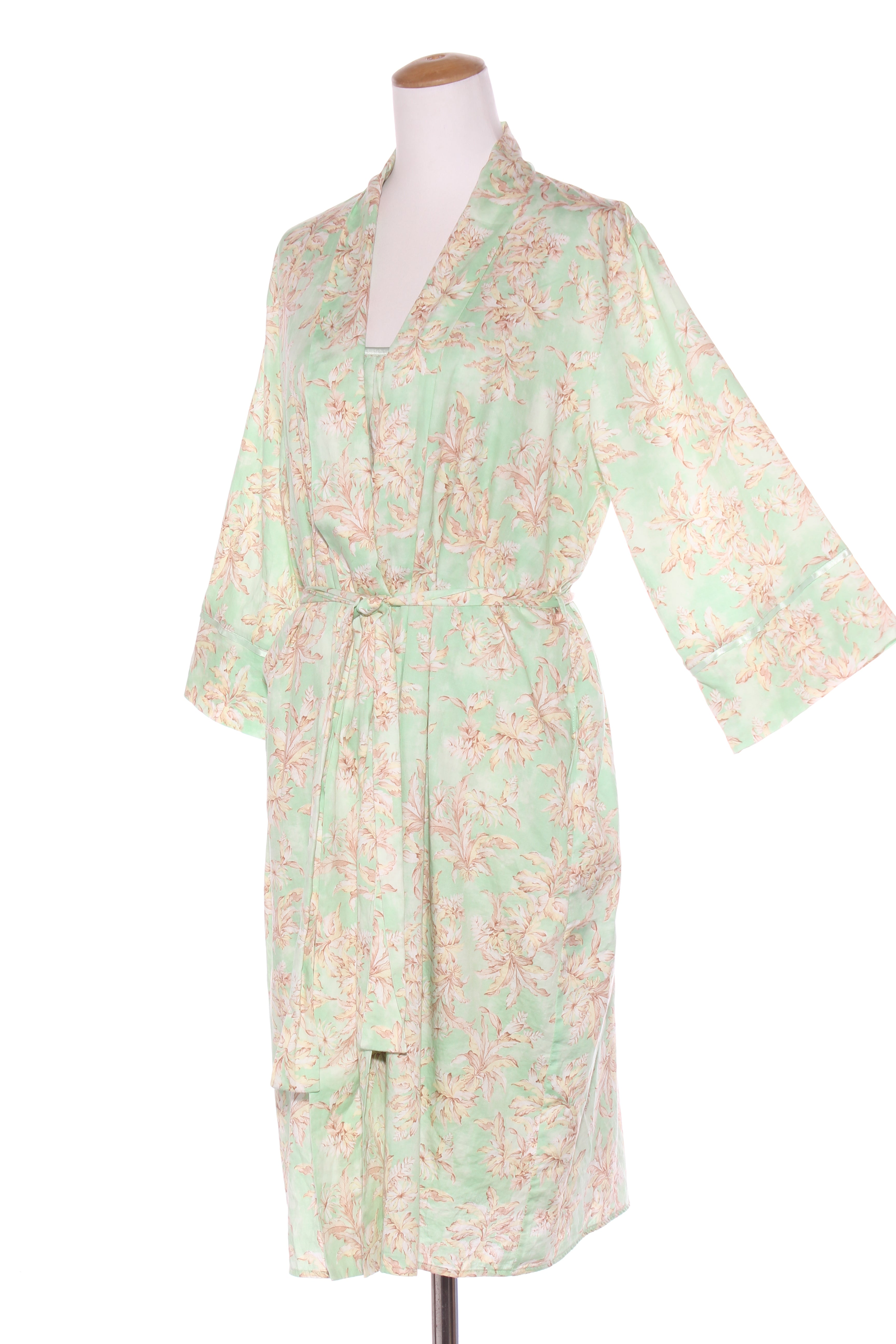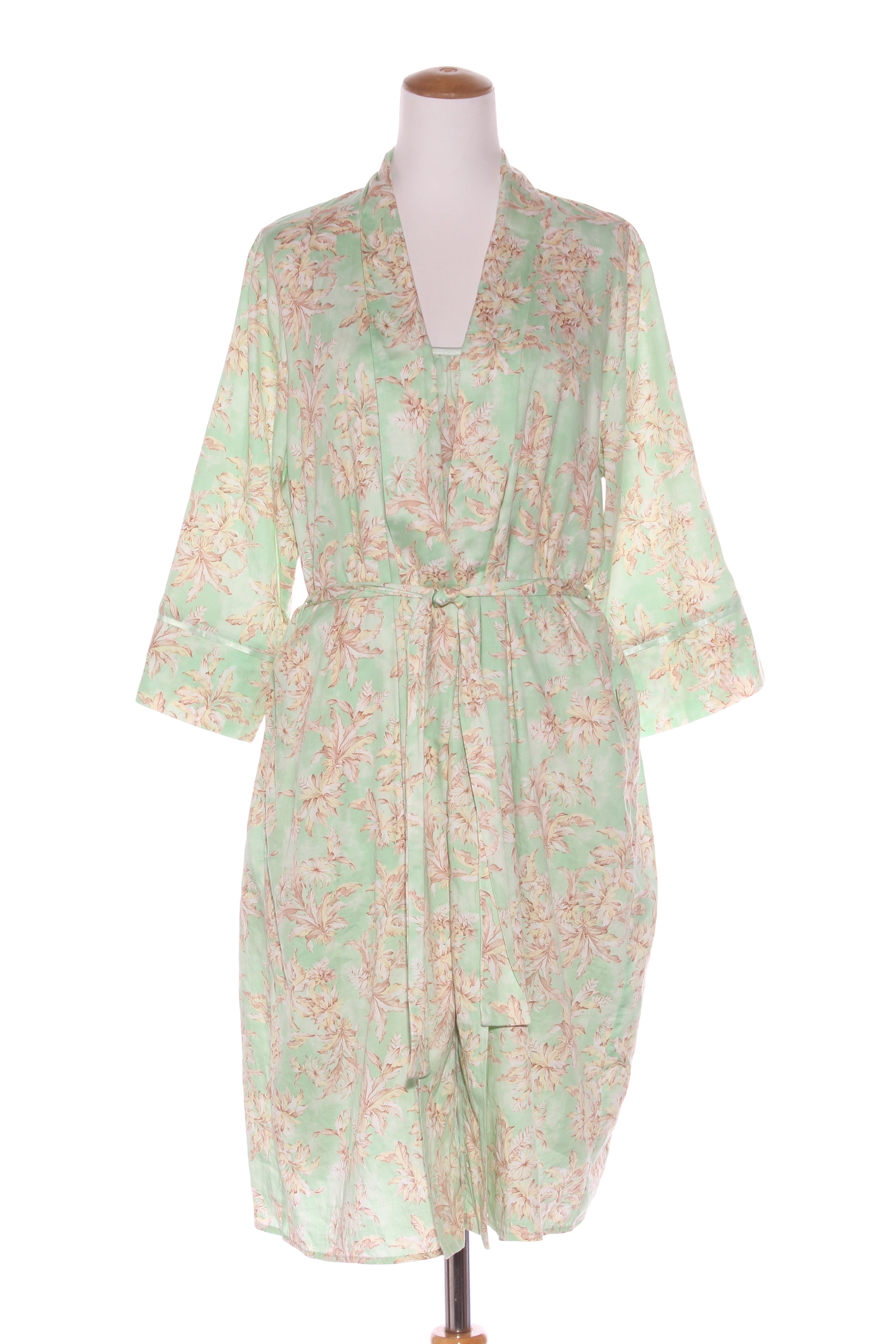 SIZE ON TAG: XLFITS LIKE: 16COLOUR: Mint green, multiFABRIC: CottonCONDITION: Excellent prelovedSLIP MEASUREMENTS:BUST: 58cms WAIST: 73cms LENGTH: 99cmsROBE MEASUREMENTS:BUST: 62cms WAIST: Free LENGTH:...