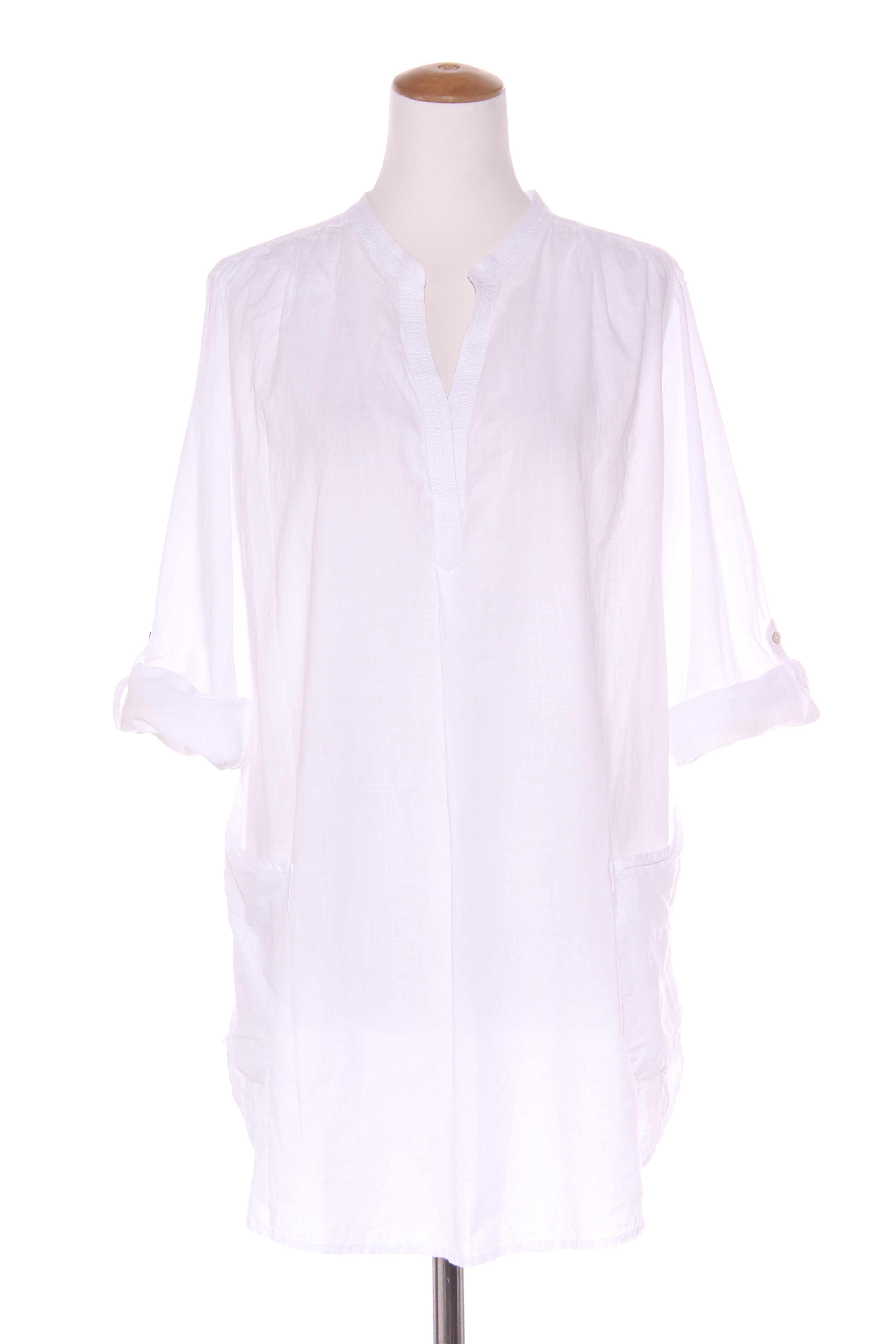 SIZE ON TAG: XLFITS LIKE: 16COLOUR: WhiteFABRIC: CottonCONDITION: Excellent prelovedMEASUREMENTS:BUST: 65cms WAIST: 67cms LENGTH: 86cmsNOTES: - Light and breathable cotton; woven textured- Relaxed fit- Optic white...