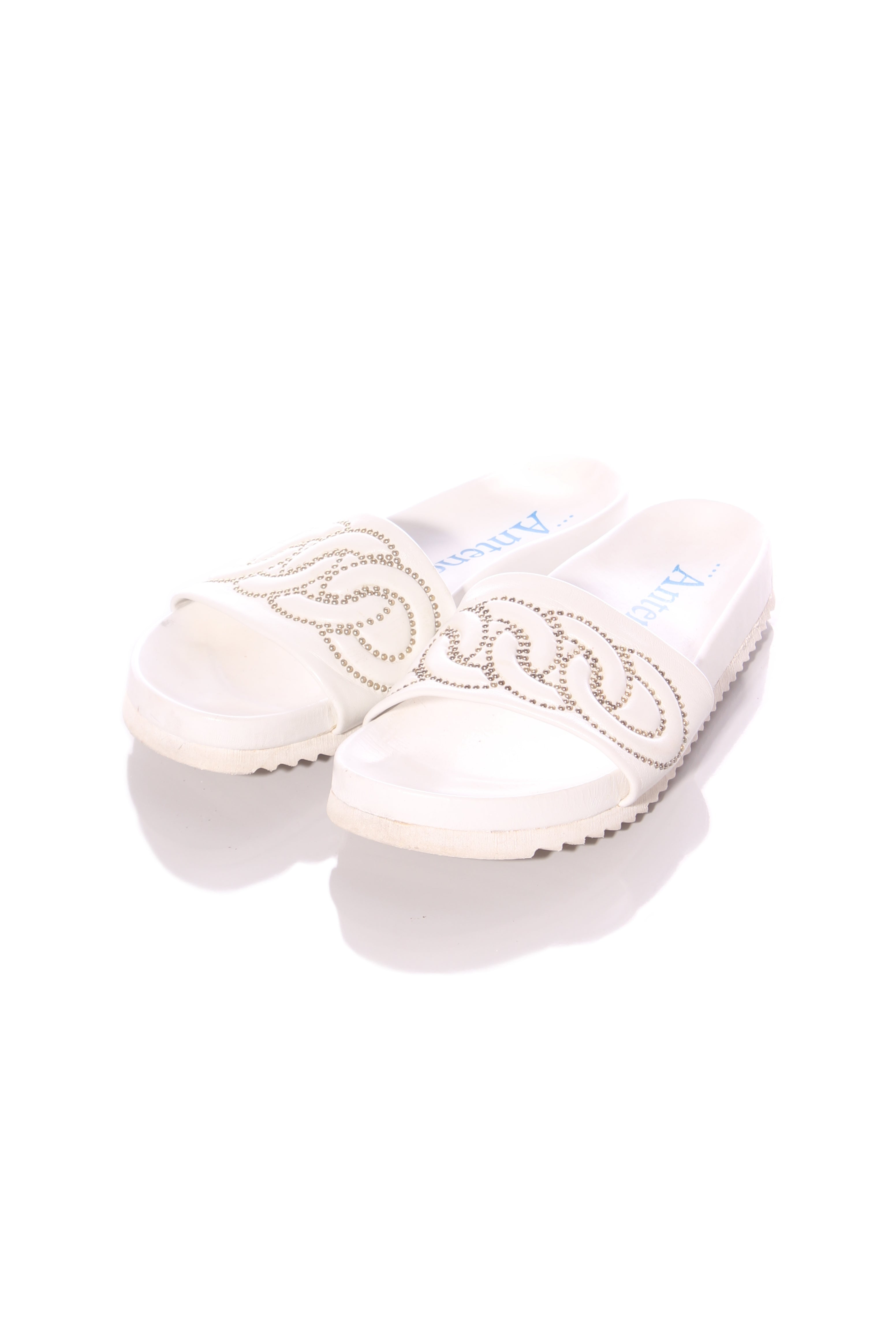SIZE ON SHOE: 38FITS LIKE: 7COLOUR: White, pewterFABRIC: Leather upper, leather lining, rubber soleCONDITION: Very good prelovedMEASUREMENTS:INNER SOLE: cms WIDTH: cms HEEL: cms NOTES: Stocked at...