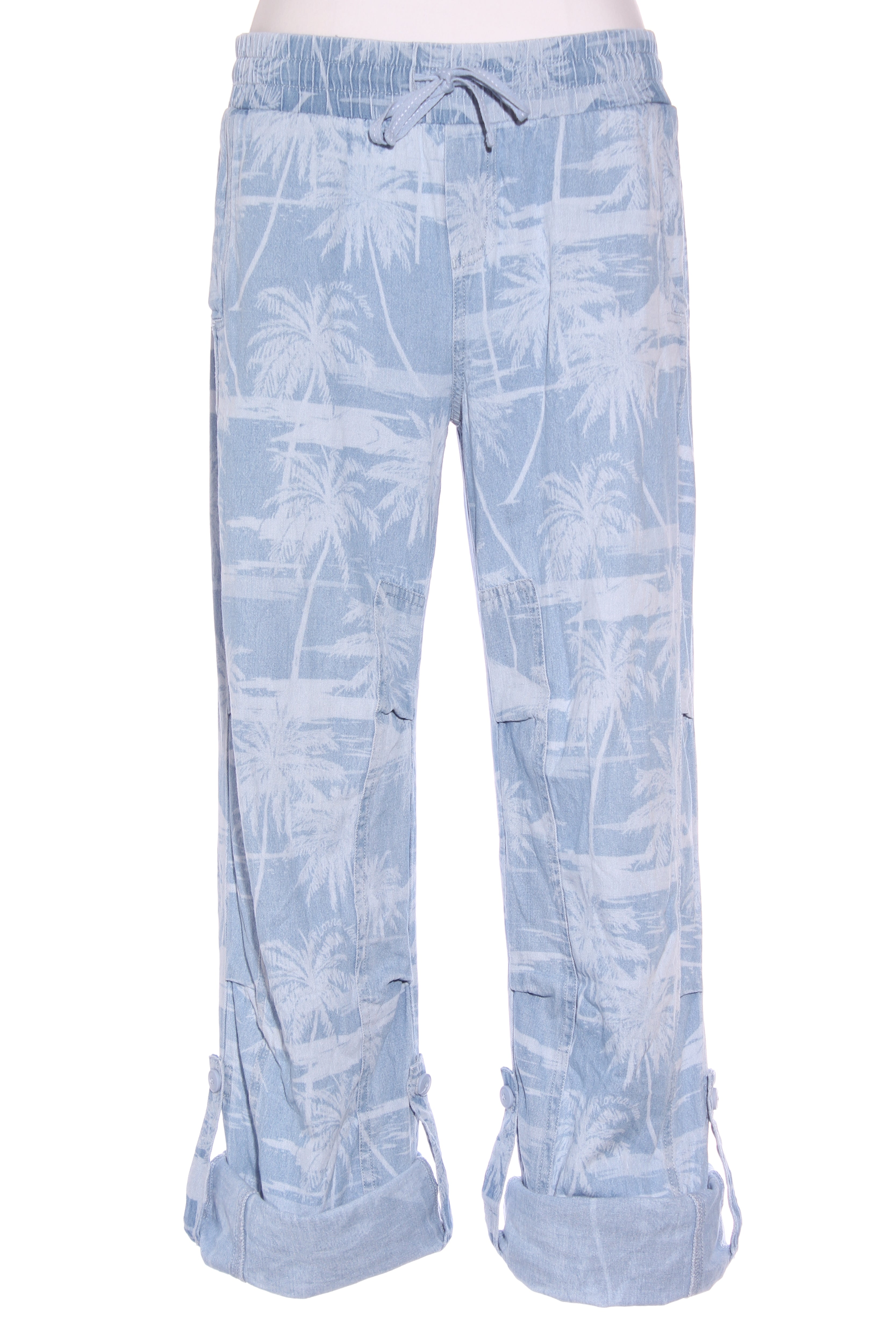 SIZE ON TAG: MFITS LIKE: 12COLOUR: BlueFABRIC: CottonCONDITION: Excellent prelovedMEASUREMENTS:WAIST: 42cms HIPS: 55cms RISE: 27cms LENGTH: 56-69-82cms (From crotch to end of pant)NOTES: Elasticated...