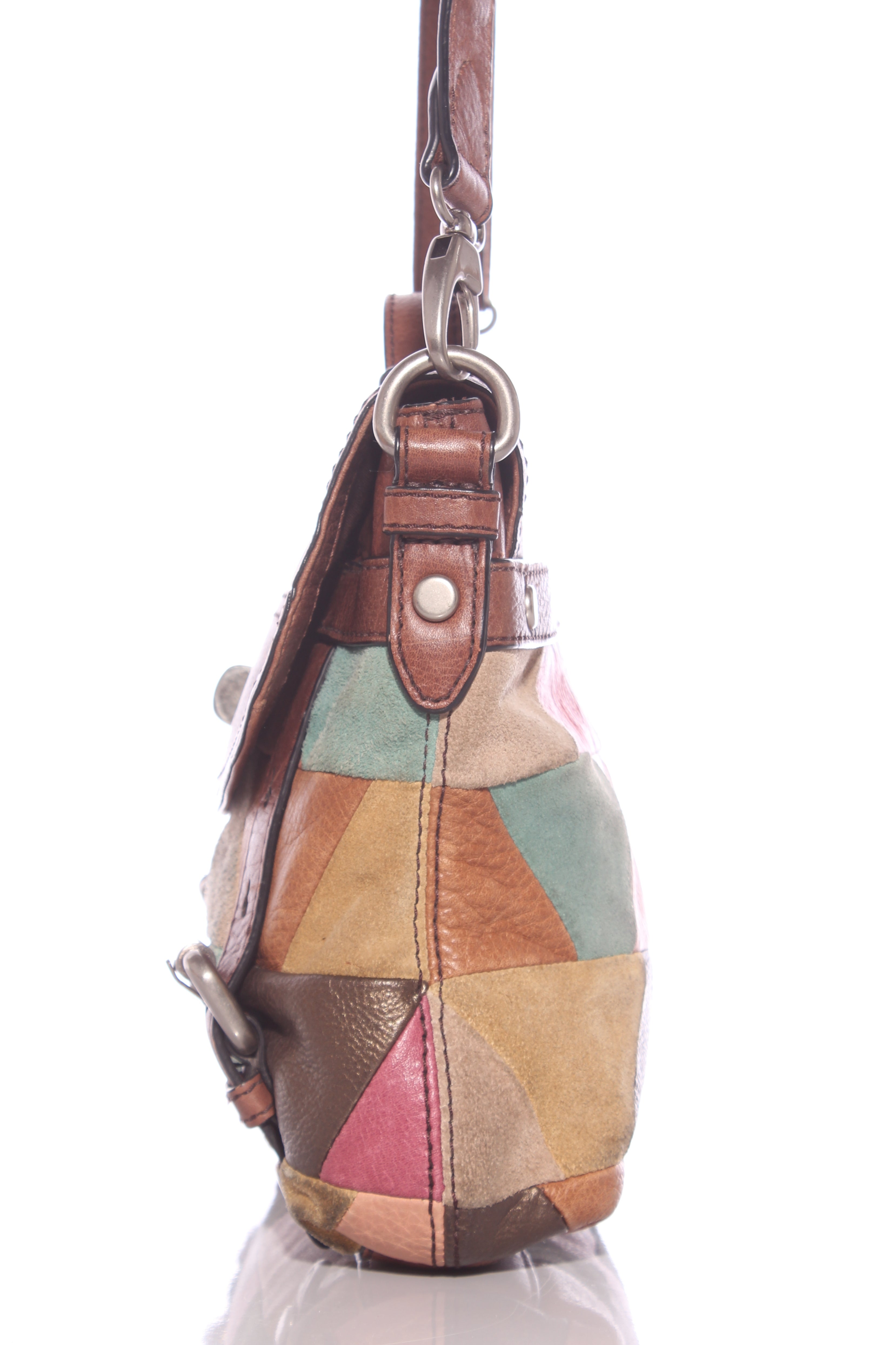 COLOUR: Tan, multiFABRIC: Leather, Lining - textileCONDITION: Good preloved - some marks to suede fabricMEASUREMENTS:HEIGHT: 24cms WIDTH: 27-33cms DEPTH: 5cms STRAP: 73-120cms NOTES: Turn...