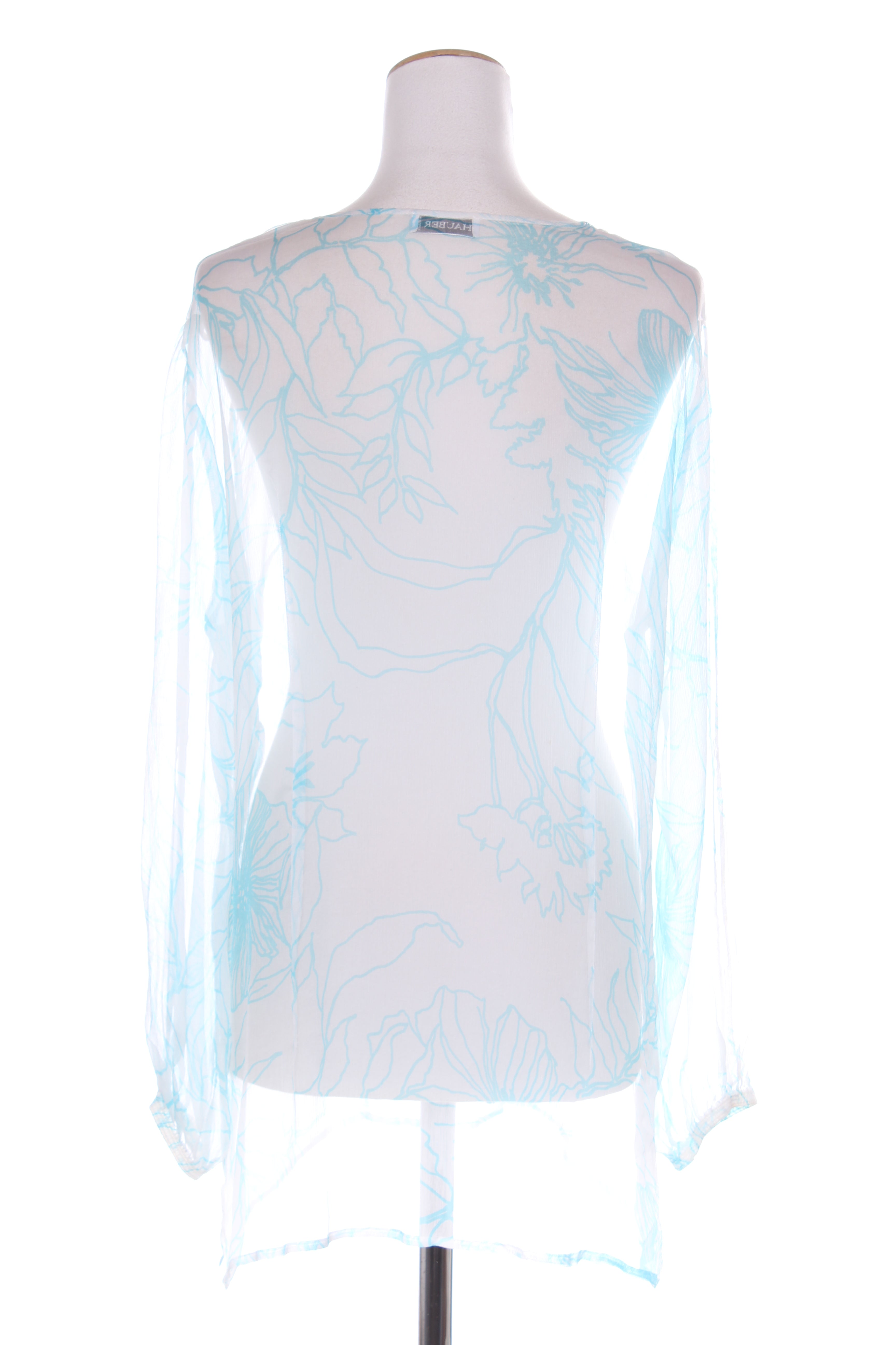 SIZE ON TAG: 18FITS LIKE: 14COLOUR: Blue, whiteFABRIC: SilkCONDITION: Very good preloved, Slight pull at the back neckline seam. Arm slits have been stitched closed but could easily be unpickedMEASUREMENTS:BUST:...